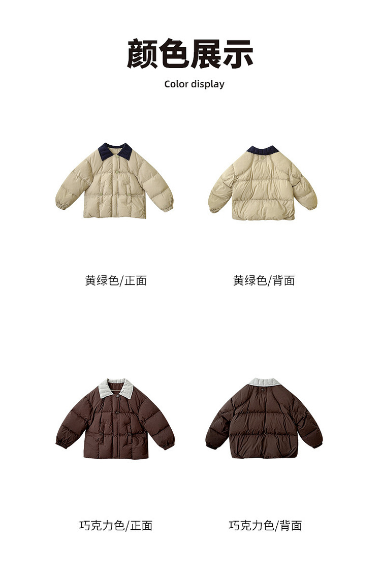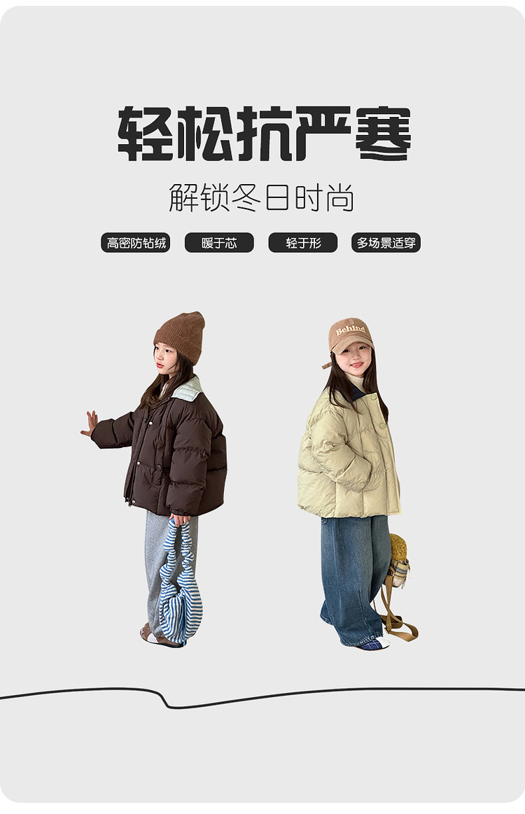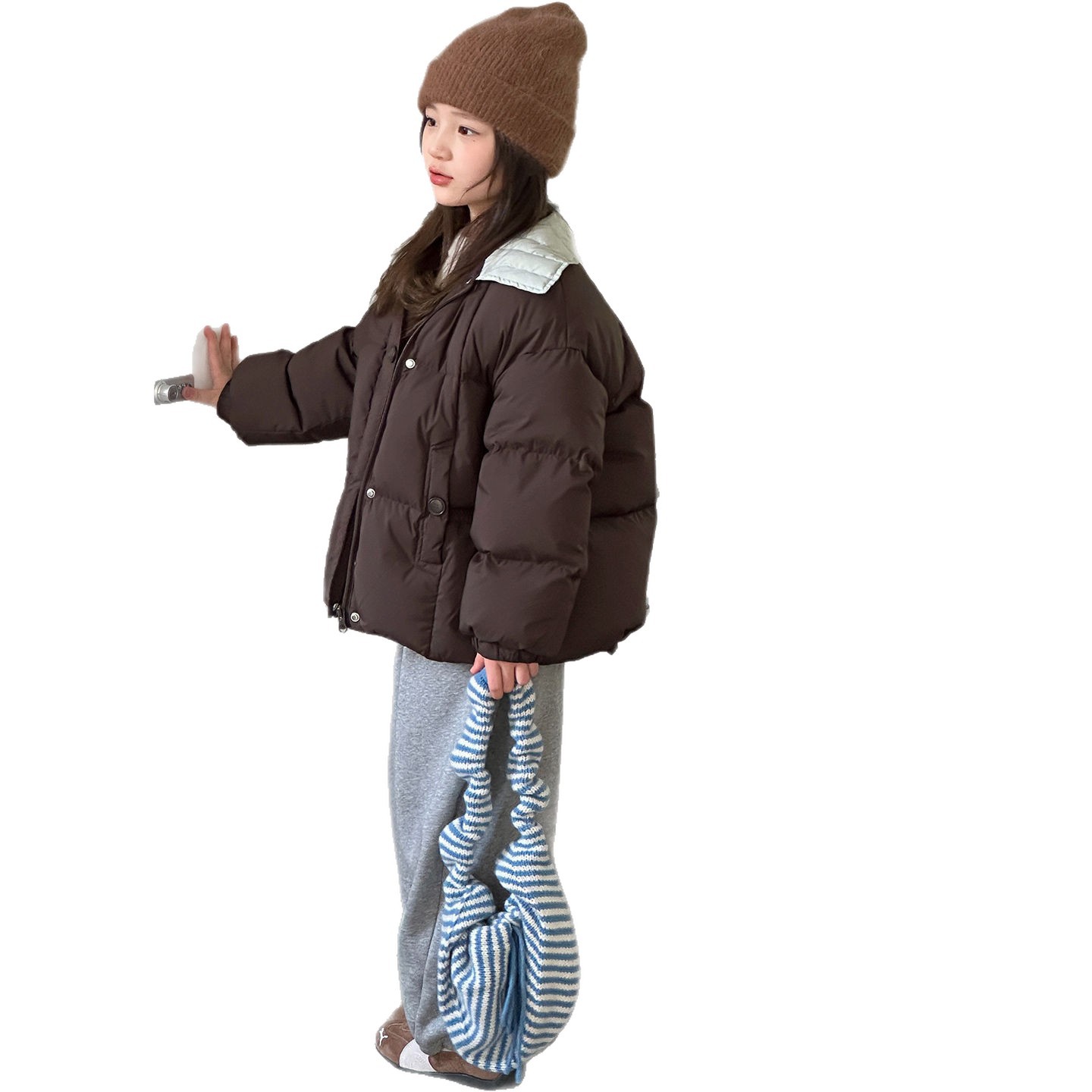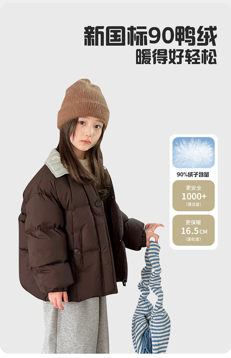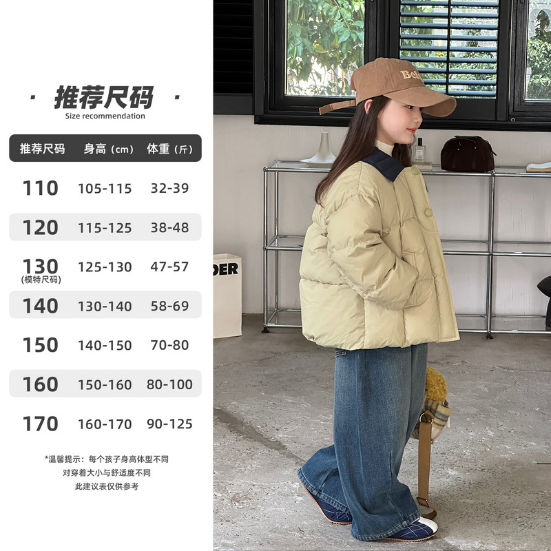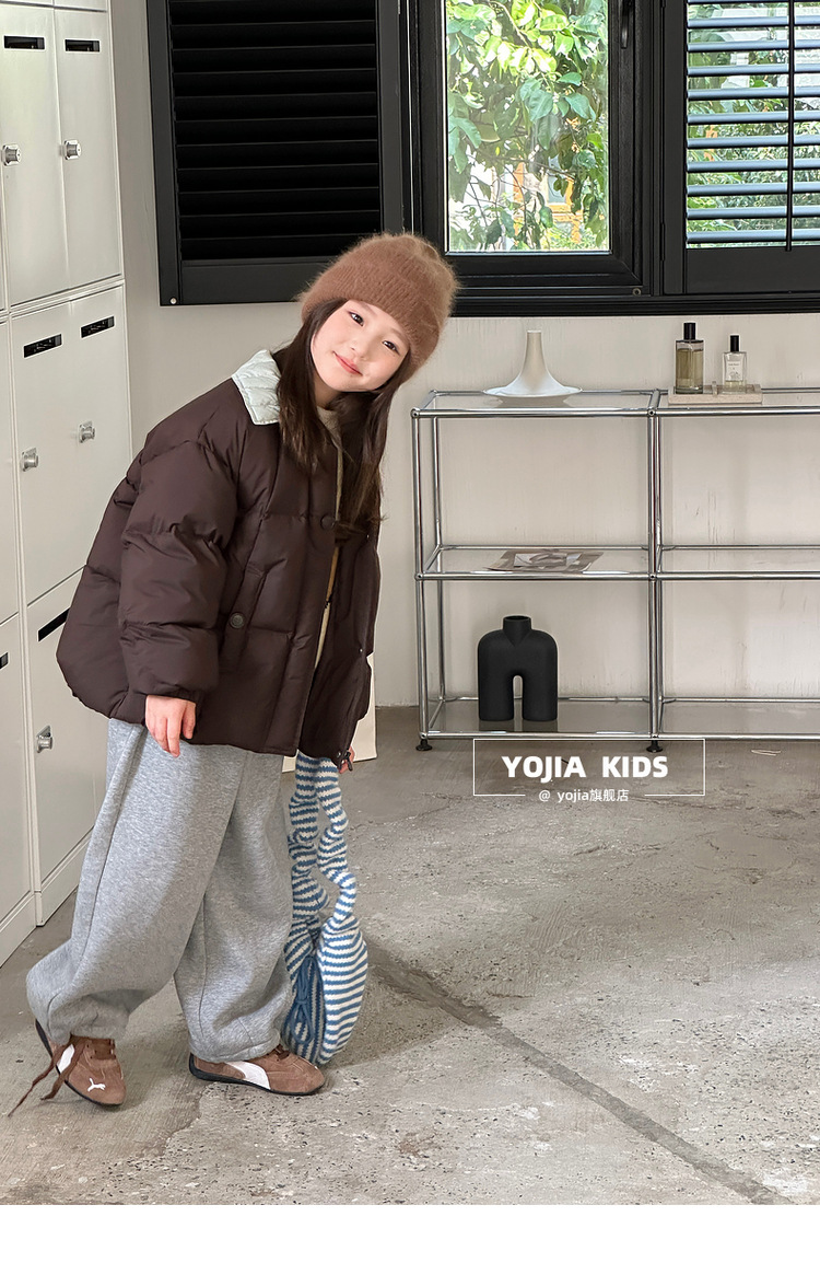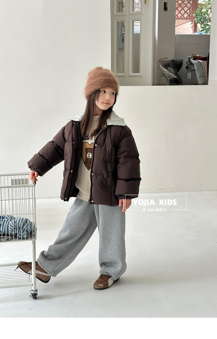 YOJIA女童羽绒服冬款2025新款洋气短款面包服外套白鸭绒儿童冬装