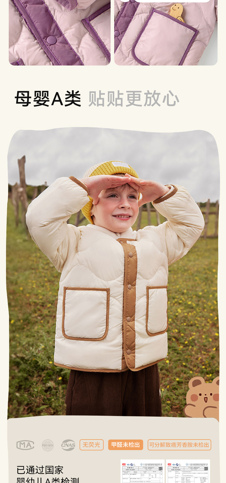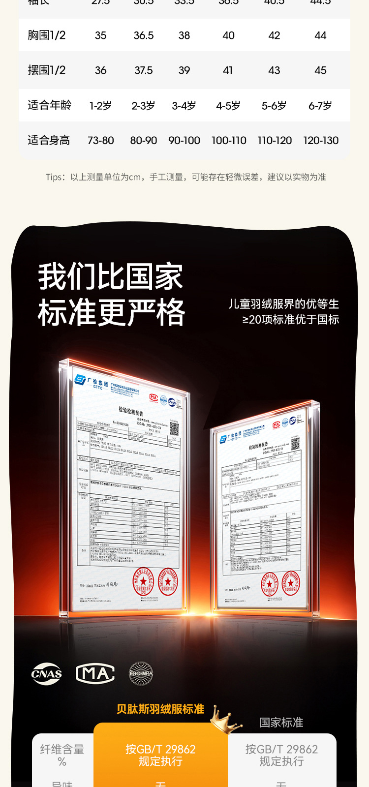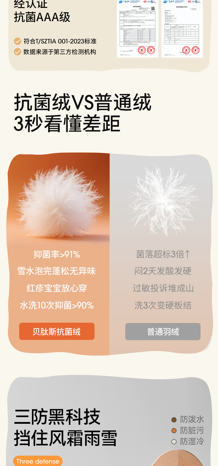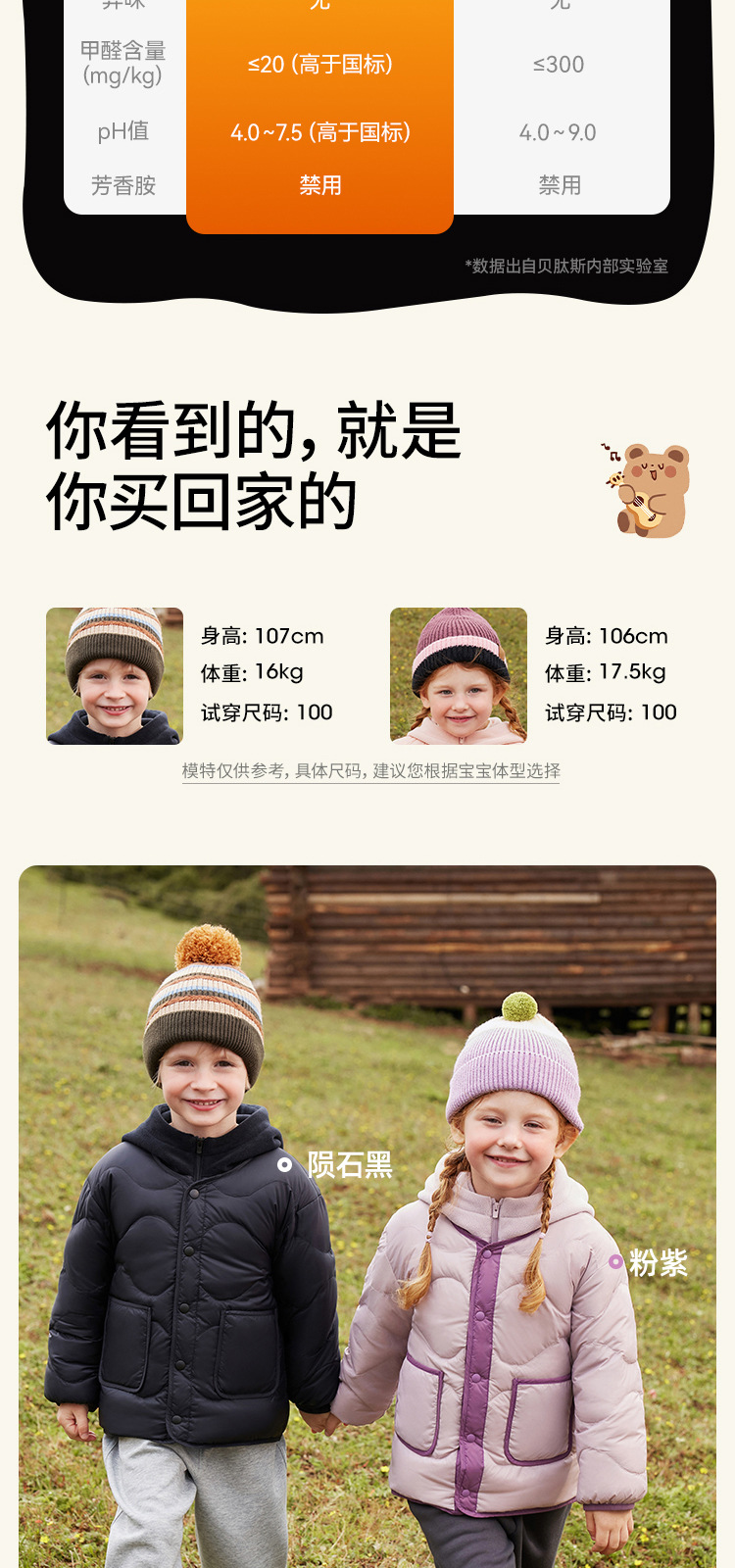 贝肽斯儿童羽绒服冬季新款男宝女宝三防羽绒内胆外套90白鸭绒防寒