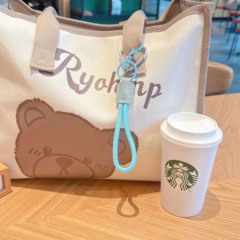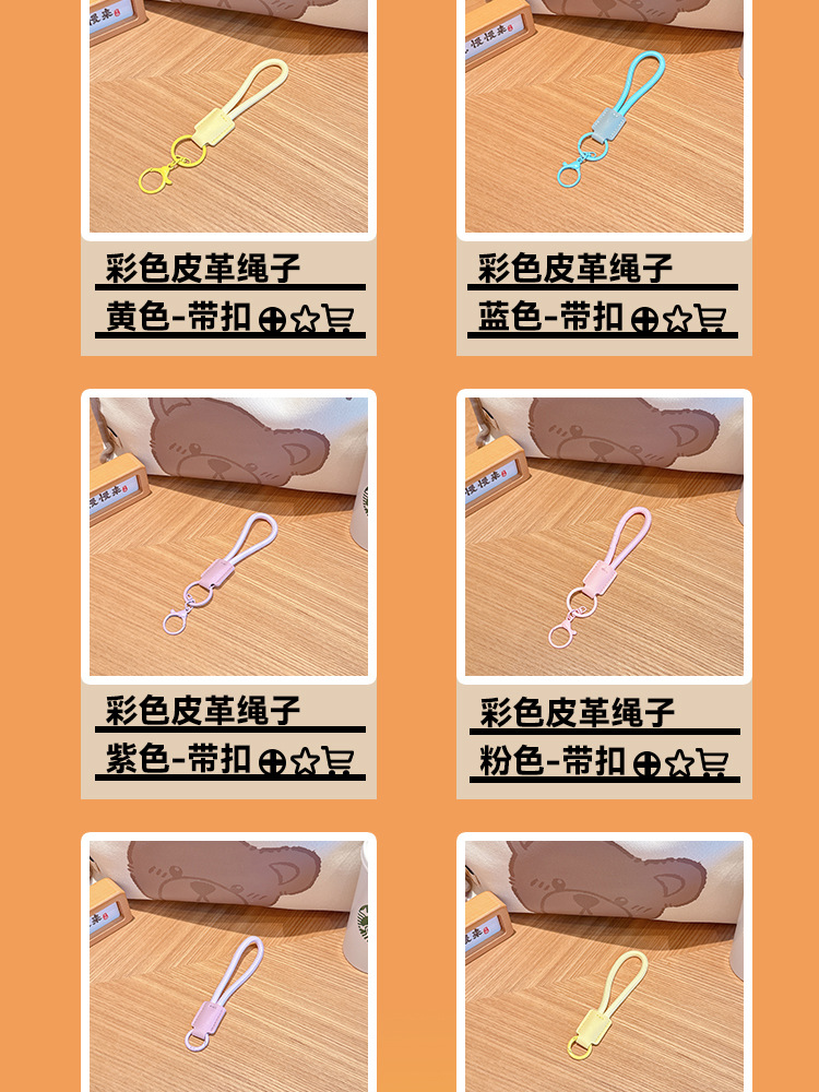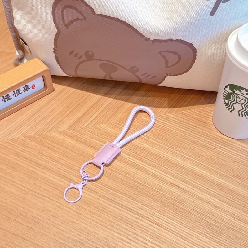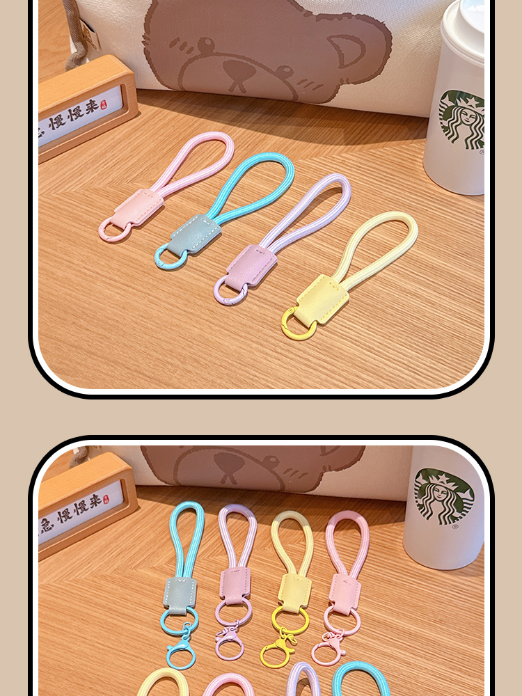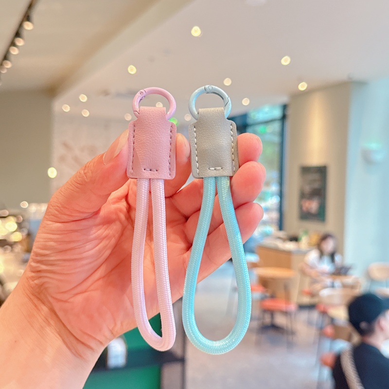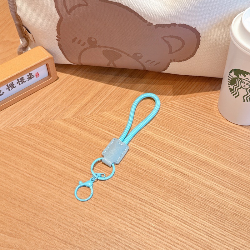 高档钥匙扣纯色耐用皮革尼龙绳圆环挂件手机编织挂饰防丢牢固耐磨