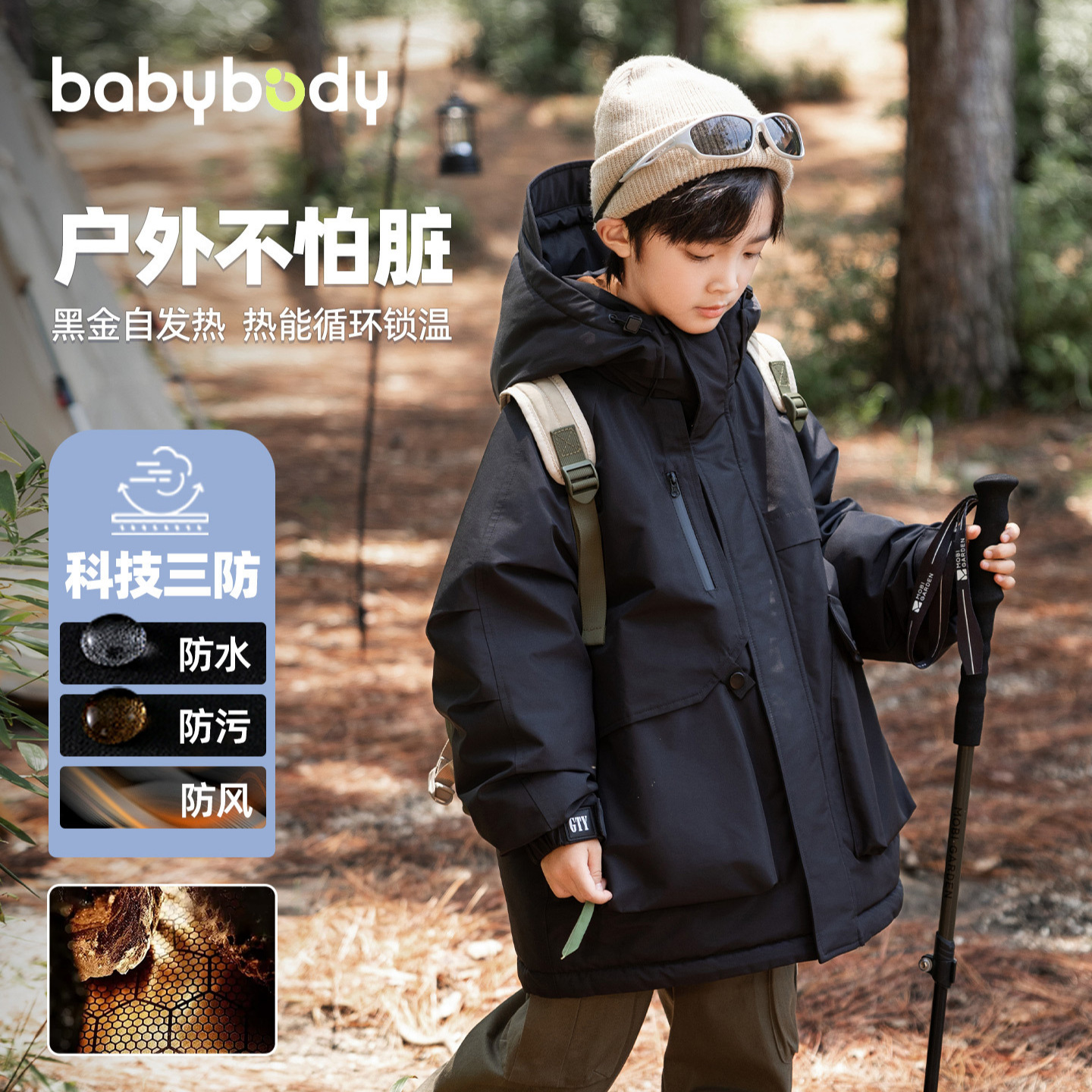 童装儿童羽绒服加厚冲锋衣2025冬季连帽男童外套白鸭绒男大童冬装