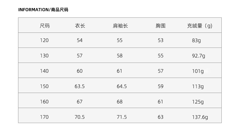 | 170cm(充绒量137.6g) | USD $43.79 | 96 piece available |