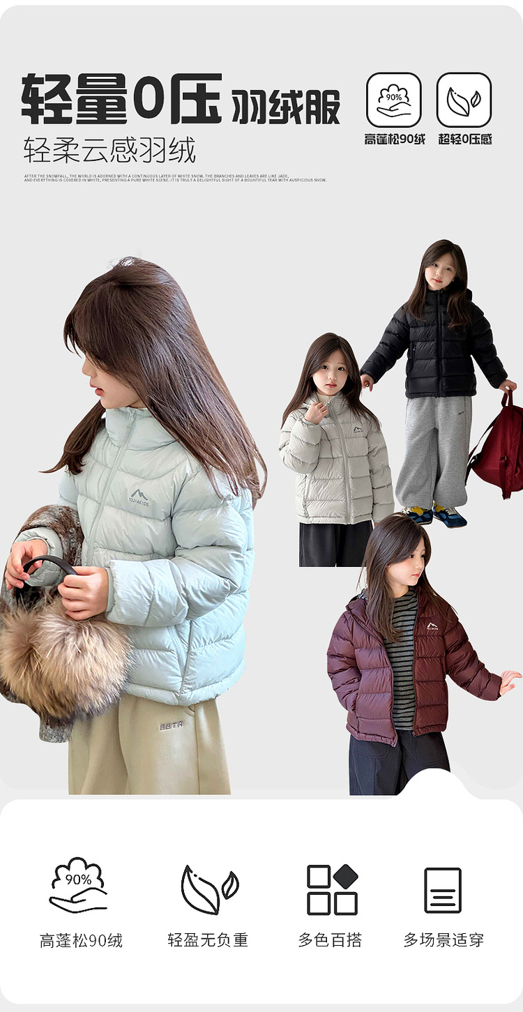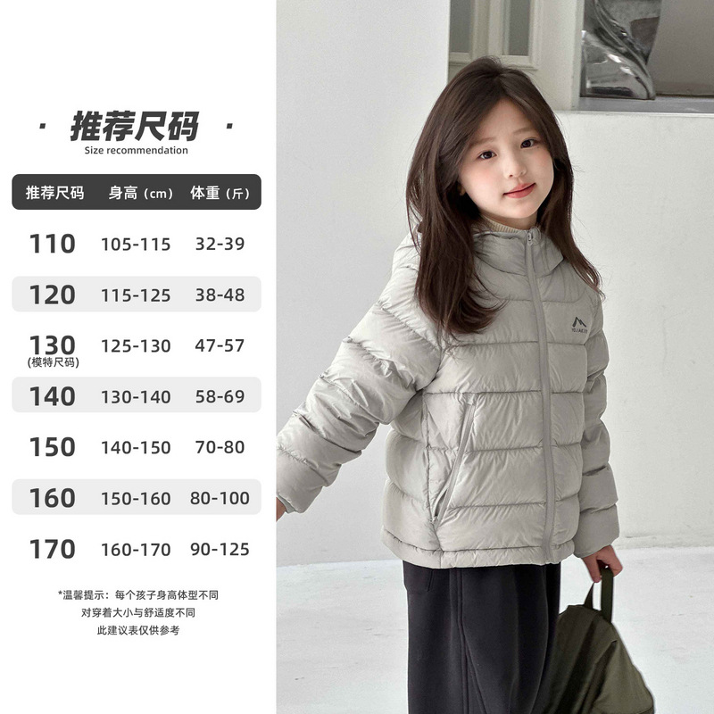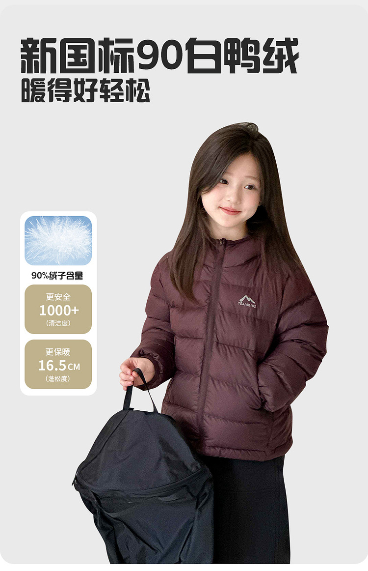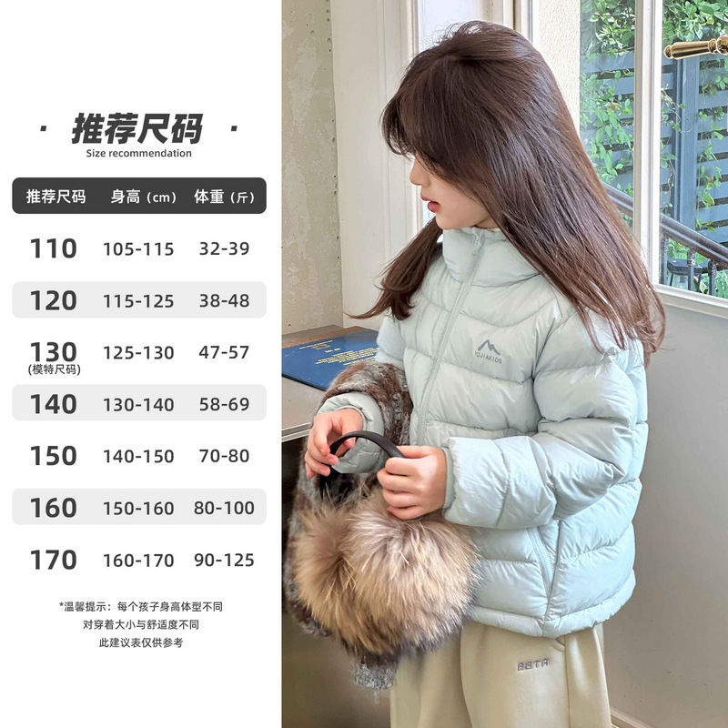 YOJIA女童轻薄羽绒服冬季2025新款洋气90绒女孩冬装保暖儿童外套