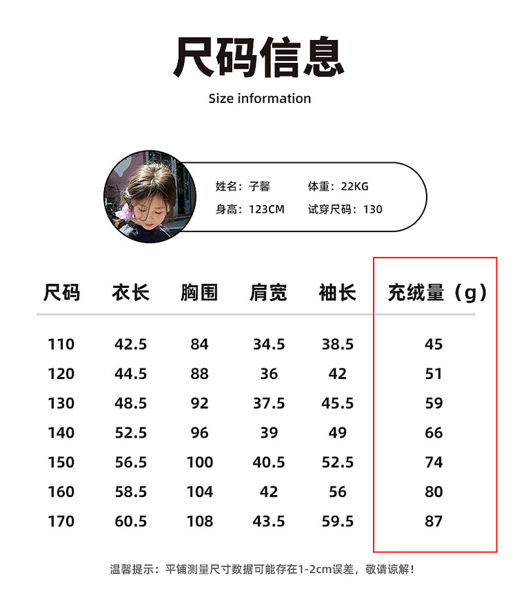 | 130cm(充绒59g) | USD $40.69 | 133 piece available |