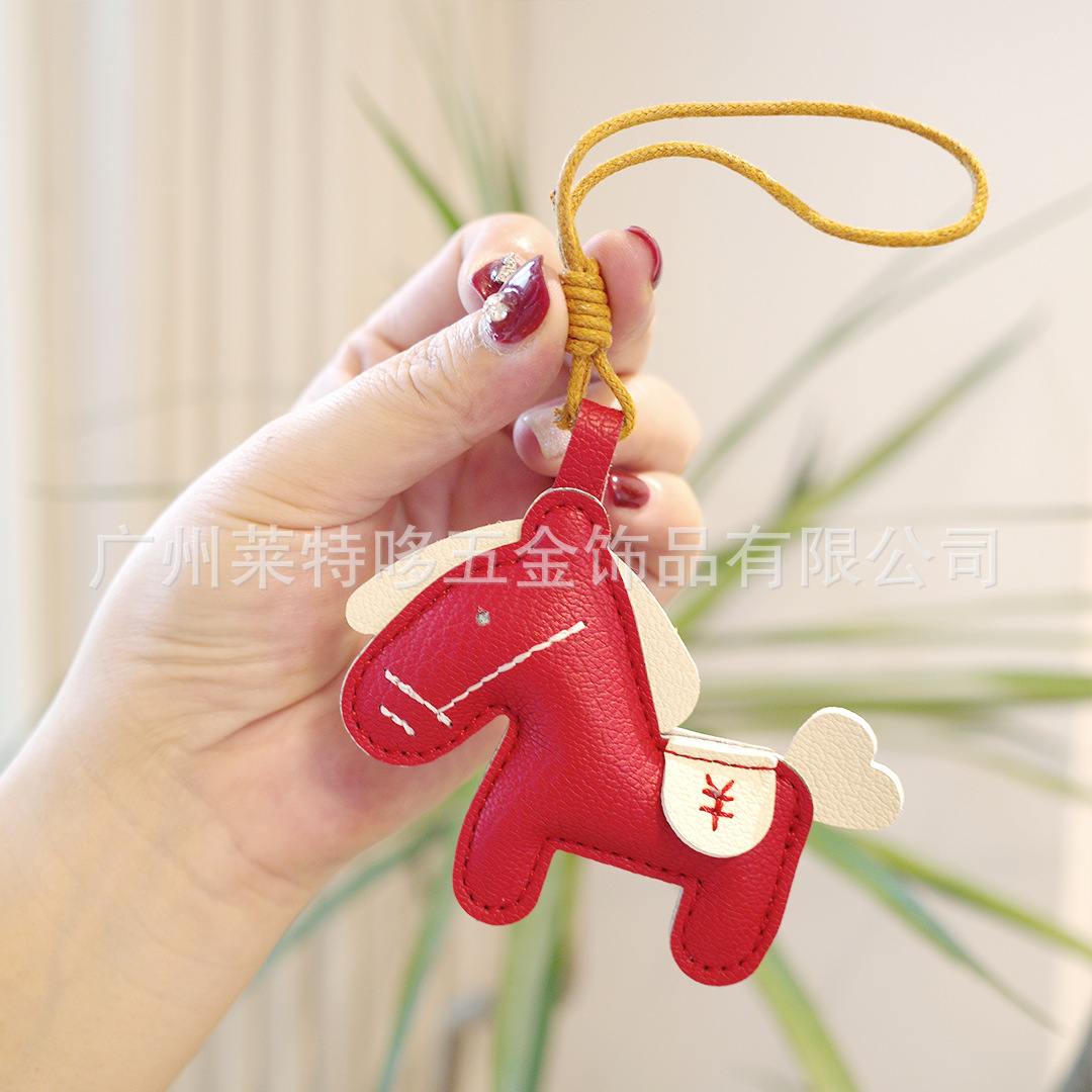 现货pu手工皮革小马马年包包挂件汽车钥匙扣挂饰卡通钥匙链配饰
