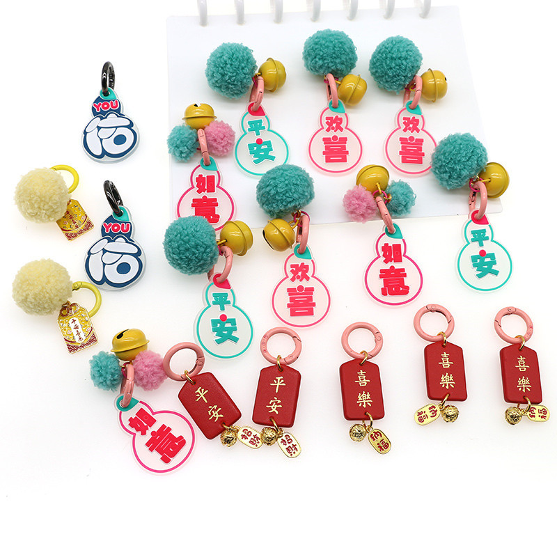 文创礼品烫印文字DIY钥匙扣平安喜乐佛小伴配件祈福平安福牌挂饰