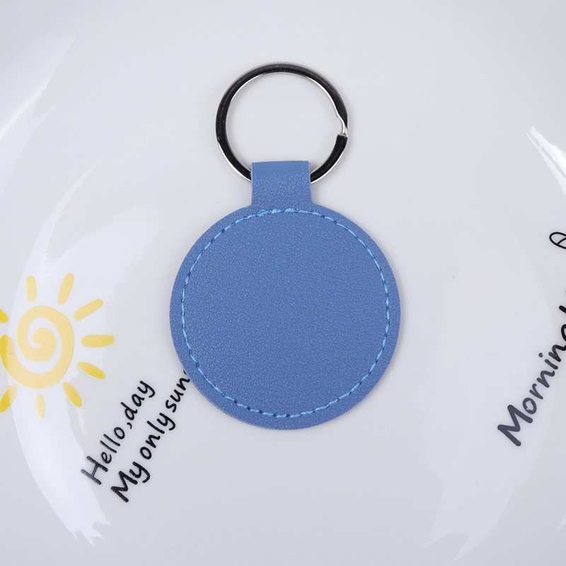 创意PU皮革钥匙扣皮质圆形钥匙挂件包包配饰吊牌汽车钥匙扣跨境