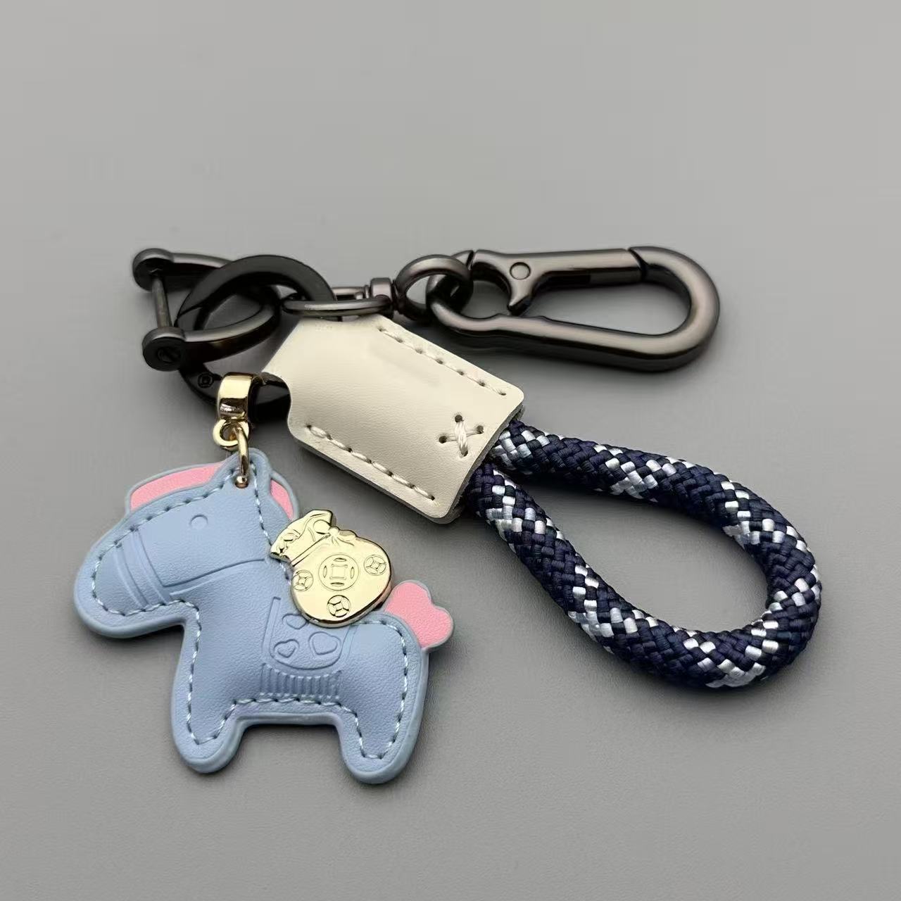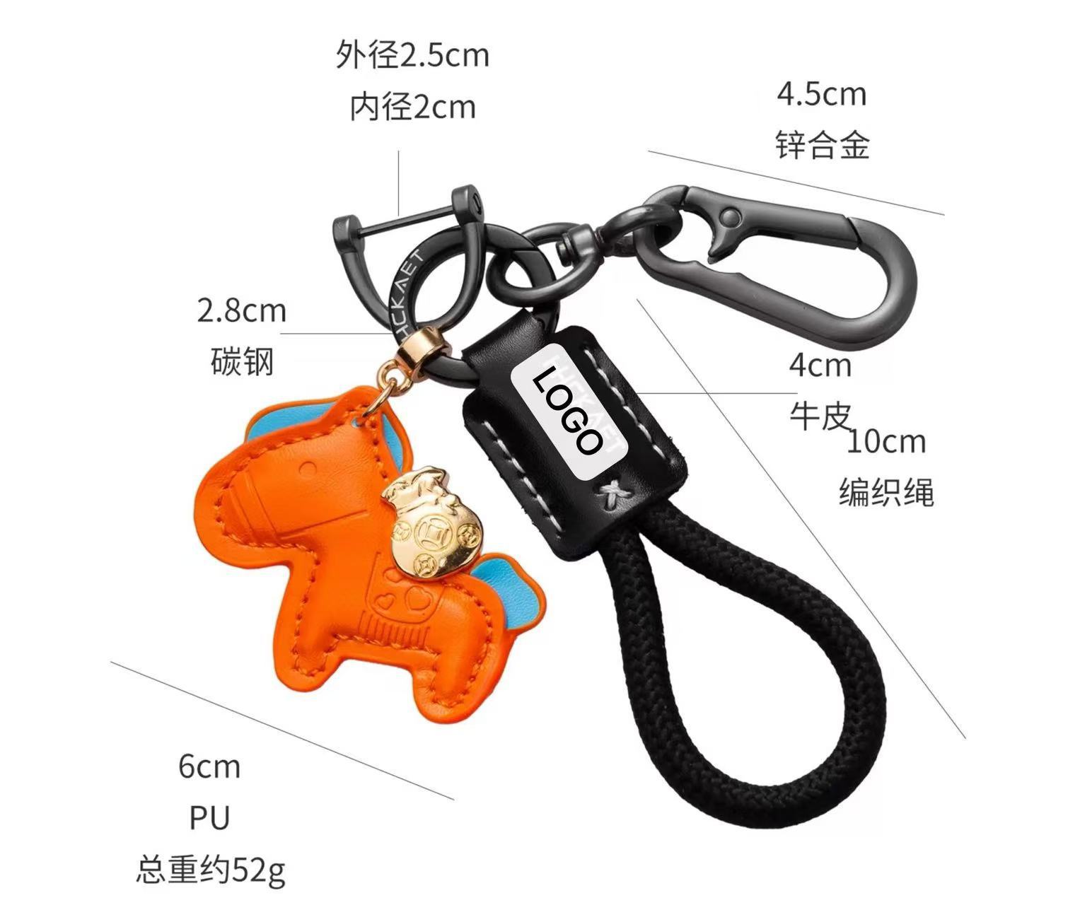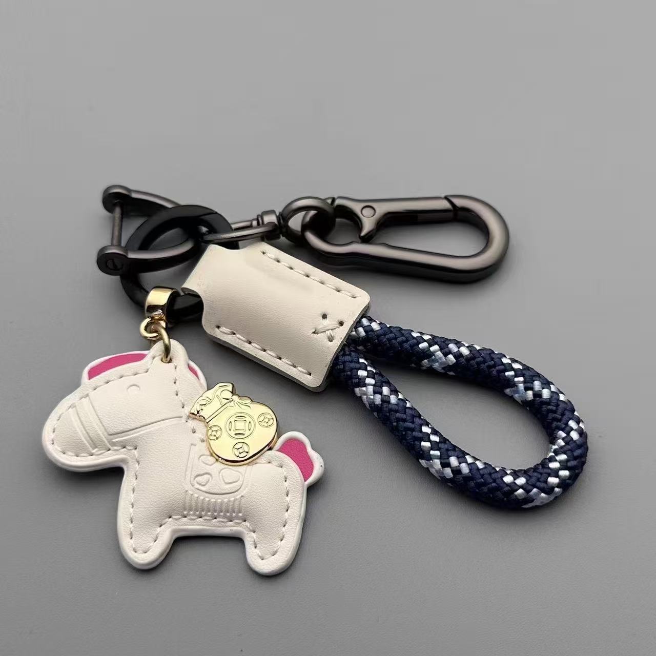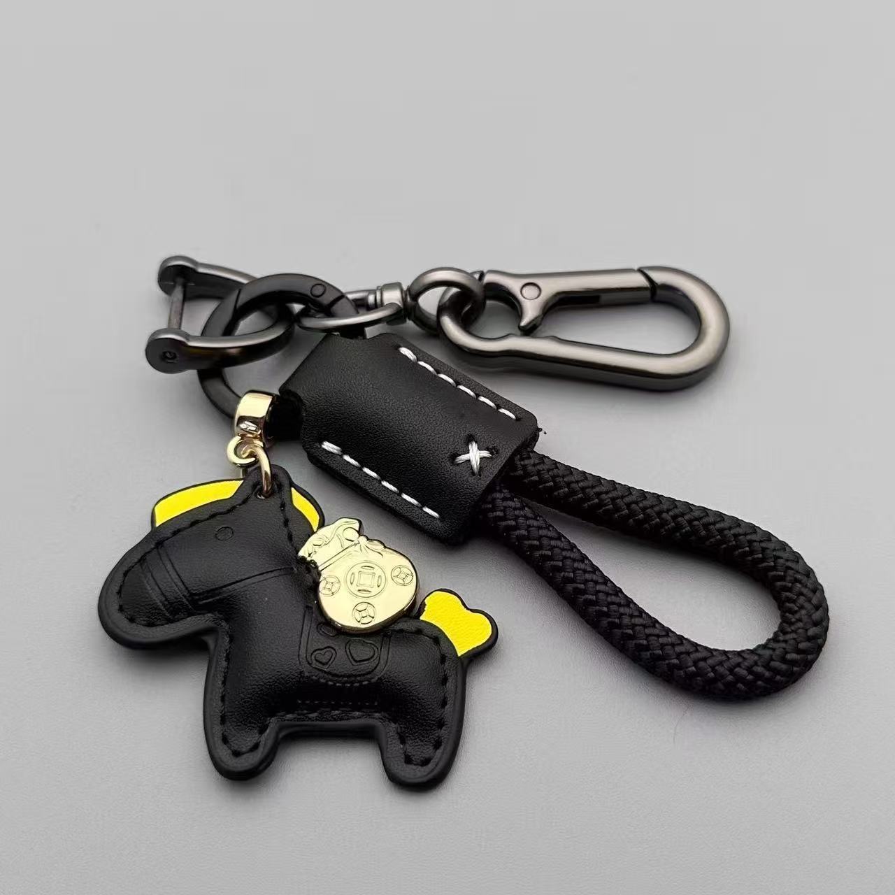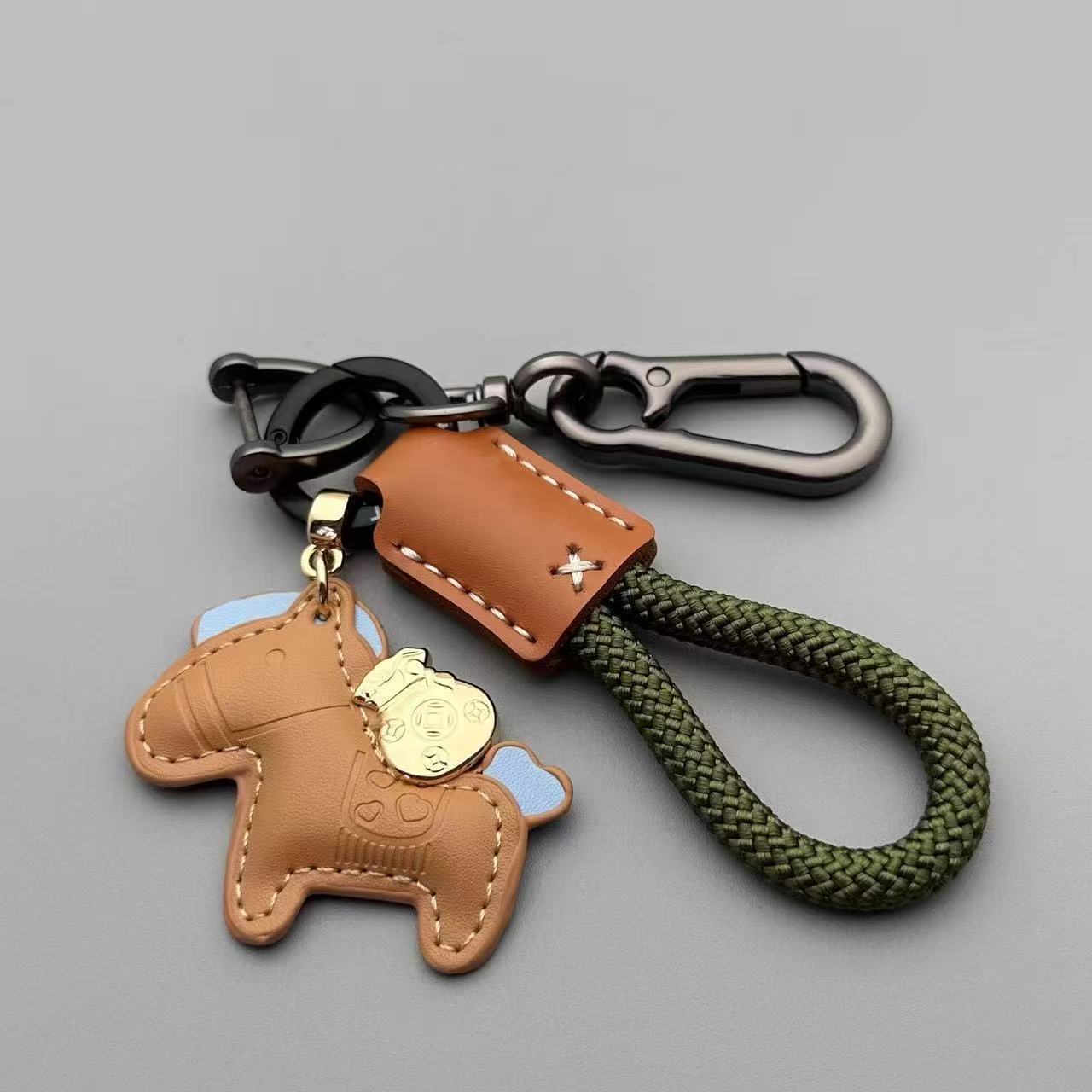 真皮手缝马上有钱可爱小马钥匙扣皮革编织绳卡通挂饰精致书包挂件