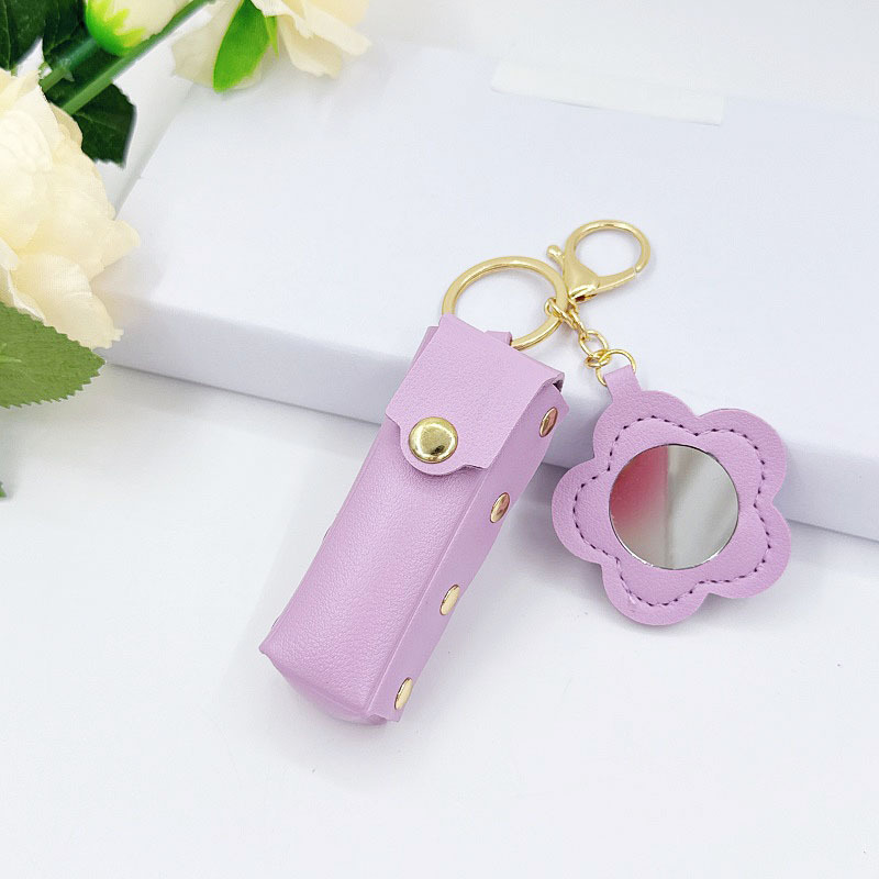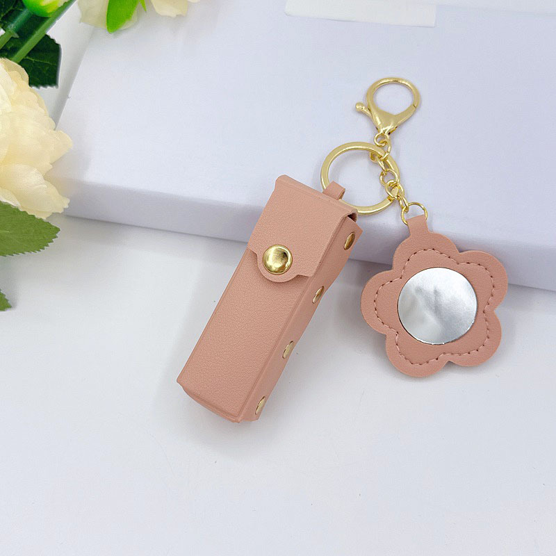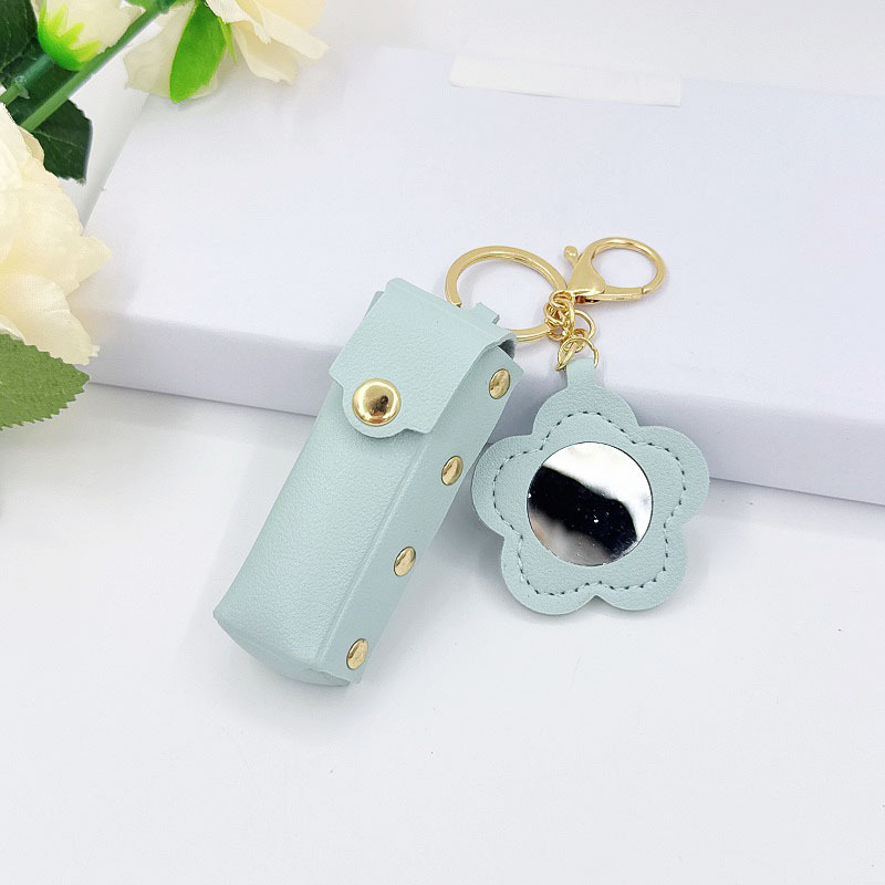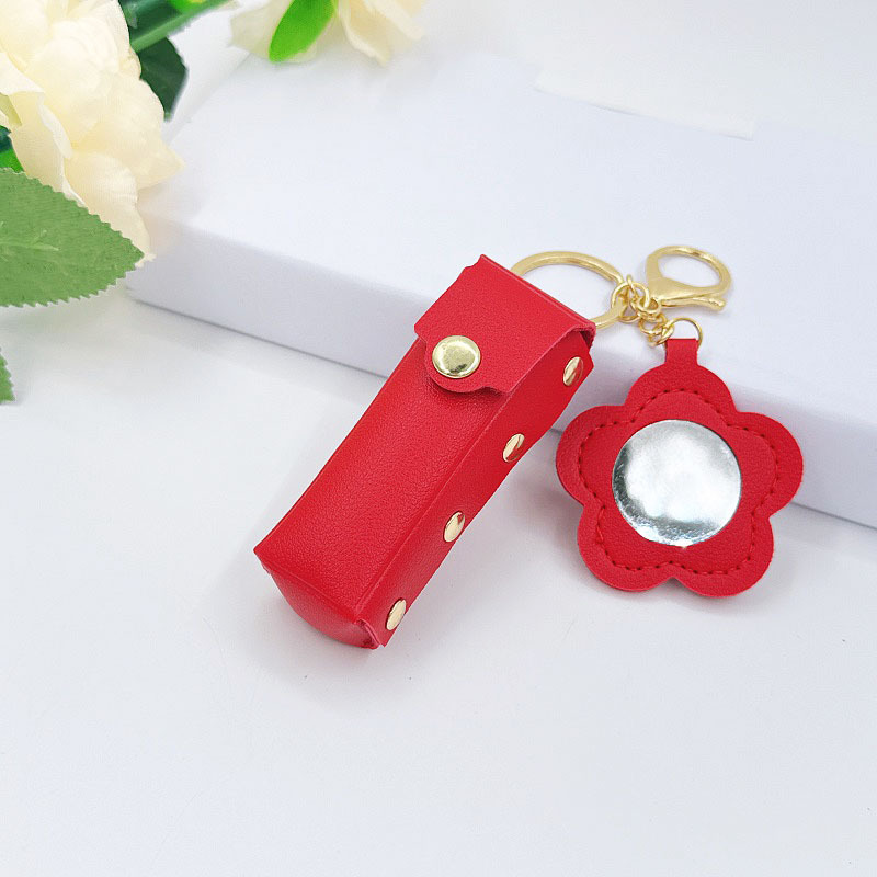 花朵镜子钥匙扣跨境皮革礼品挂件饰品创意迷你口红收纳钥匙链挂饰