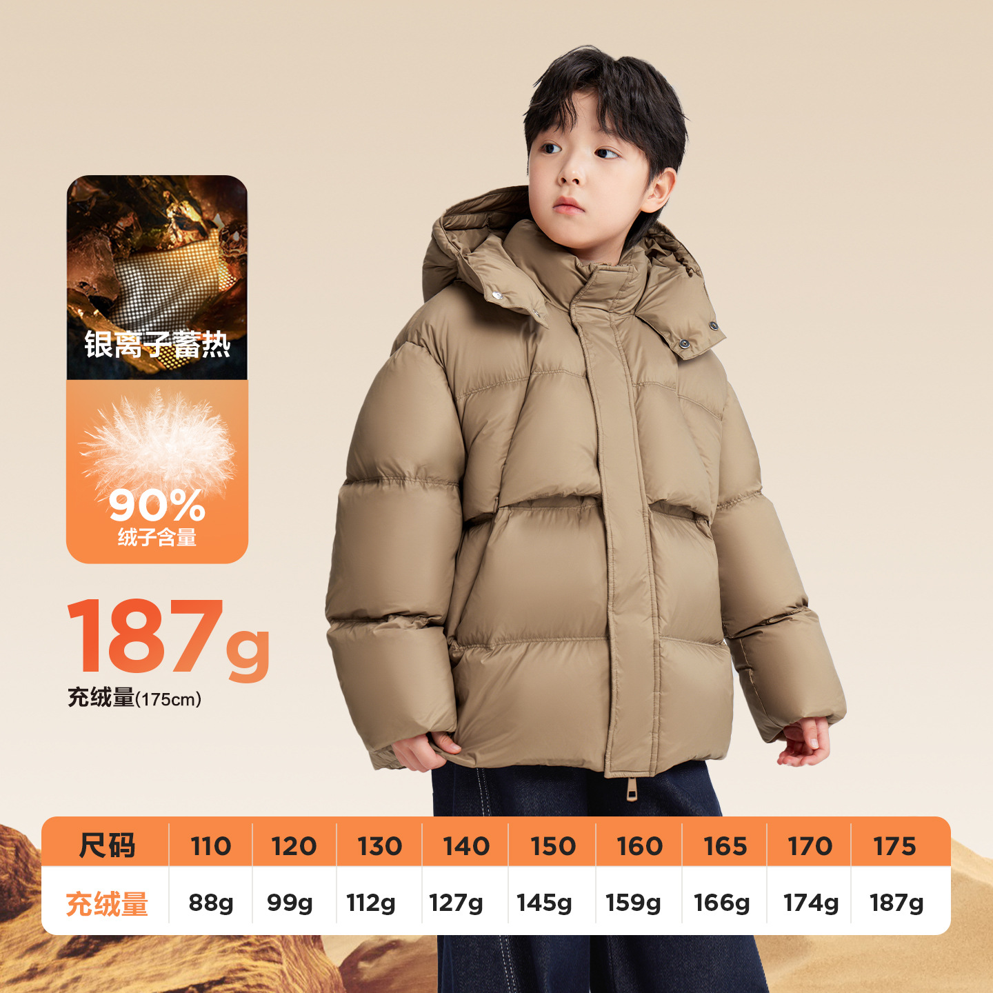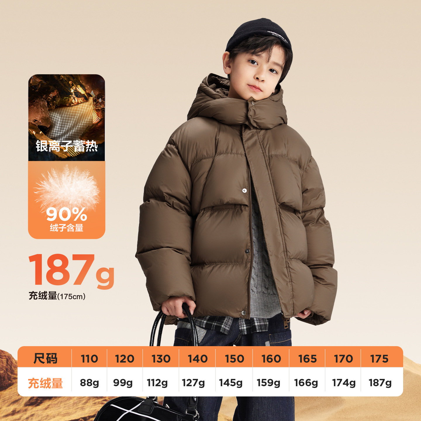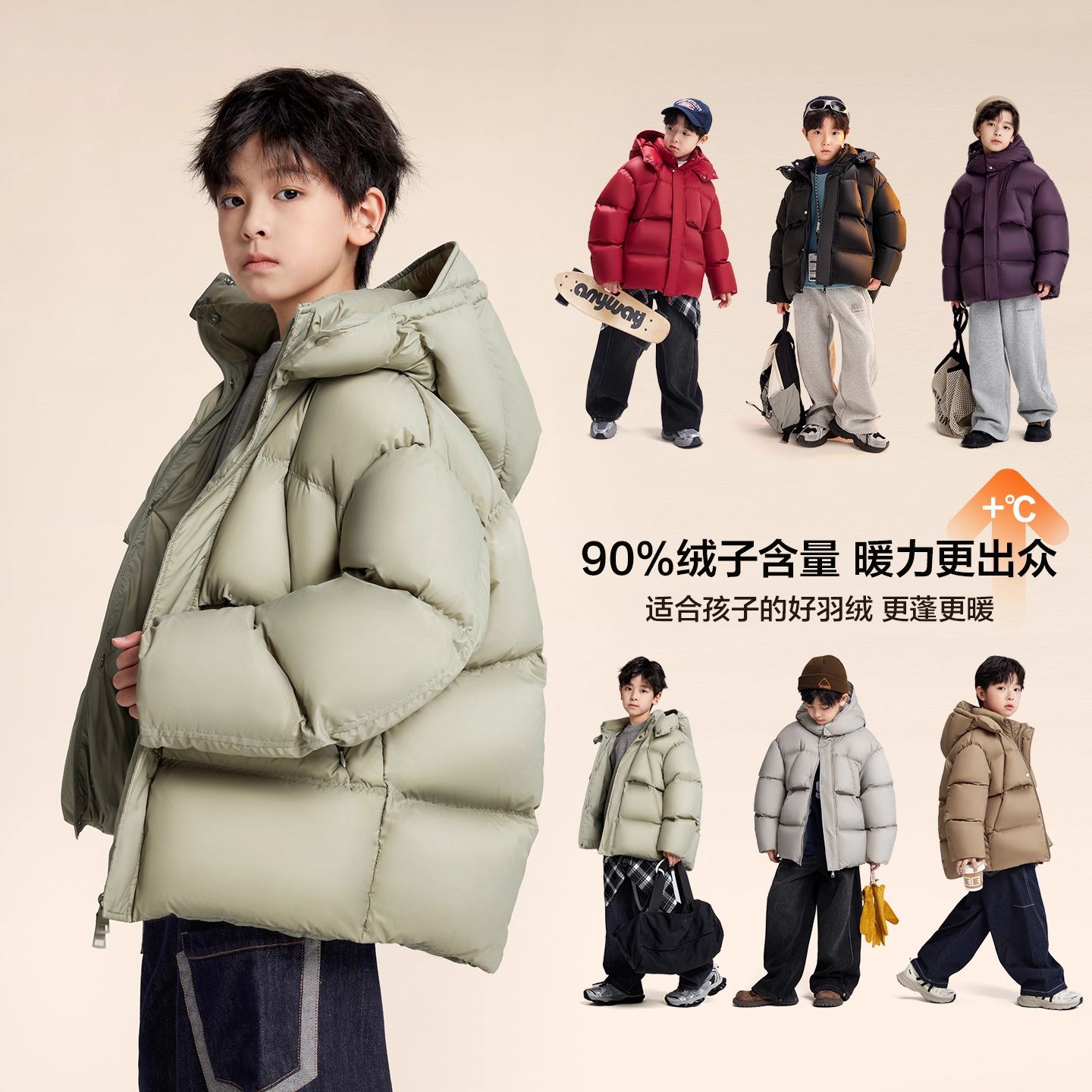 左西童装男童羽绒服冬季保暖儿童三防连帽面包服2025新款外套冬装