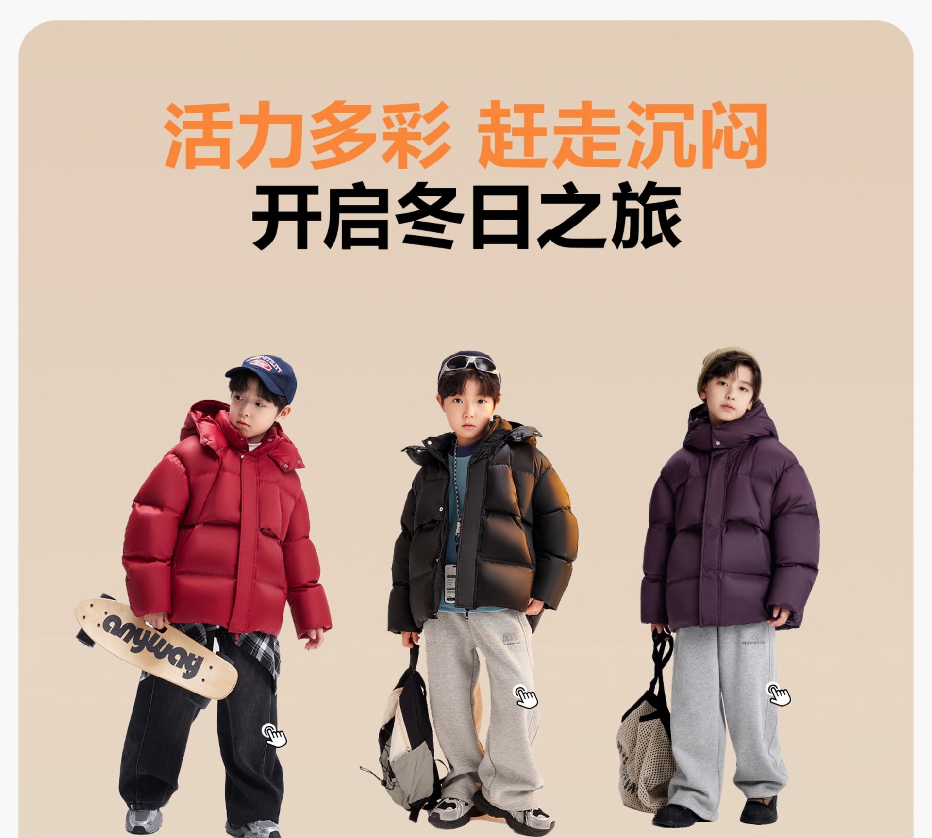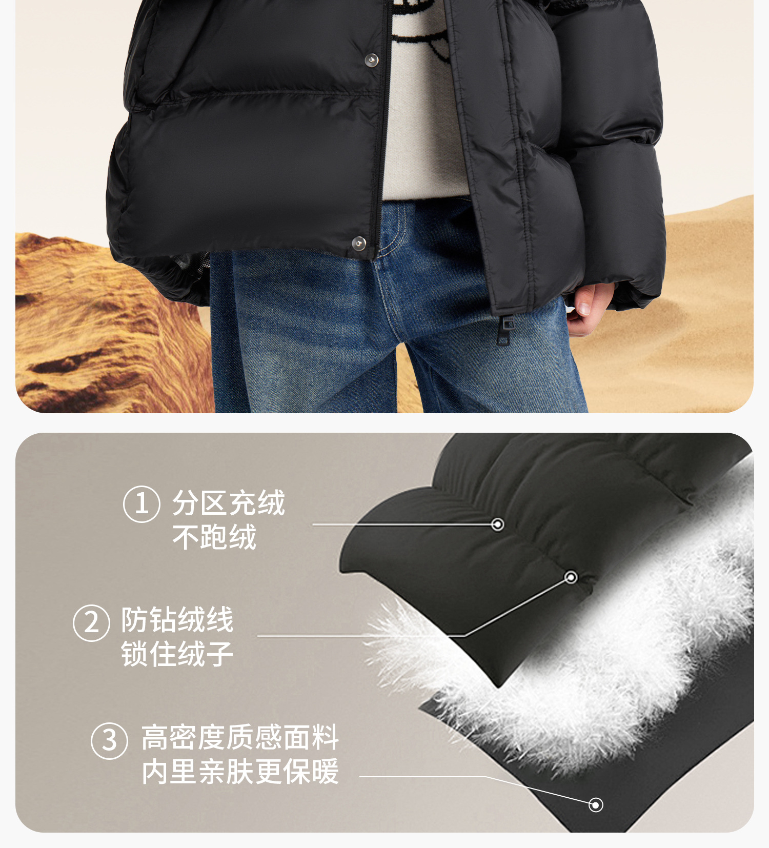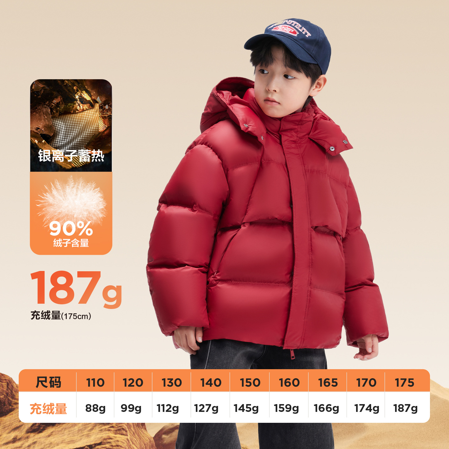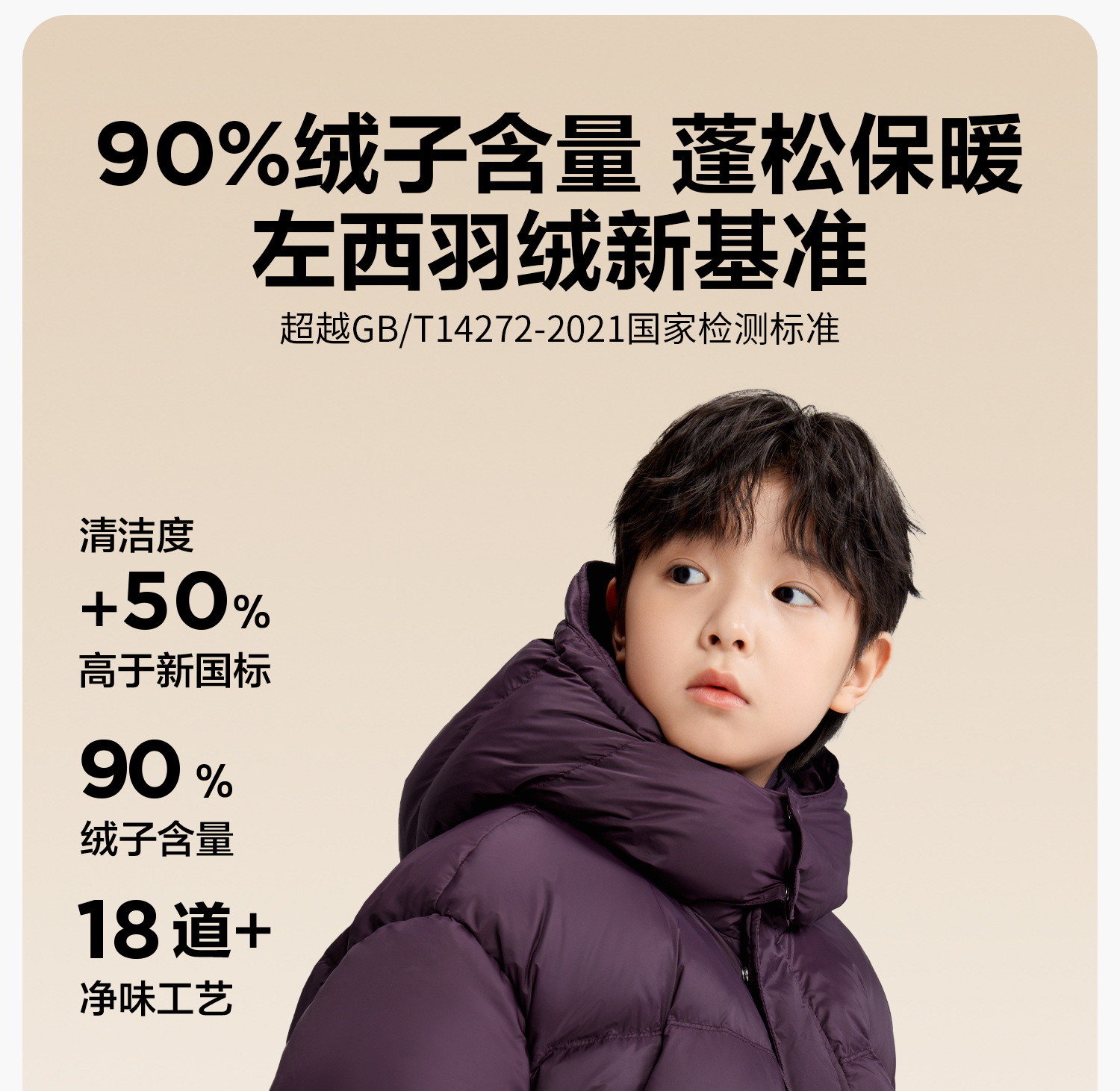 左西童装男童羽绒服冬季保暖儿童三防连帽面包服2025新款外套冬装