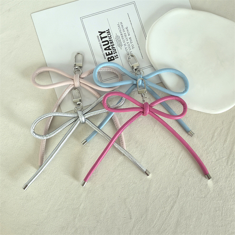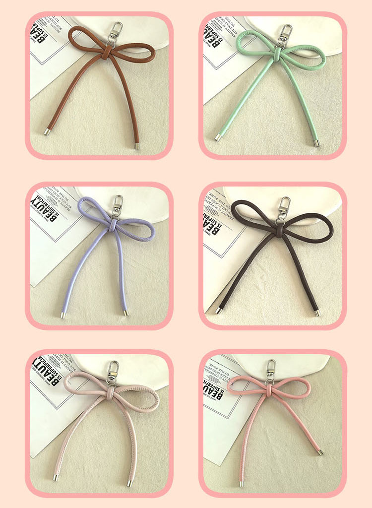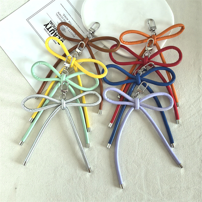 新款DIY皮质蝴蝶结挂绳钥匙扣挂件创意耳机包背包吊坠手工编织绳