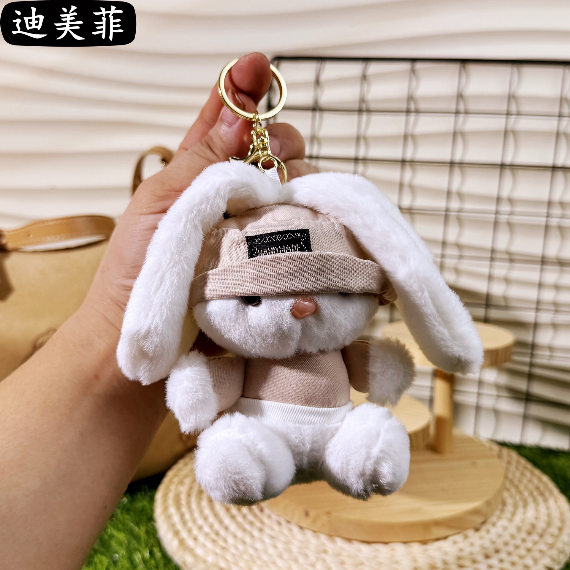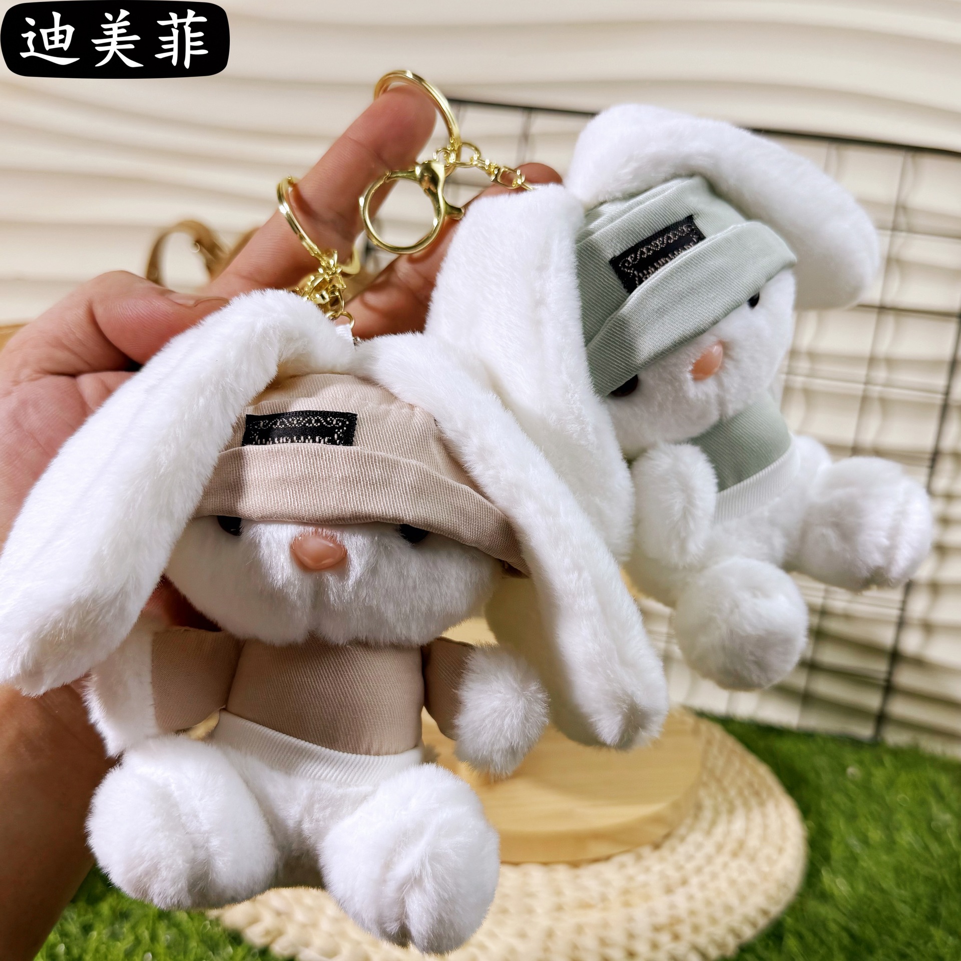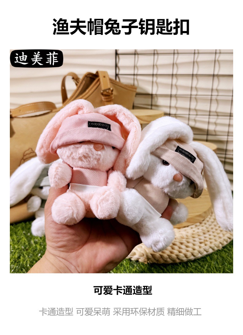 渔夫帽子兔长耳兔子毛绒公仔钥匙扣玩偶可爱书包挂件挂饰礼物情侣