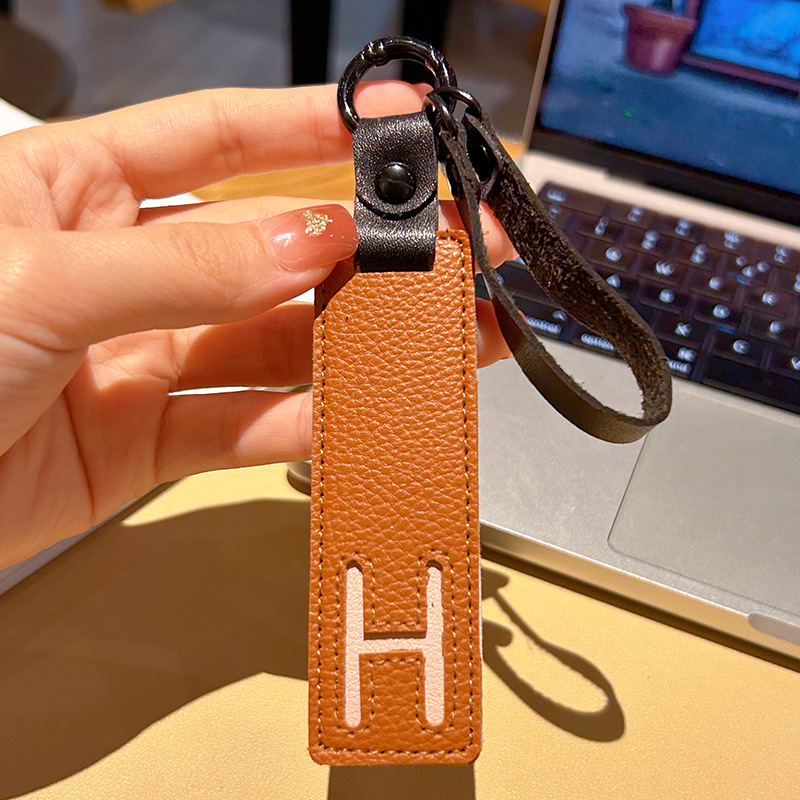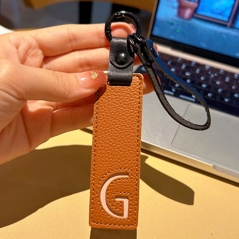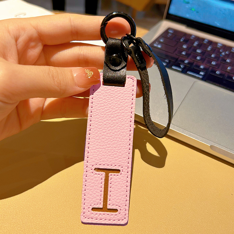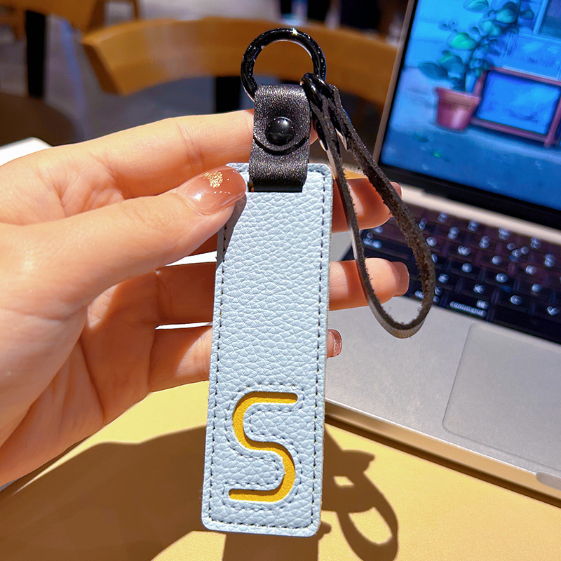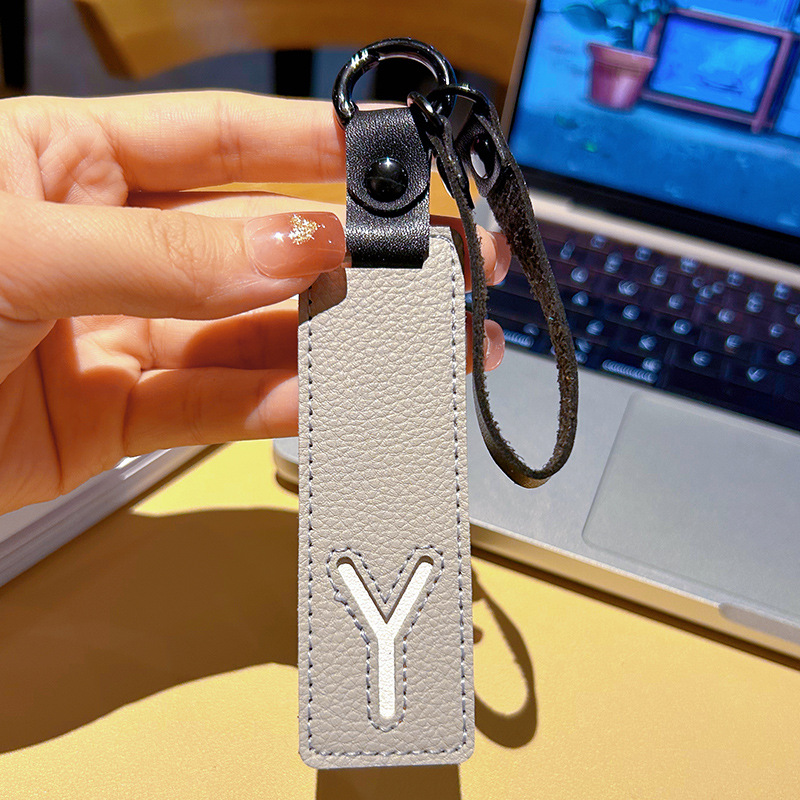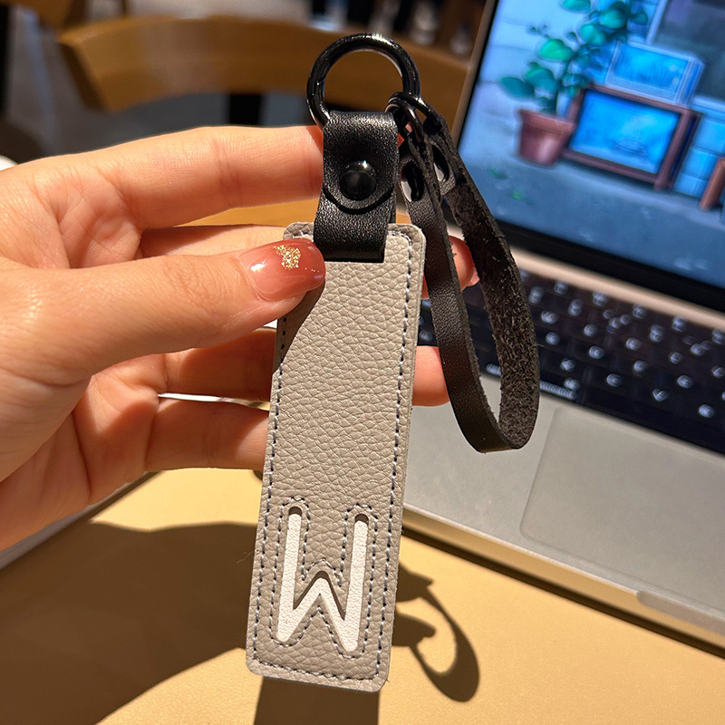 跨境爆款26英文字母文字牌钥匙扣皮质汽车饰品简约小挂件可定制