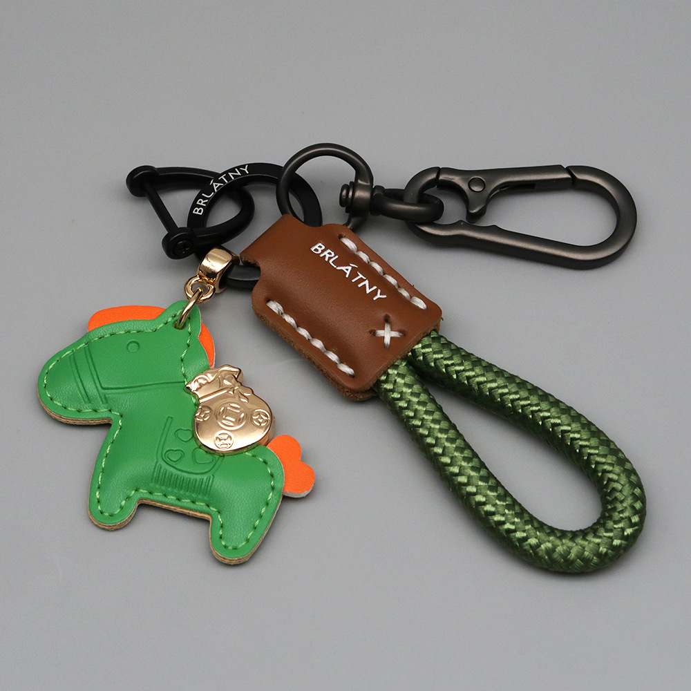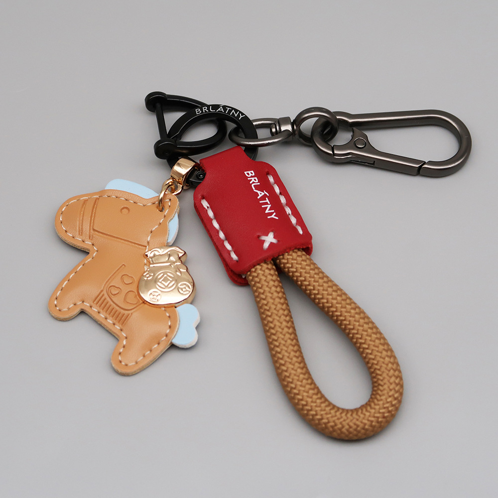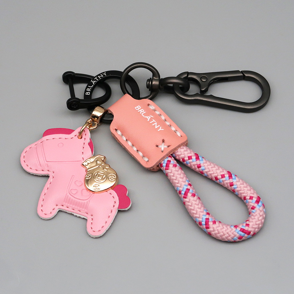手工包包真皮小马钥匙扣防丢挂绳挂件马上有钱汽车编织绳钥匙链