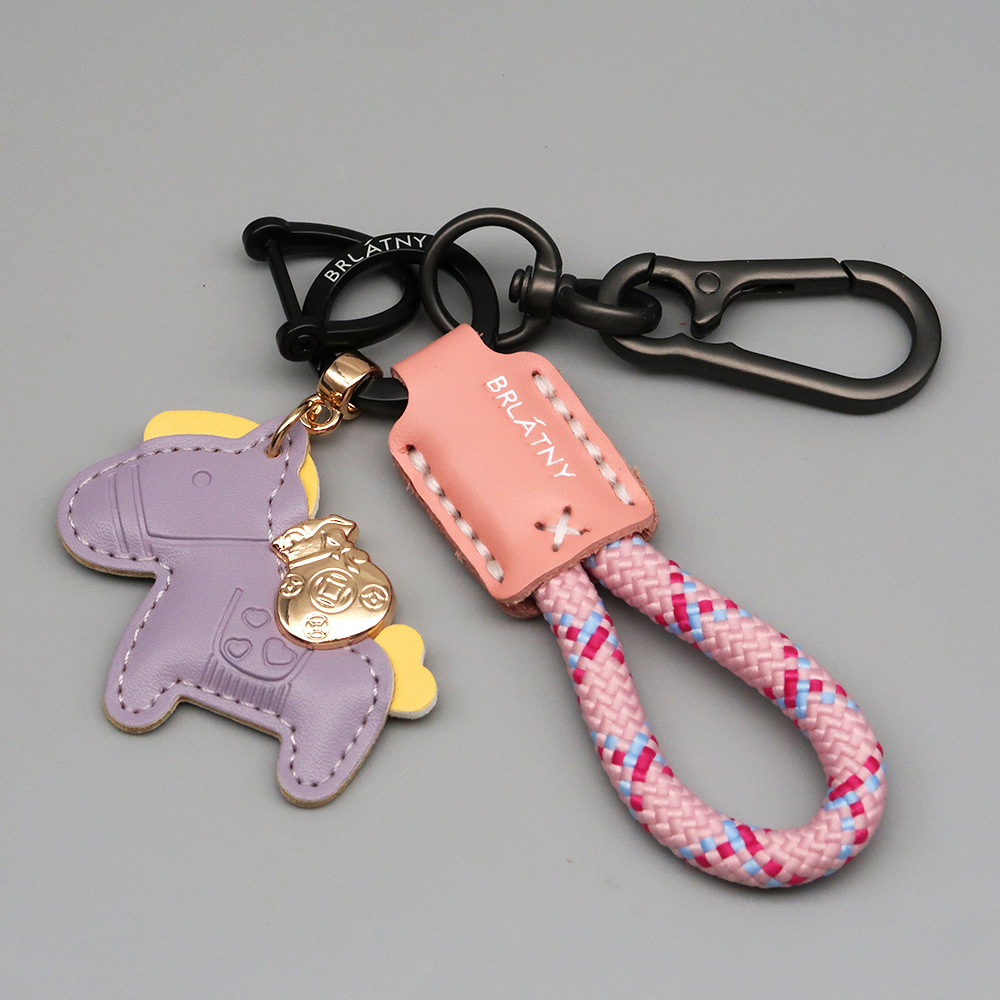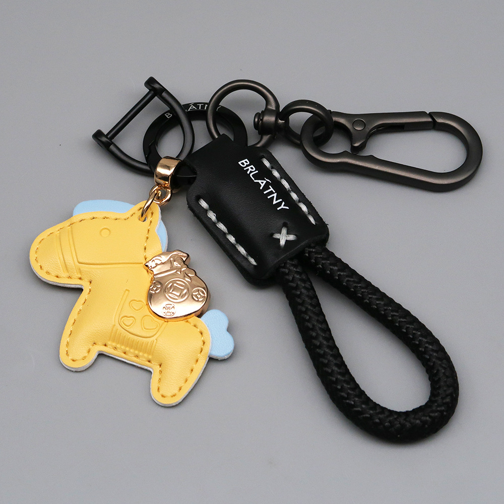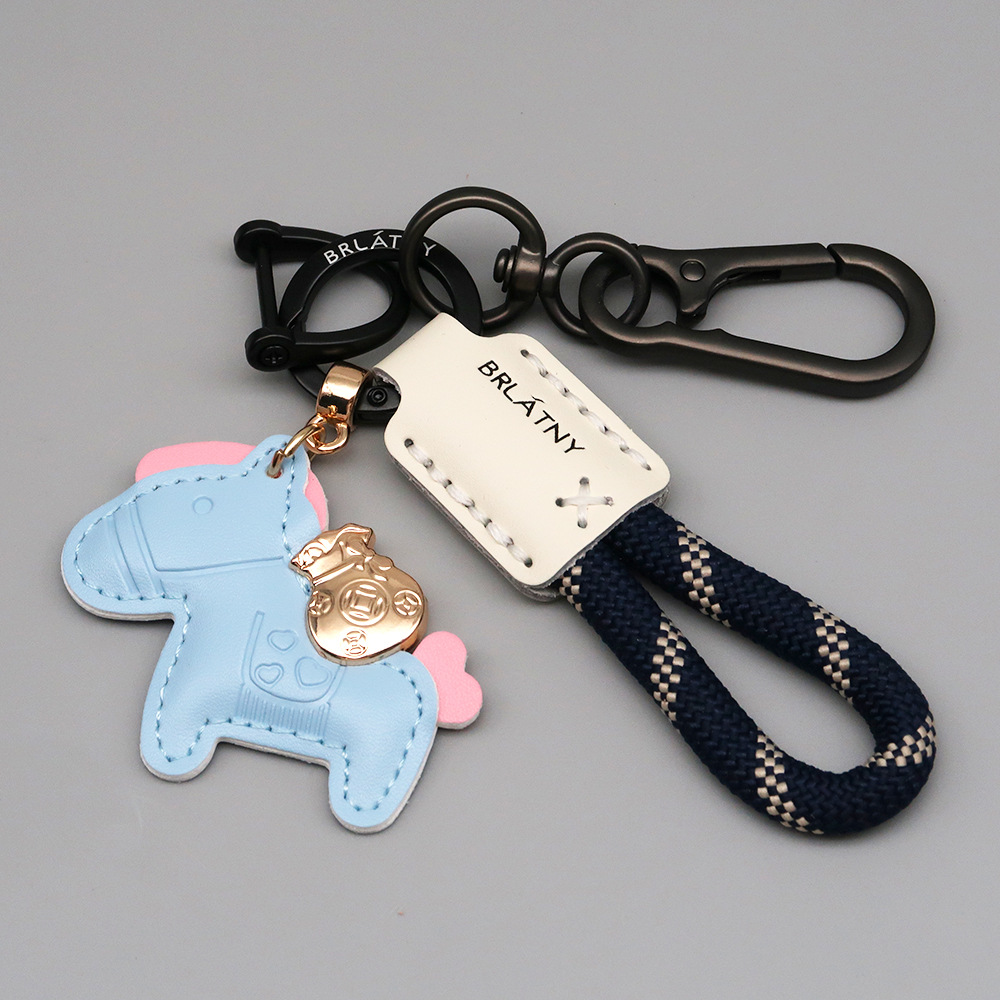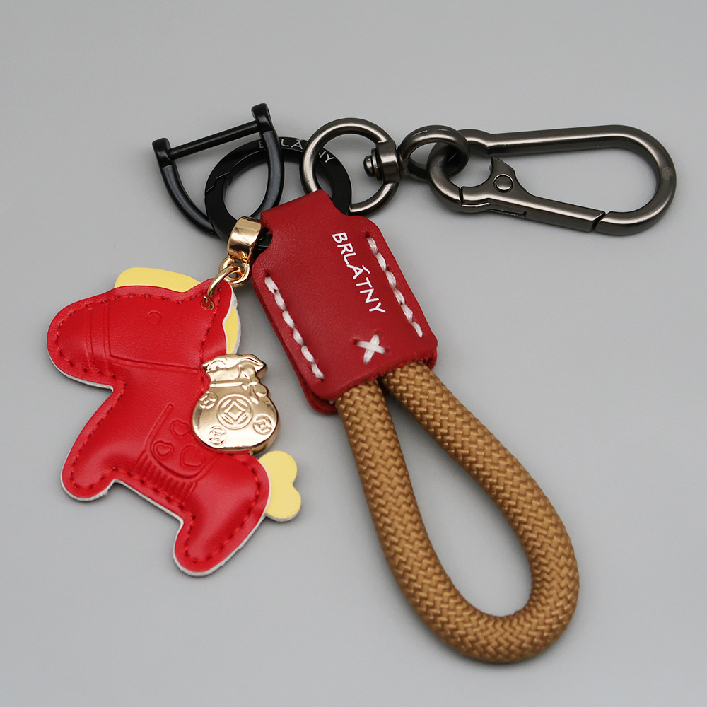 手工包包真皮小马钥匙扣防丢挂绳挂件马上有钱汽车编织绳钥匙链