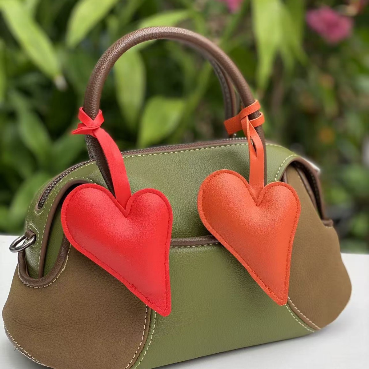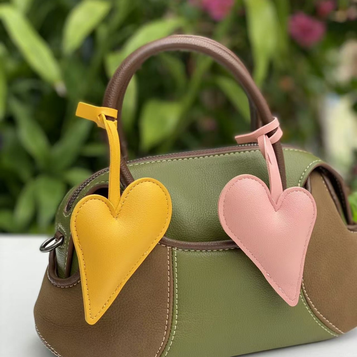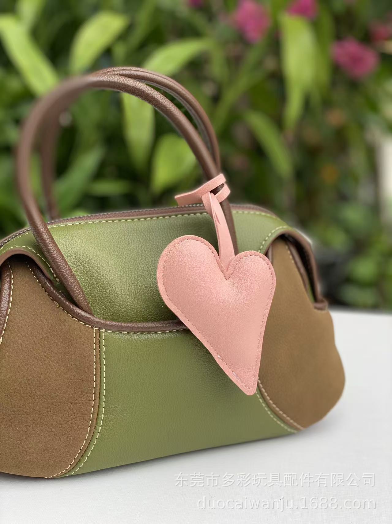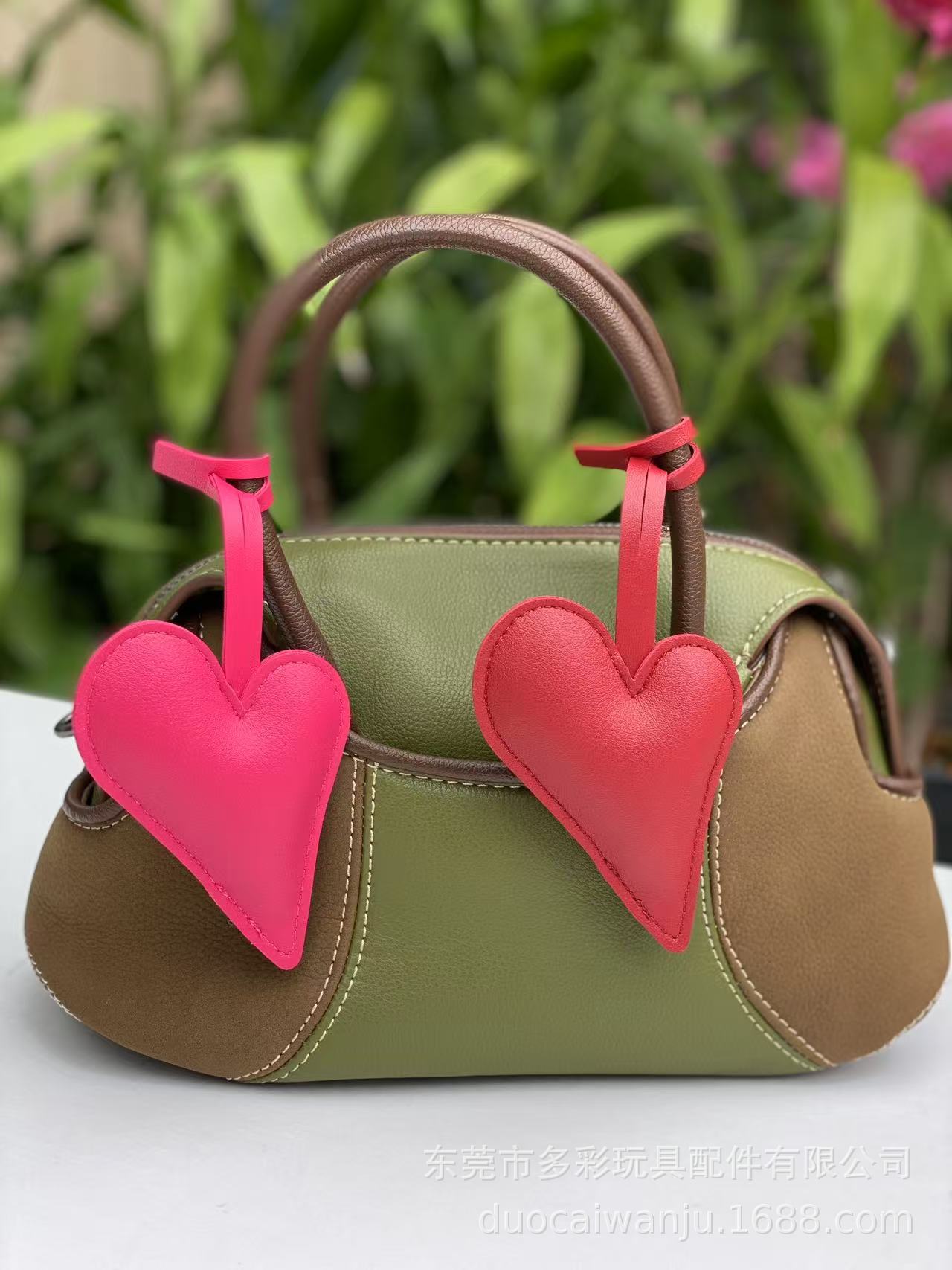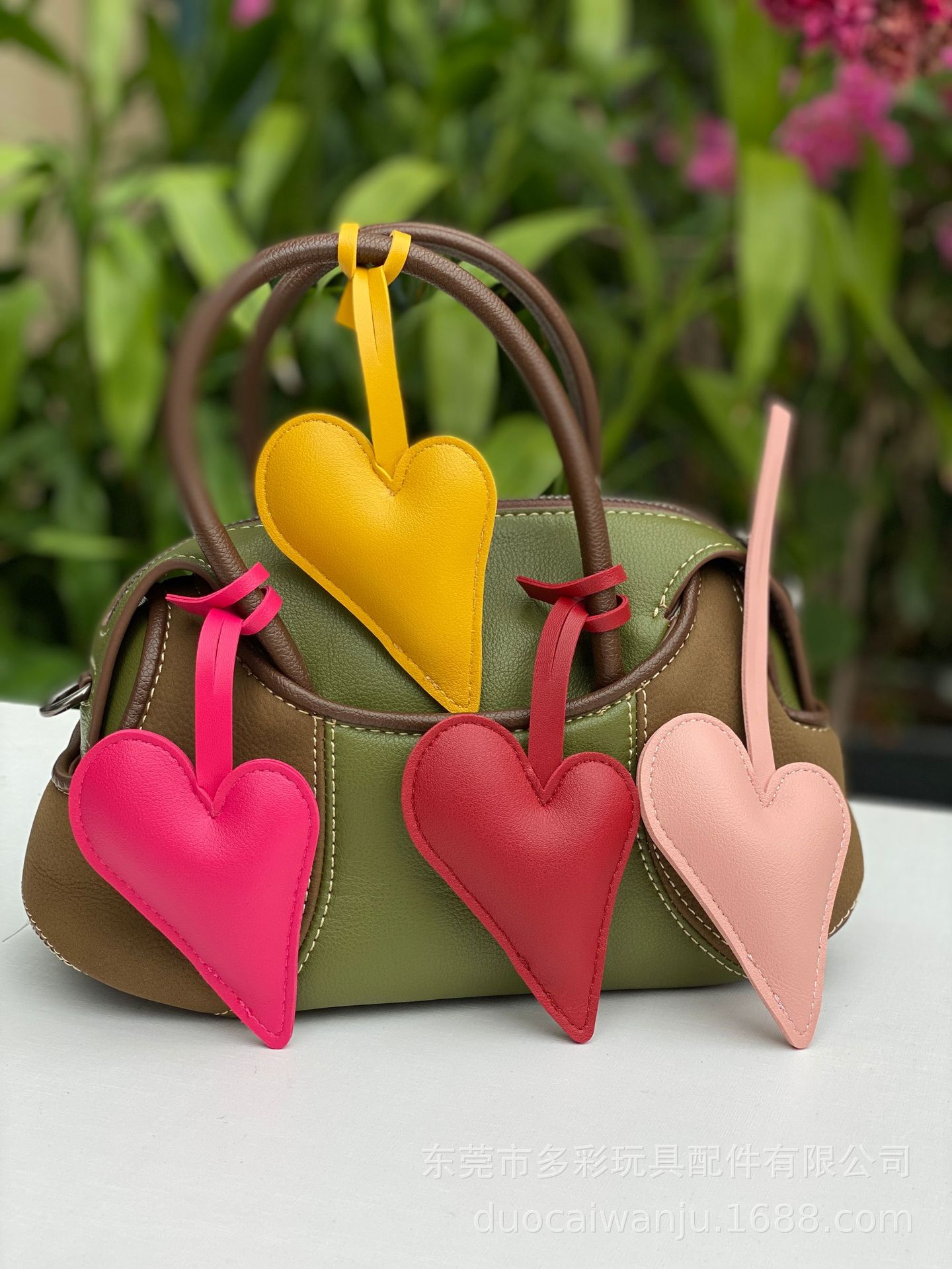 新款心形包包挂件皮质桃心钥匙扣配件立体充棉饰品爱心皮革挂件