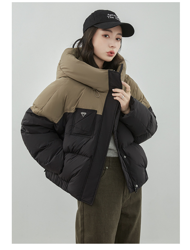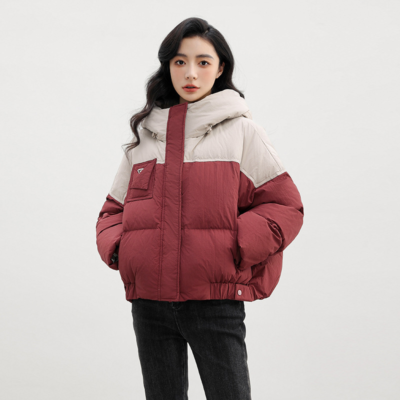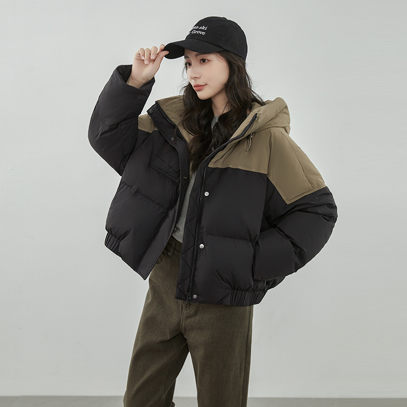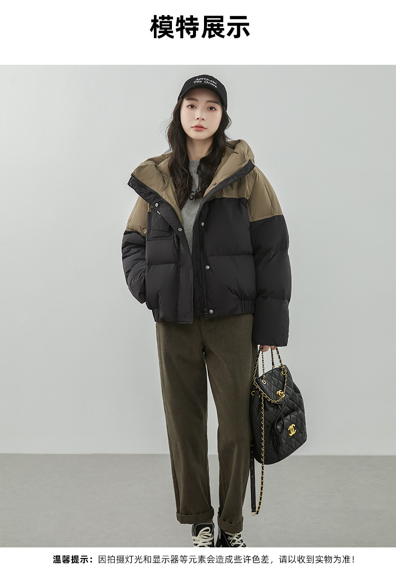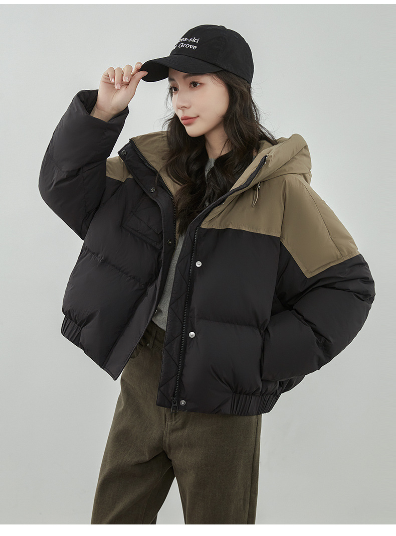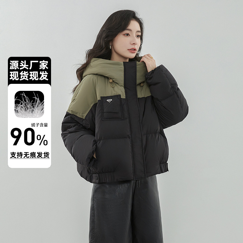 嘉兴90鸭绒韩版短款运动休闲拼色羽绒服女2025新款小个子冬季外套