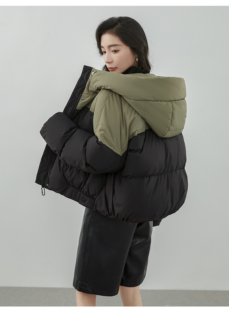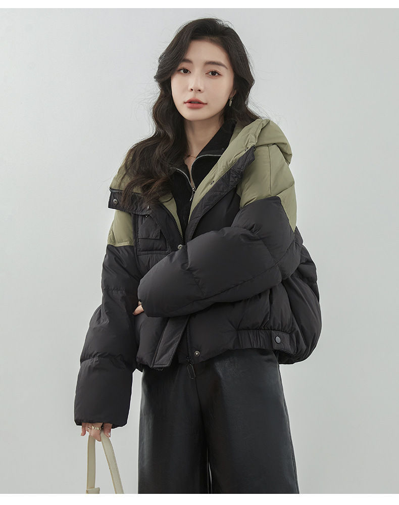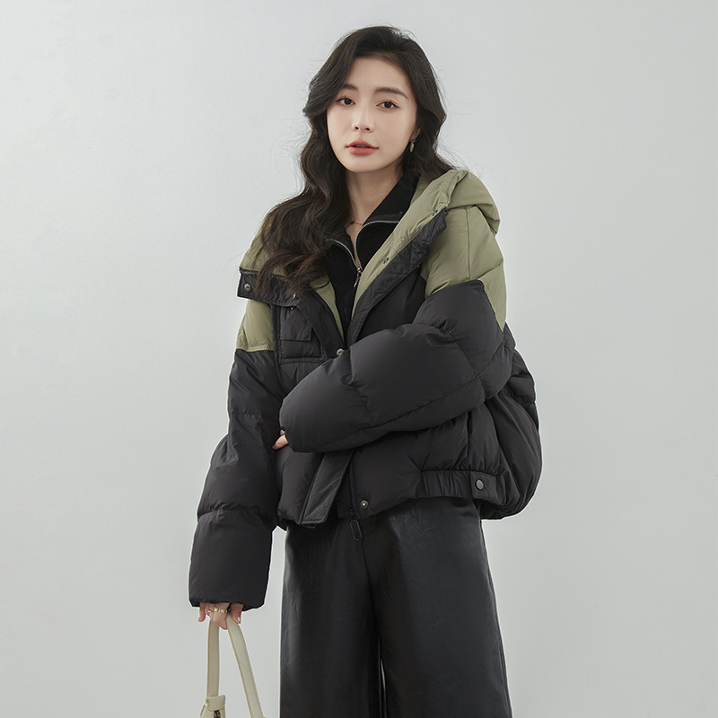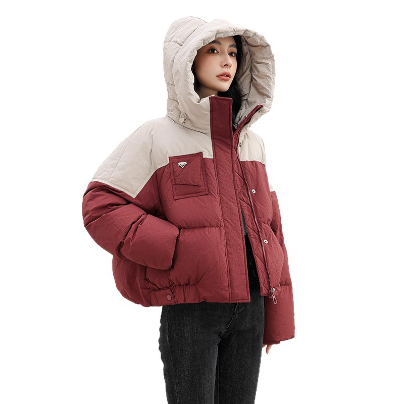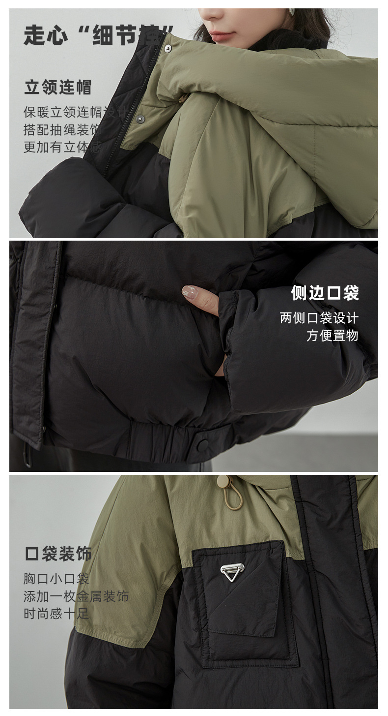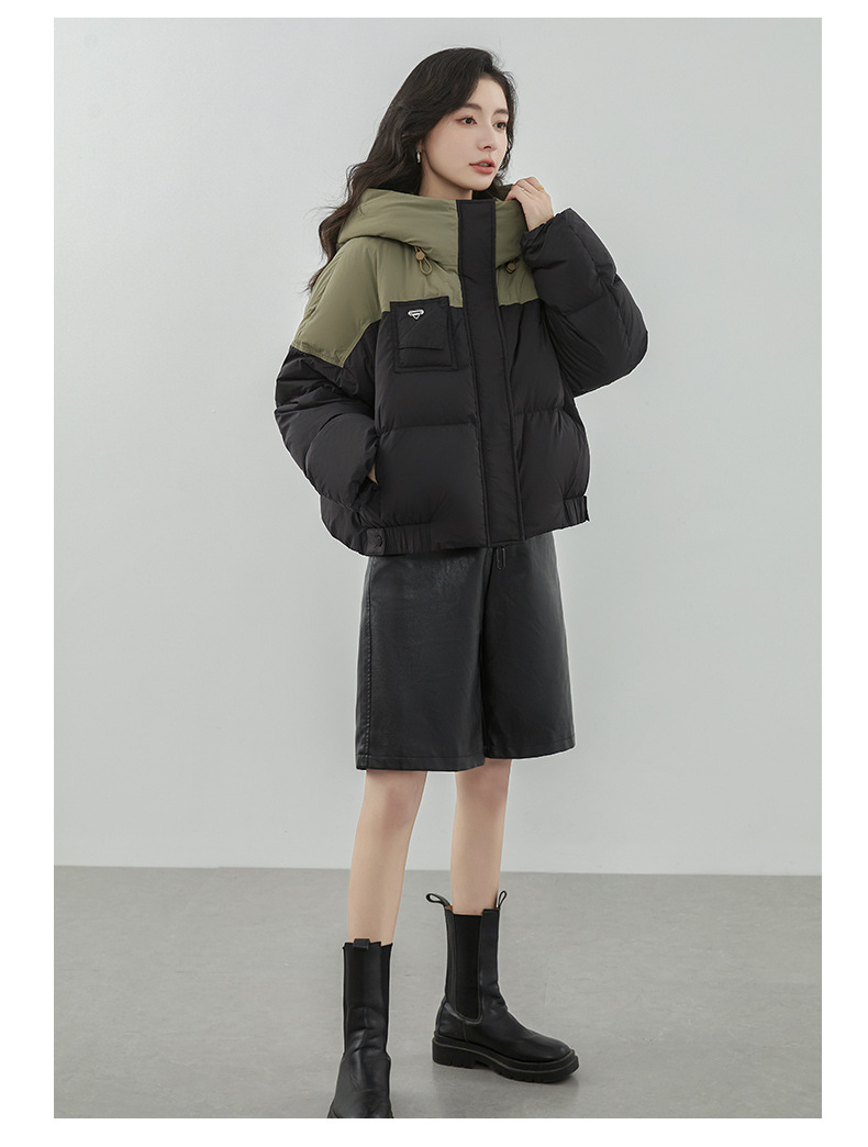 嘉兴90鸭绒韩版短款运动休闲拼色羽绒服女2025新款小个子冬季外套