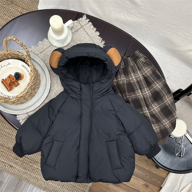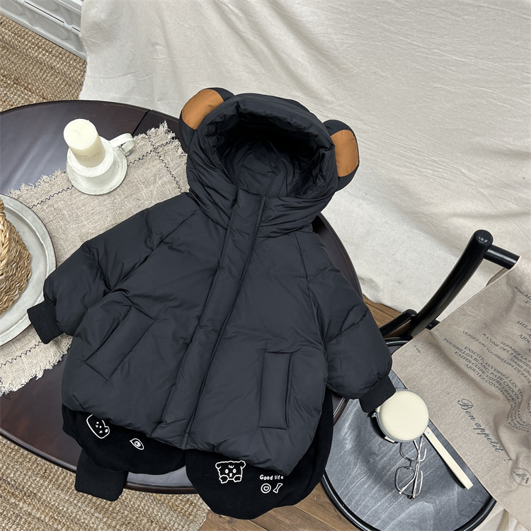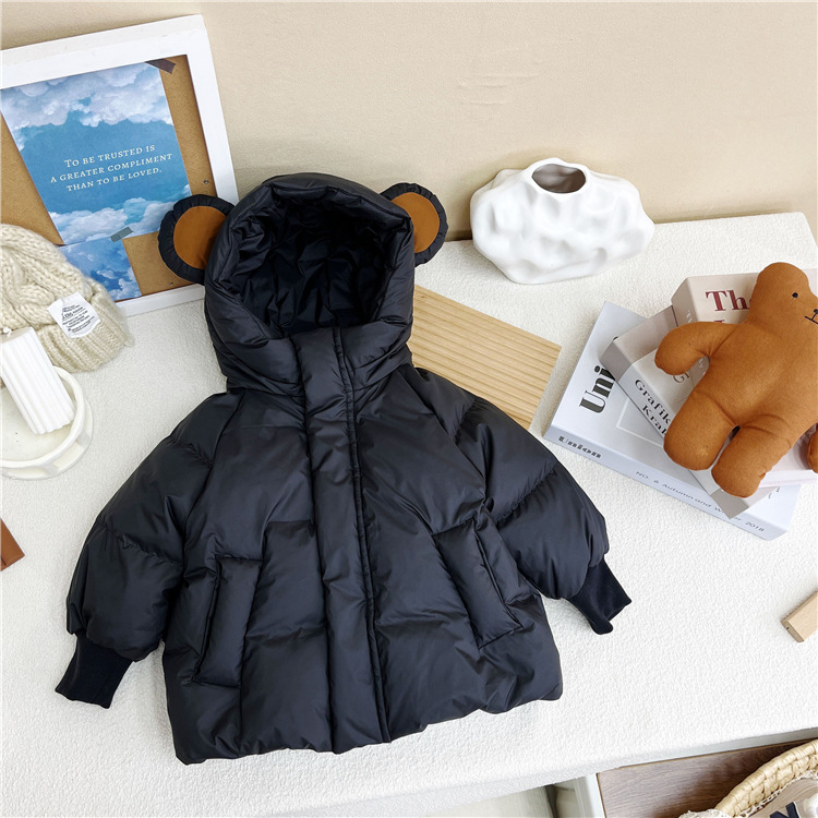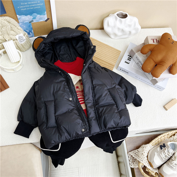 宝宝连帽羽绒服男女童中长款白鸭绒外套儿童保暖面包服小童冬装