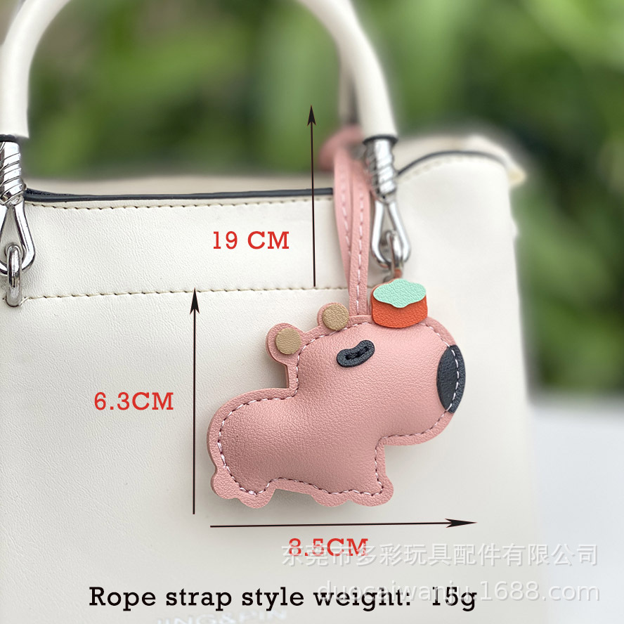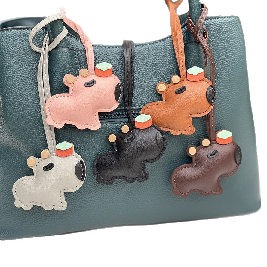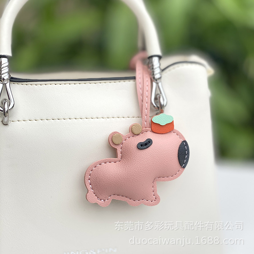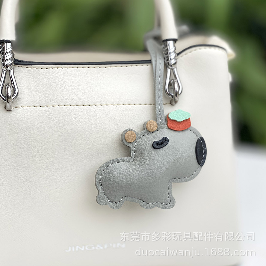 新款miu系卡皮巴拉包包挂件可爱水豚钥匙扣吊饰卡皮巴拉皮革挂件