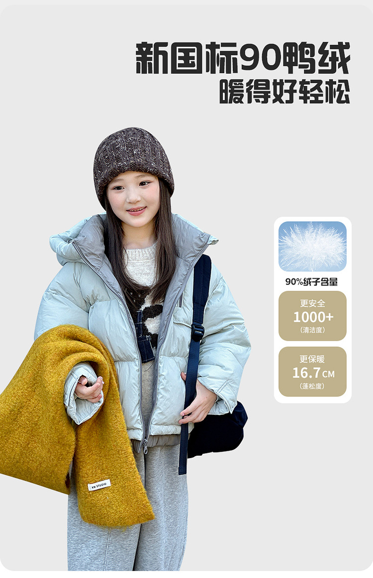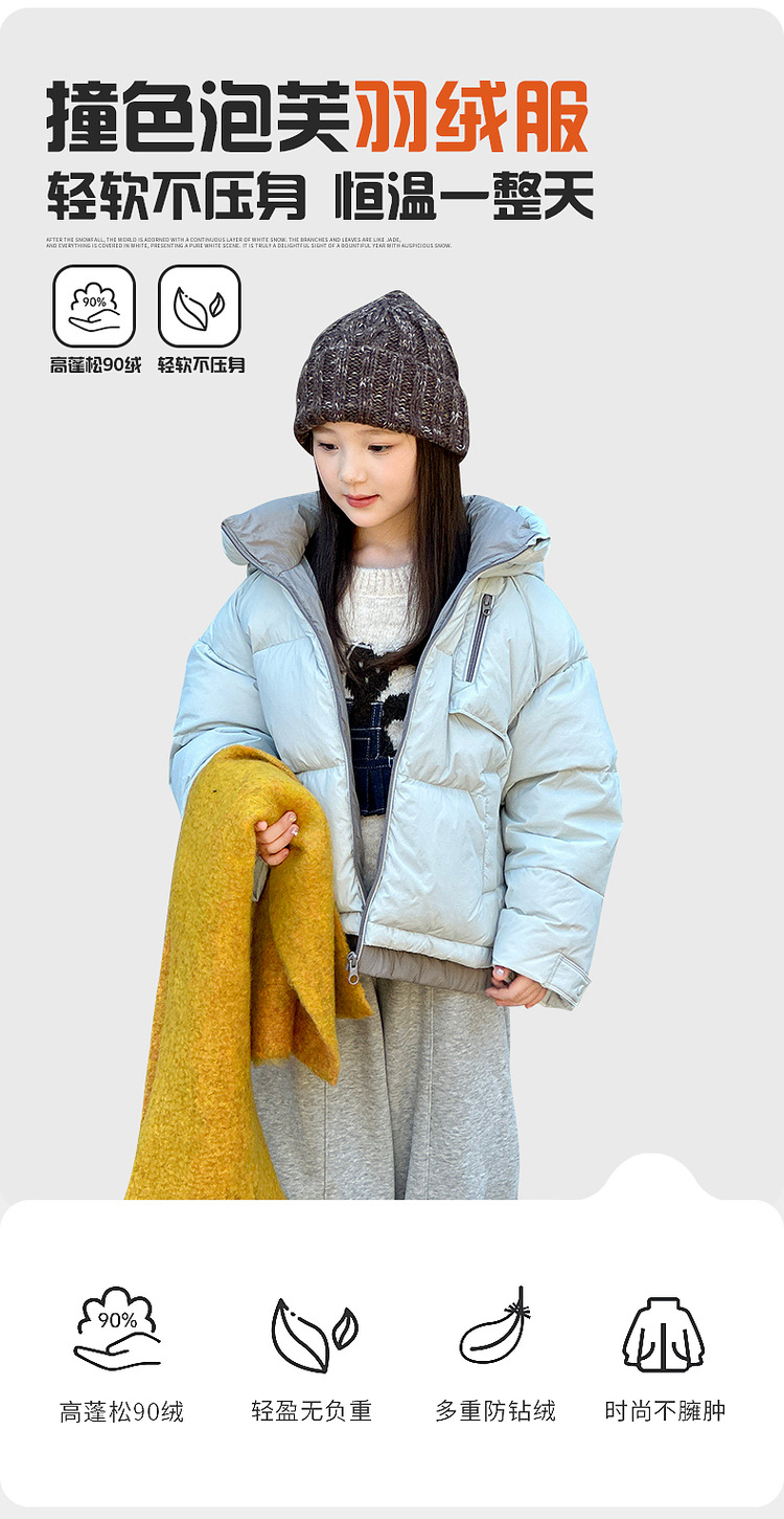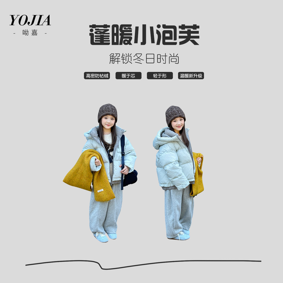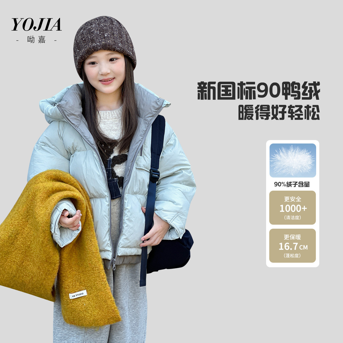 YOJIA女童羽绒服冬装2025新款加厚保暖大童装面包服90绒儿童外套