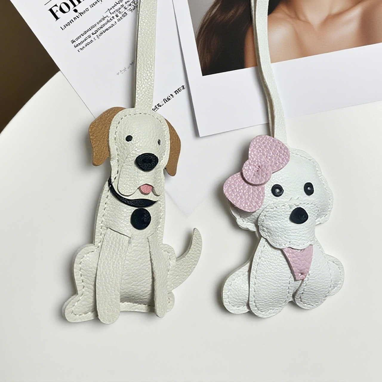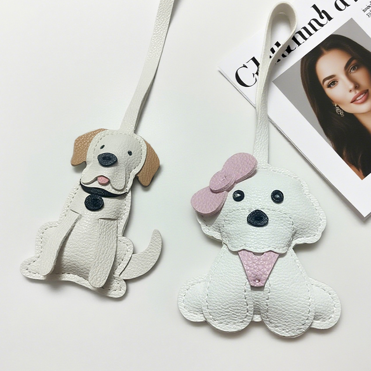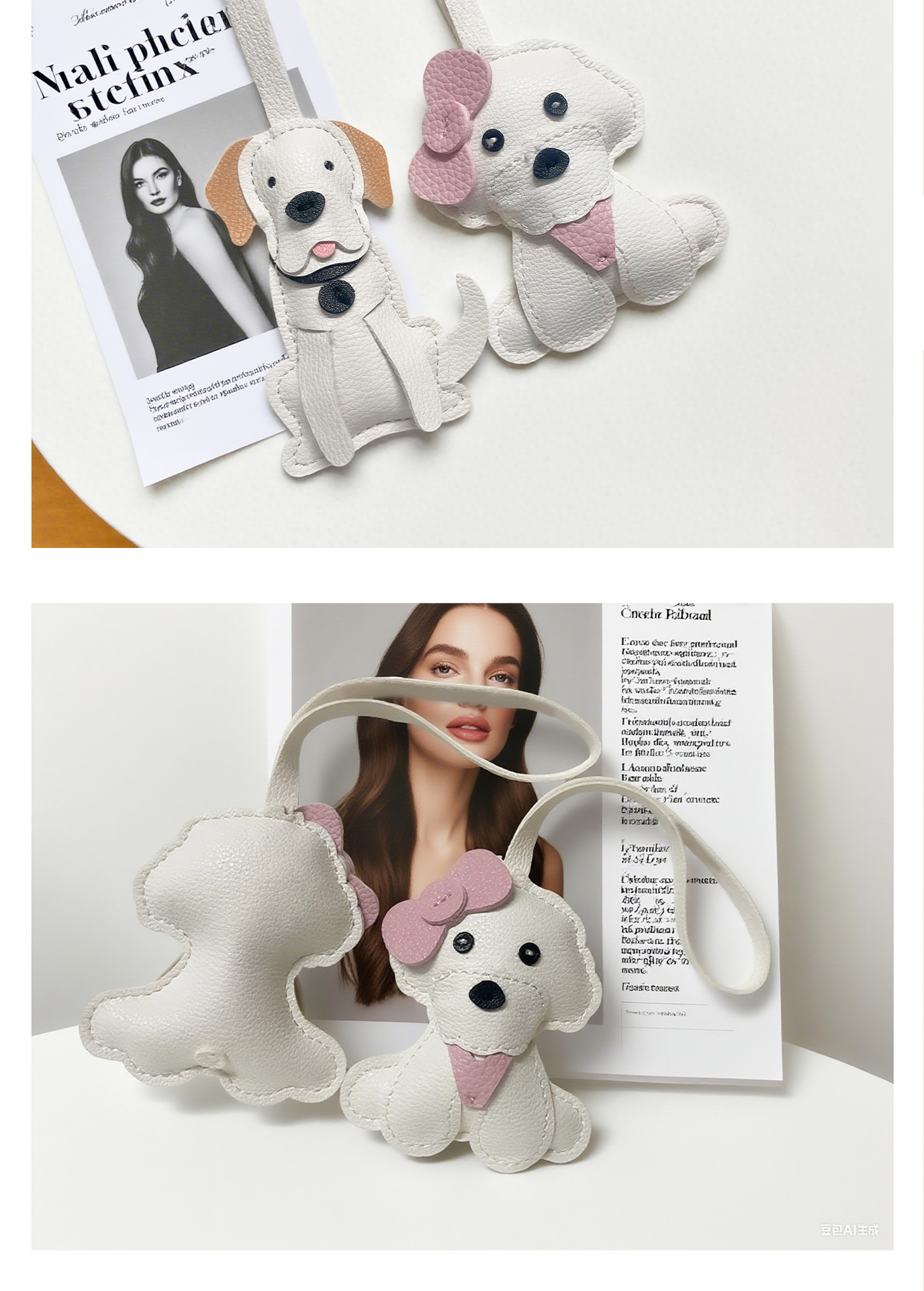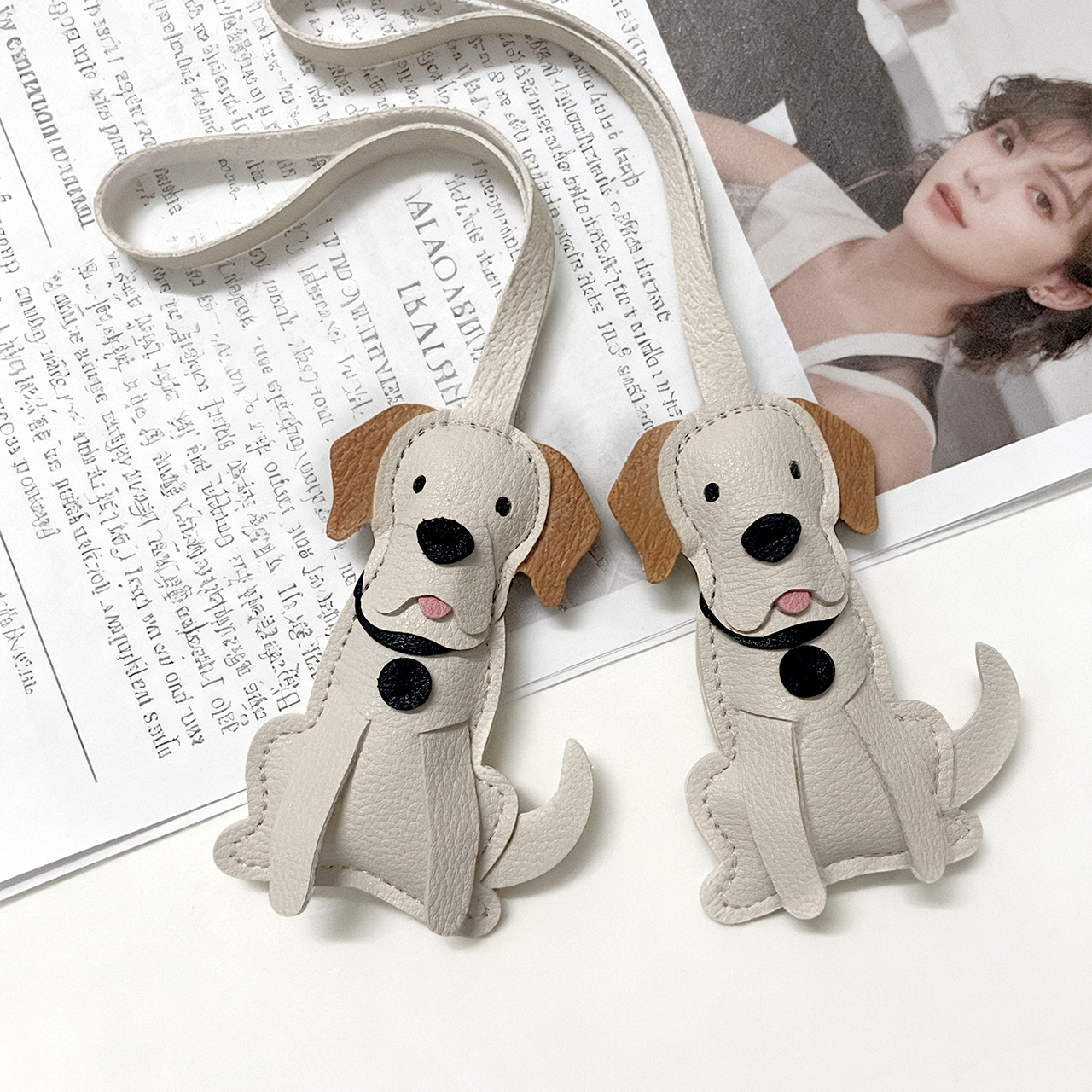 现货可爱比熊狗狗犬拉布拉多狗挂件可爱diy挂绳皮质小狗包包挂件