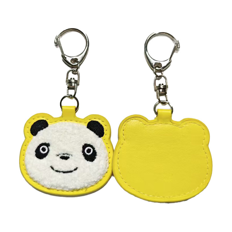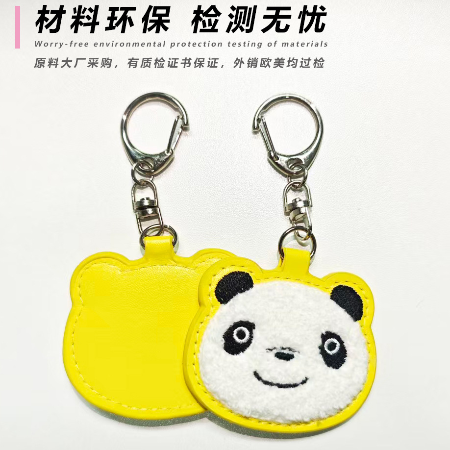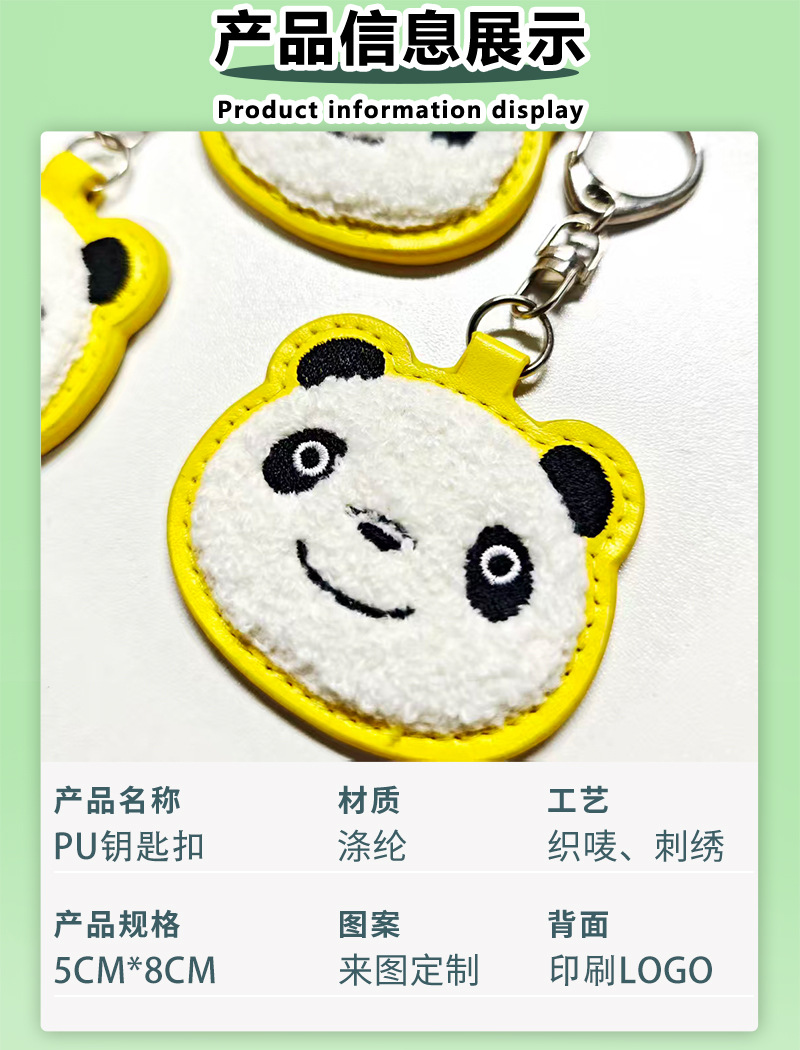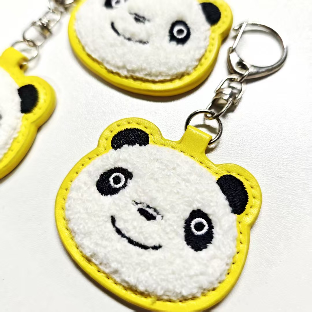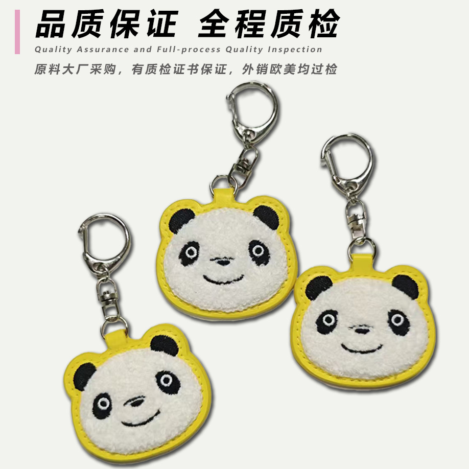 PU皮革毛巾刺绣钥匙扣定制卡通熊猫钥匙圈挂件毛绒油边logo小礼品