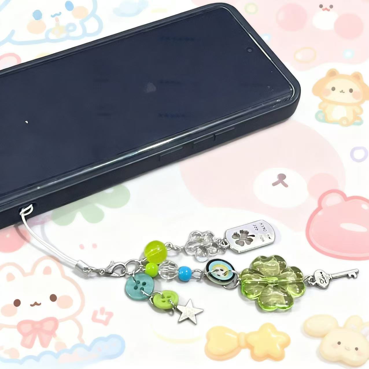 积攒幸运四叶草挂绳手作串珠自制少女心手机壳相机包包挂件挂饰