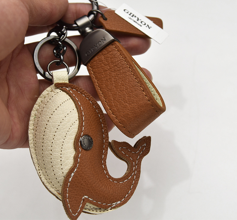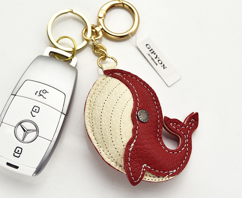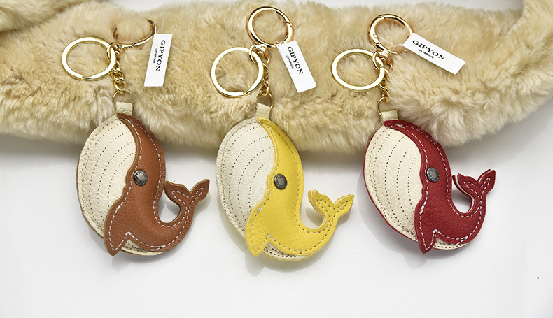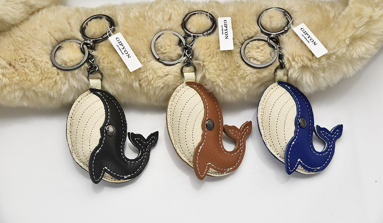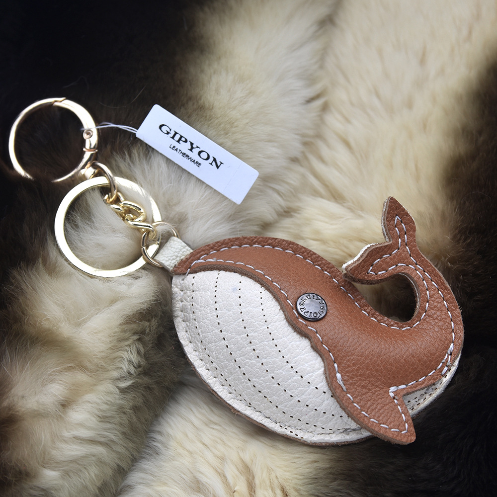 原创真羊皮 轻奢手工真皮挂饰法羊钥匙扣鲸鱼挂件公仔包包汽车链