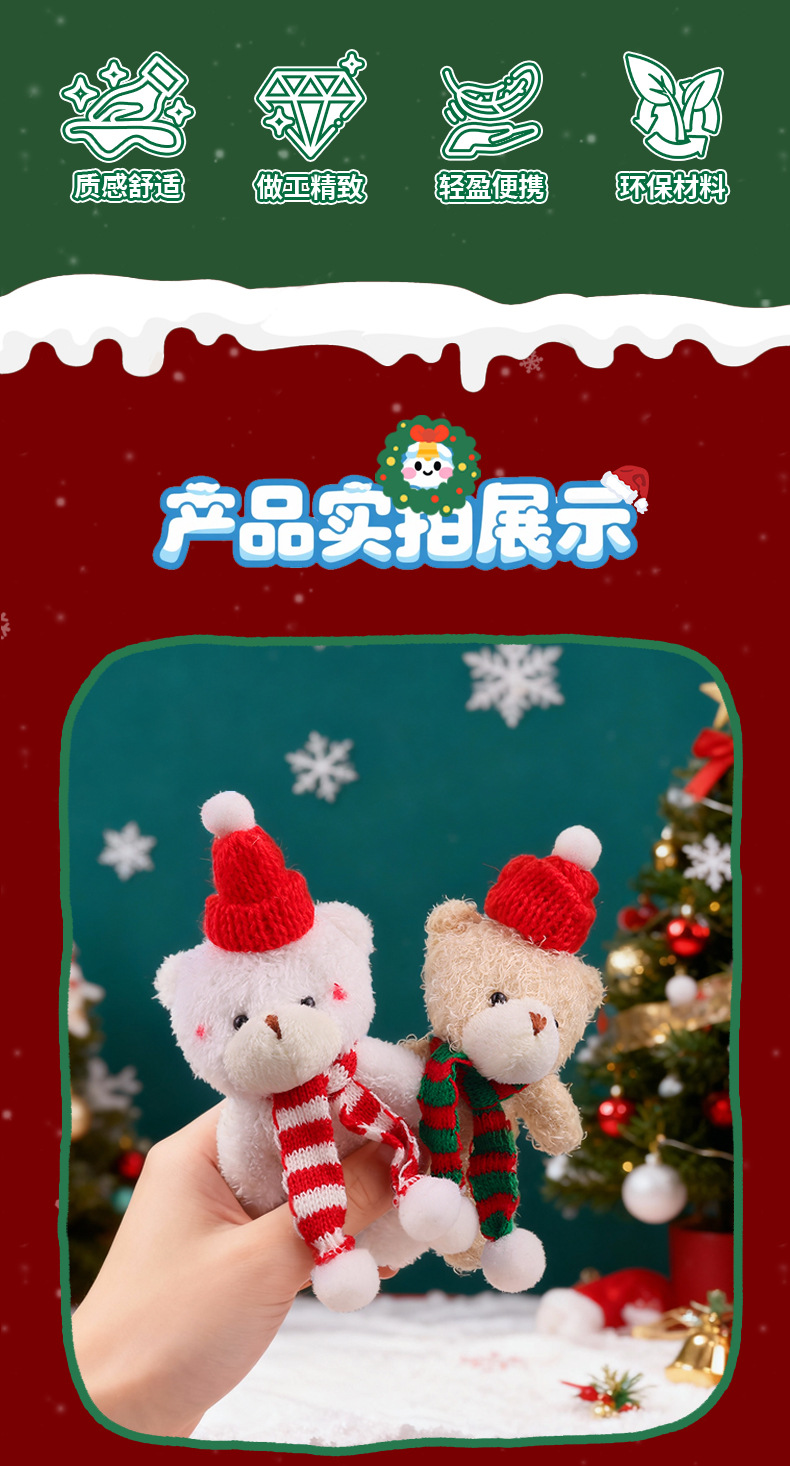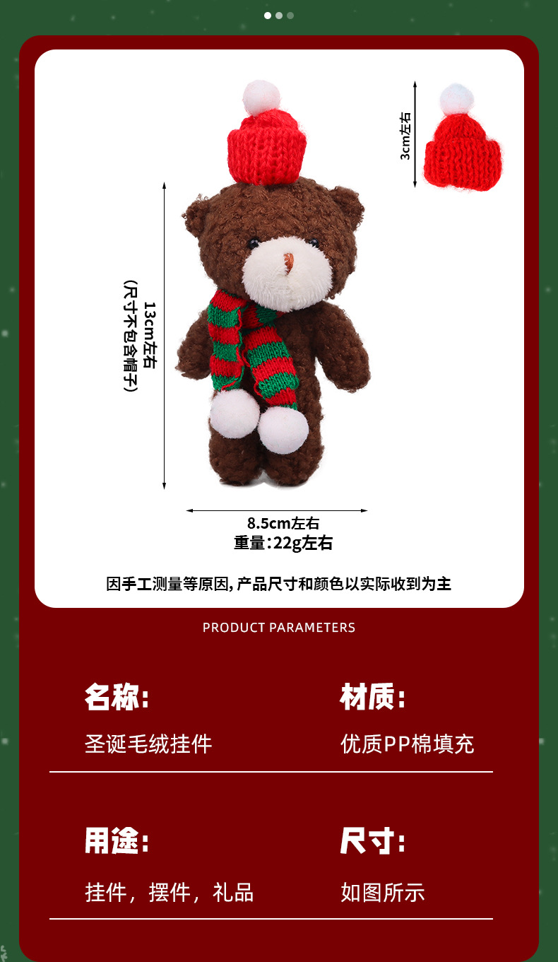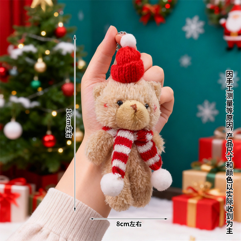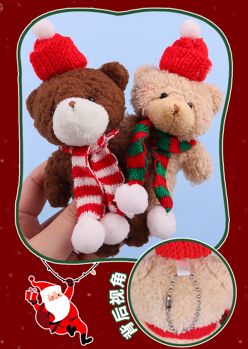 圣诞节腮红小熊毛绒玩偶挂饰挂件娃娃公仔连体熊节日礼品跨境批发