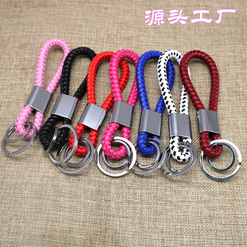 编制皮绳钥匙扣汽车挂件皮革钥匙圈情侣钥匙链配件制定激光刻字