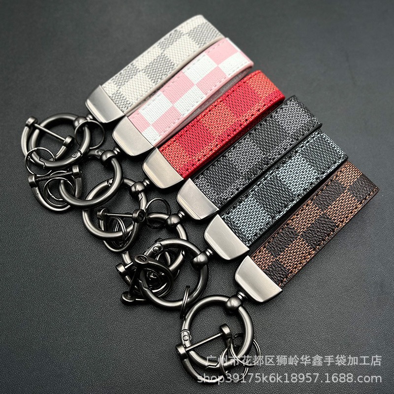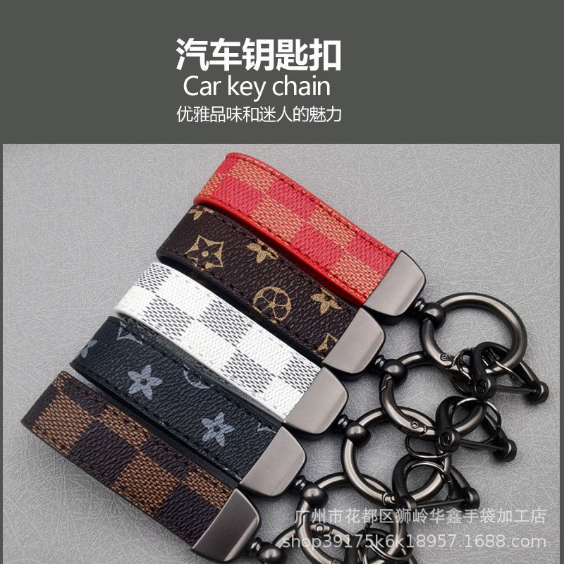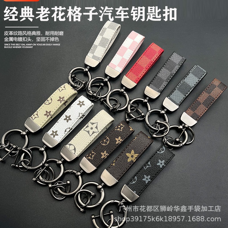 潮牌PU老花皮汽车钥匙扣挂件创意金属包包时尚男女钥匙链