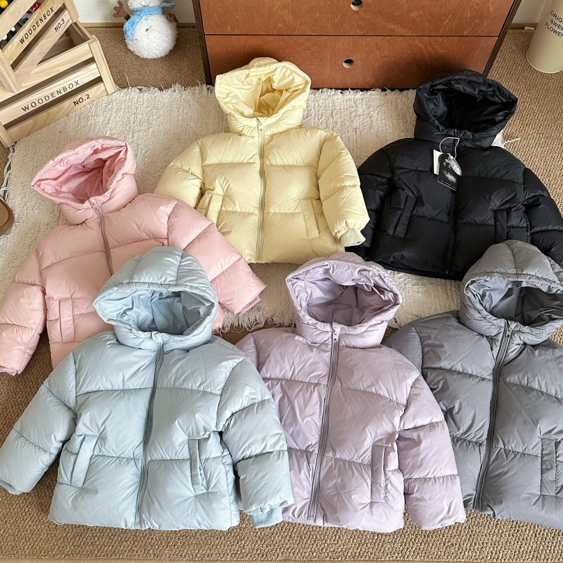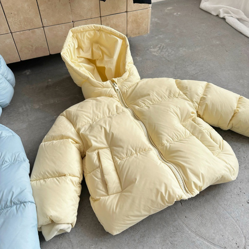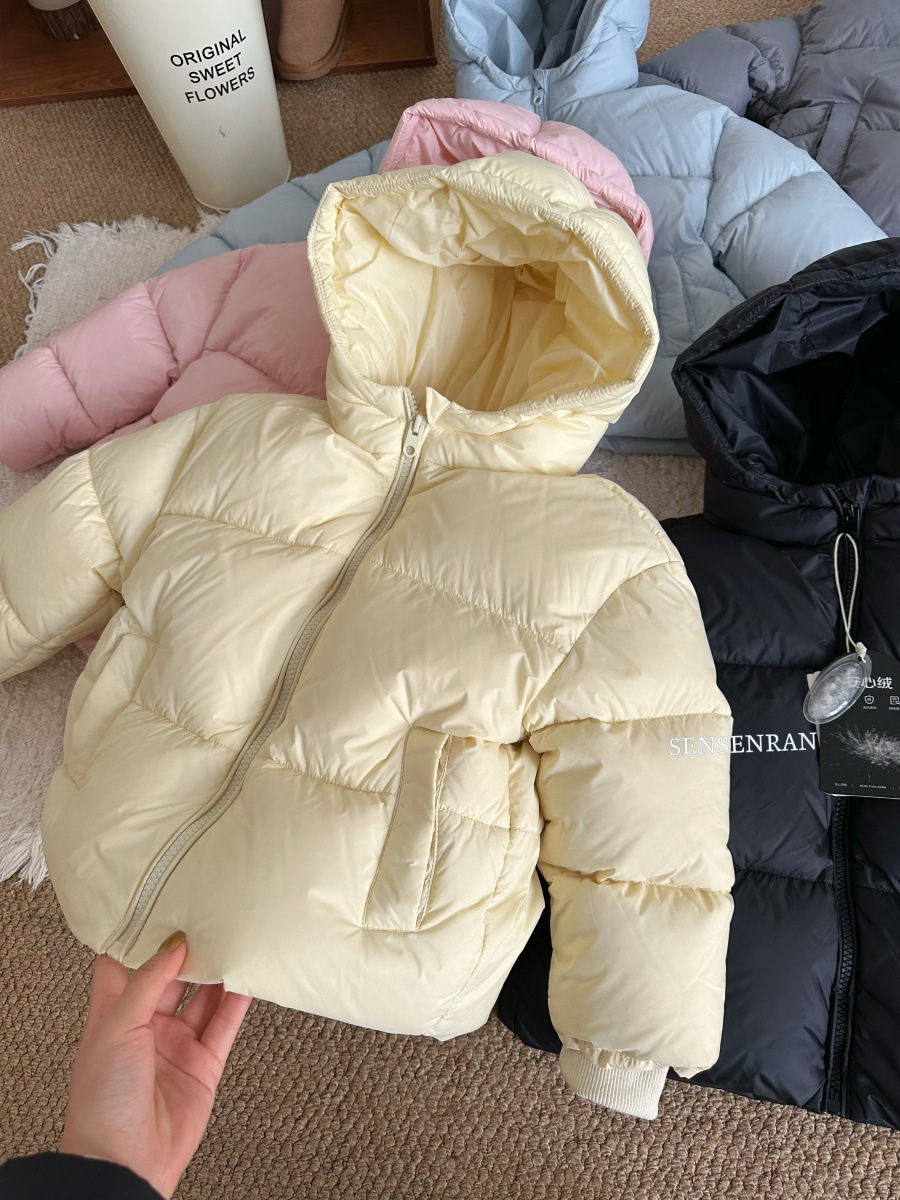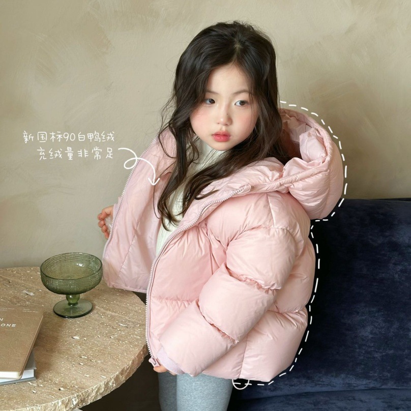 儿童泡芙羽绒服2025冬季新款男女童溯源白鸭绒纯色连帽外套中小童