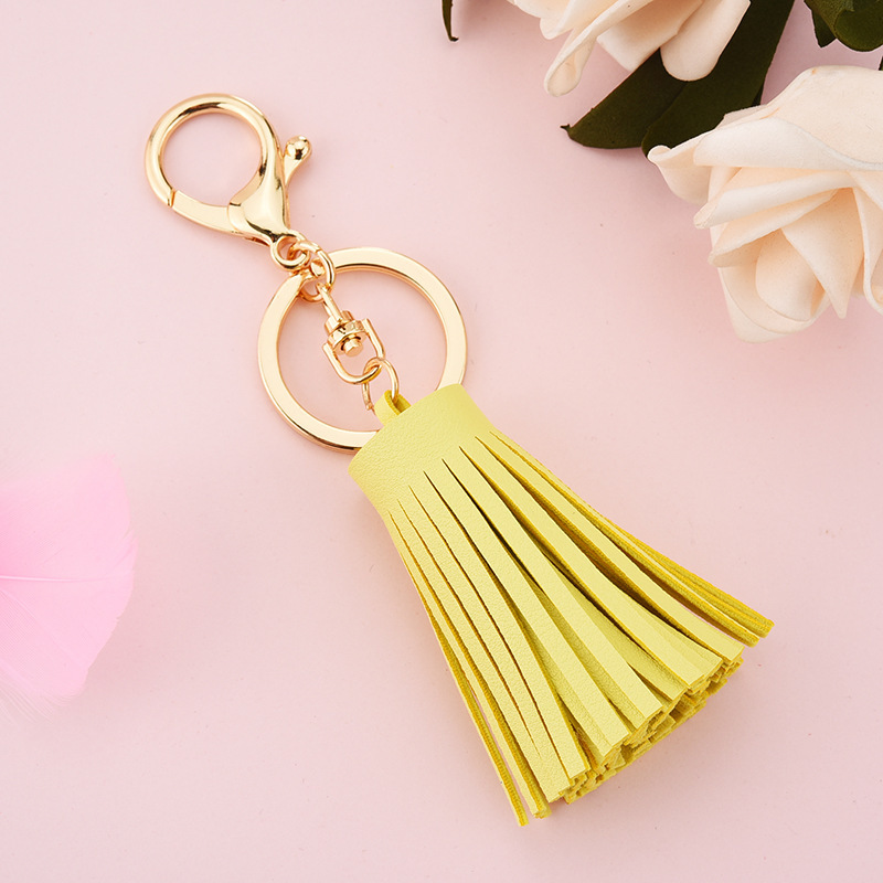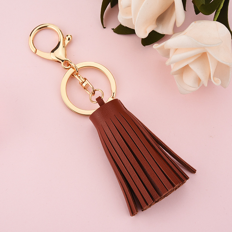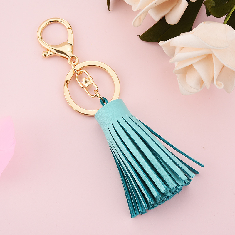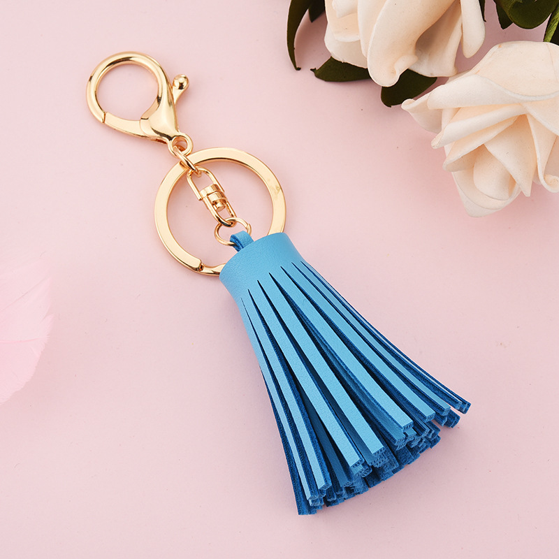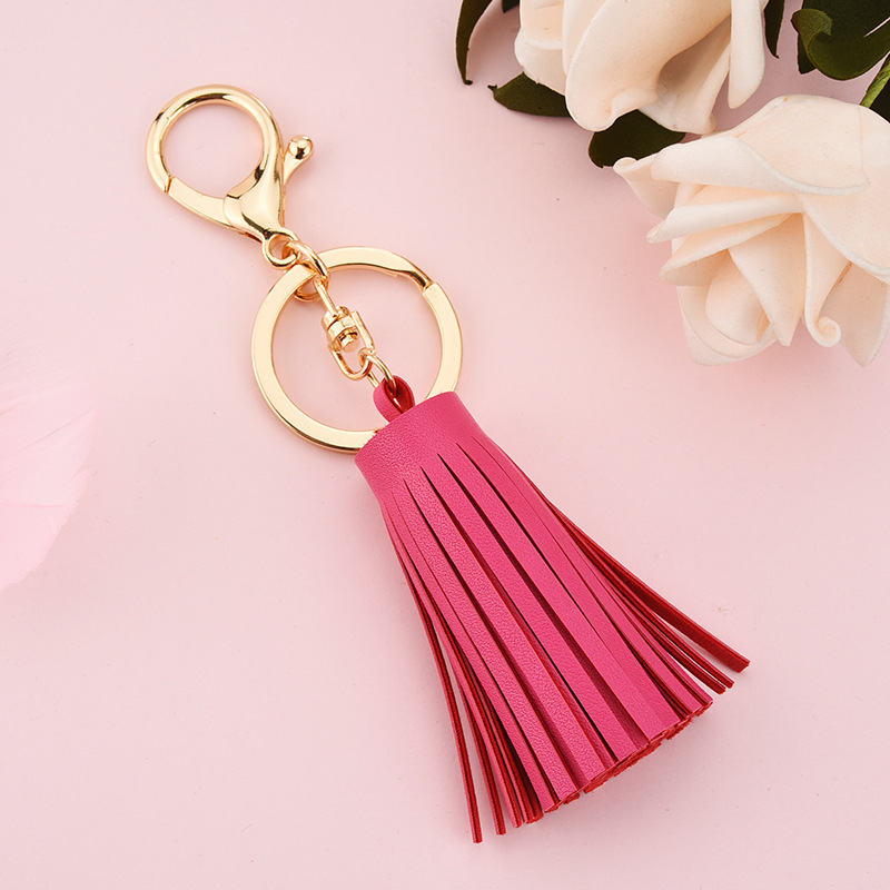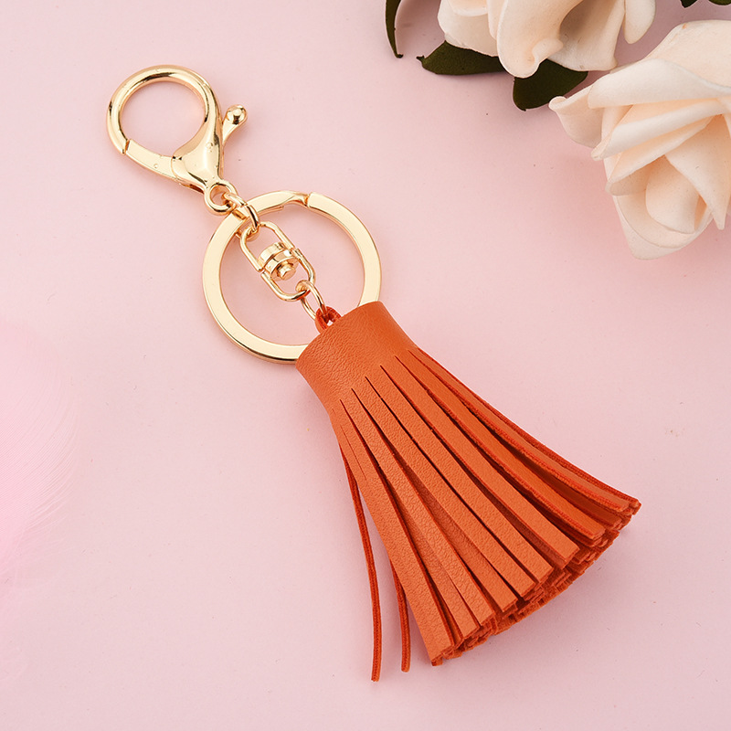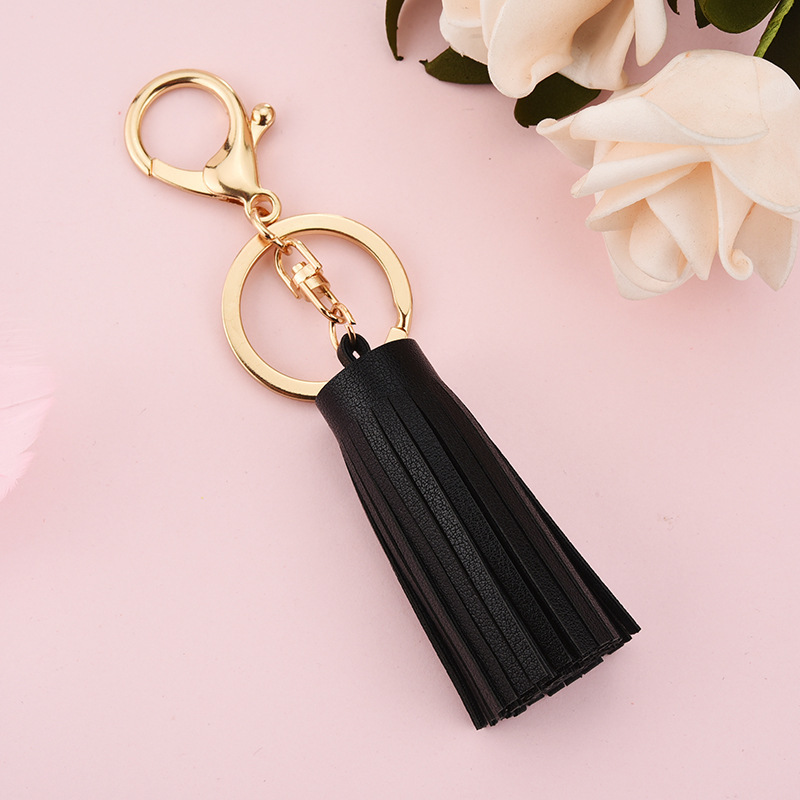 韩版6cm短胖皮革流苏钥匙扣 同底PU流苏服装包包手机壳配件批发