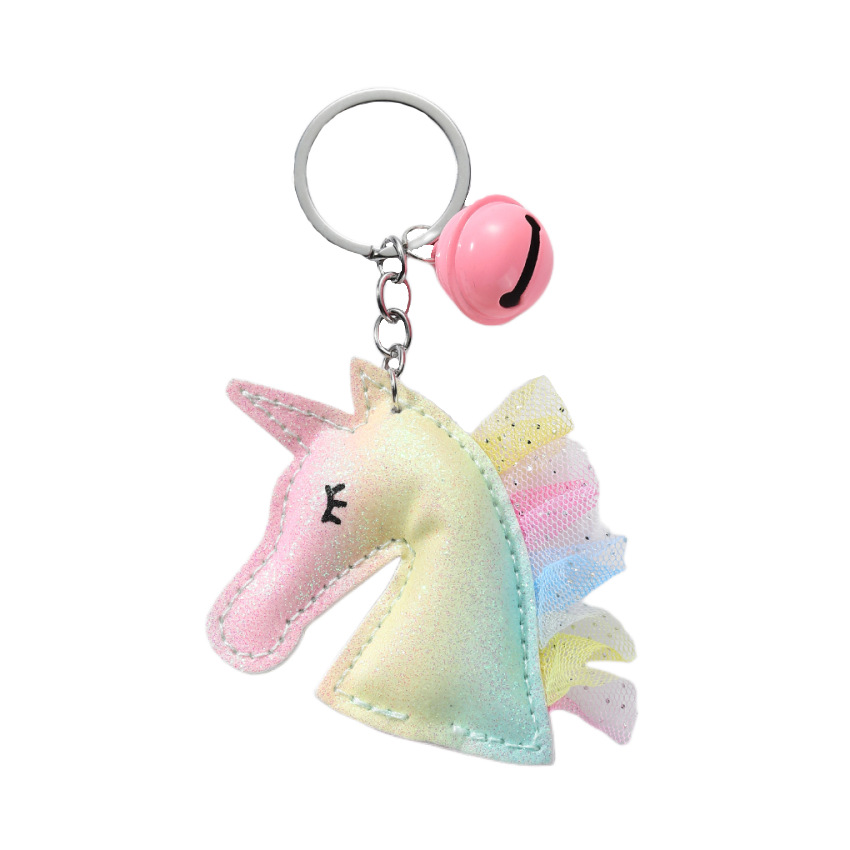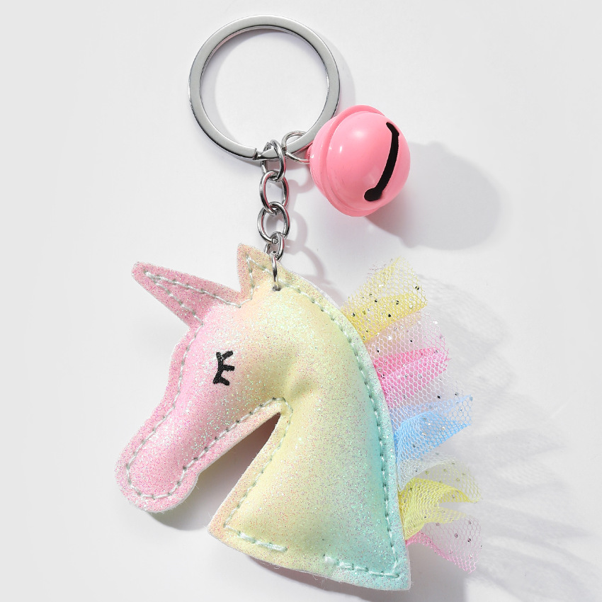 创意独角兽钥匙扣PU皮革包包小挂件个性皮质铃铛汽车钥匙扣挂饰