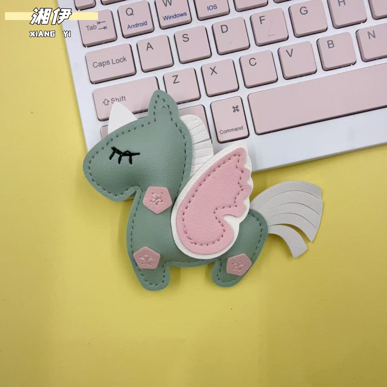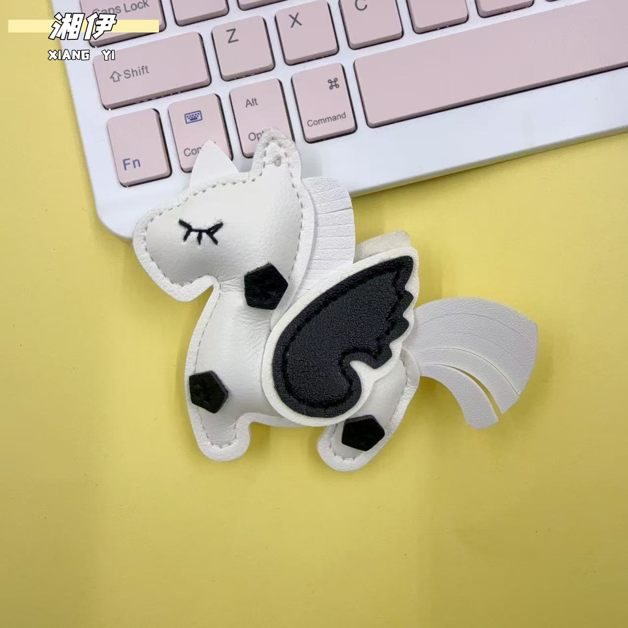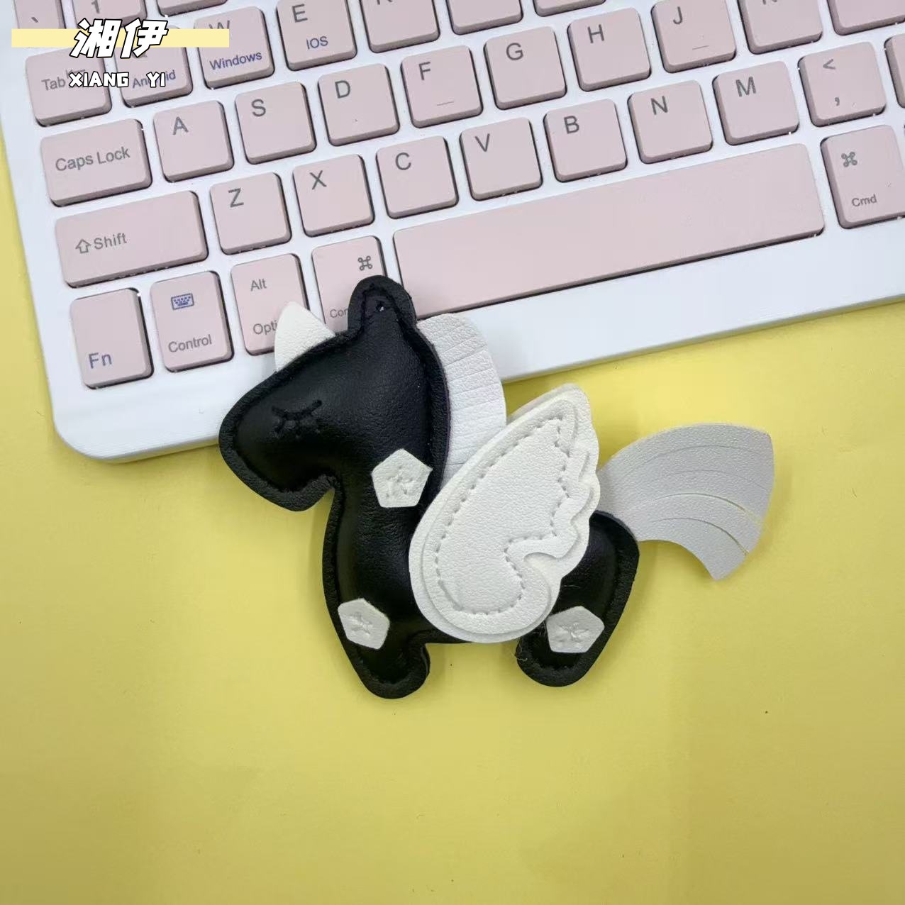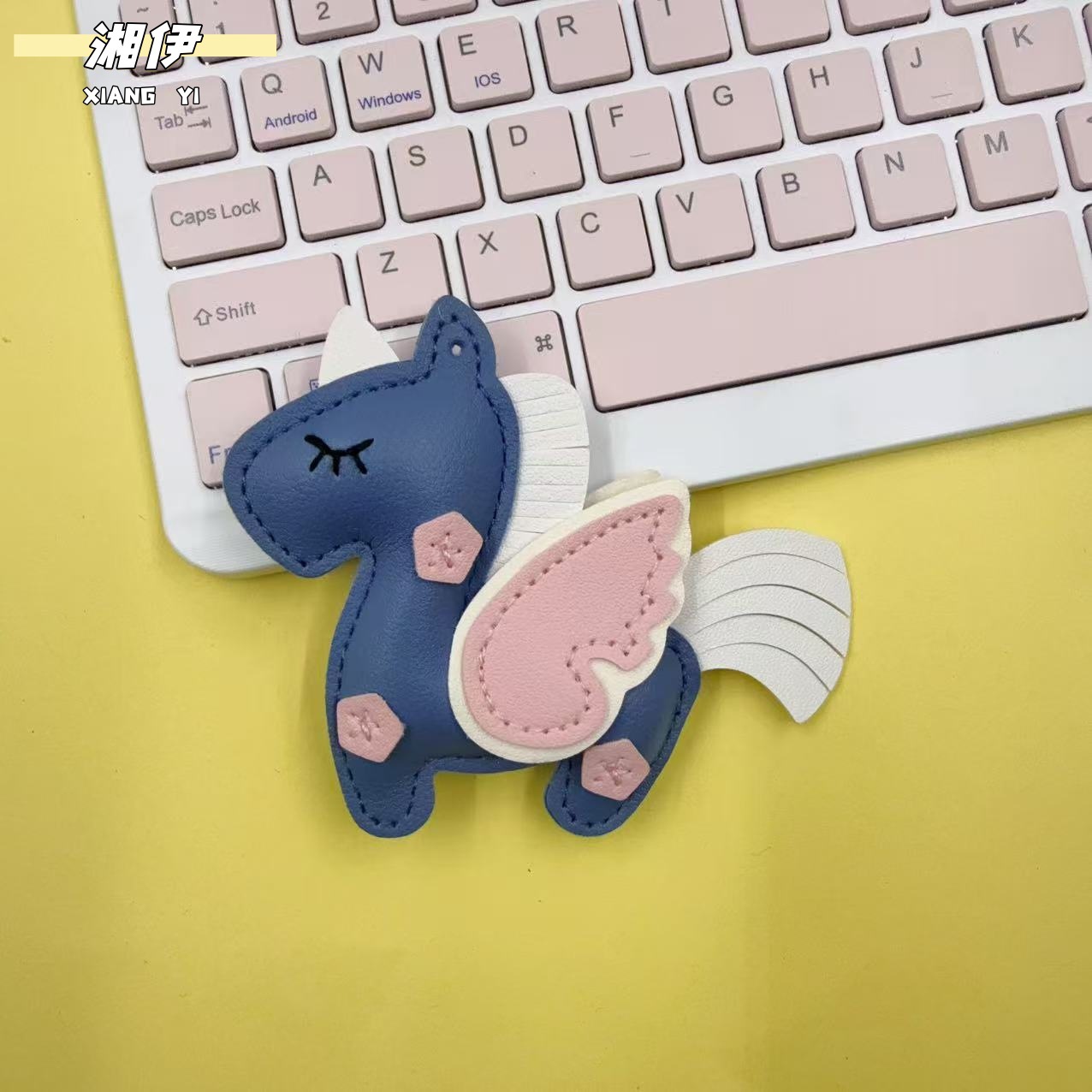 跨境重工卡通彩虹小飞马钥匙扣挂件手工缝制双面皮革小飞马