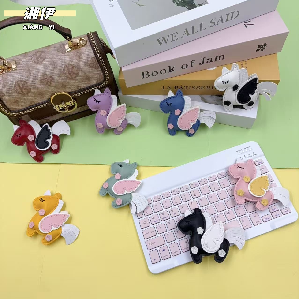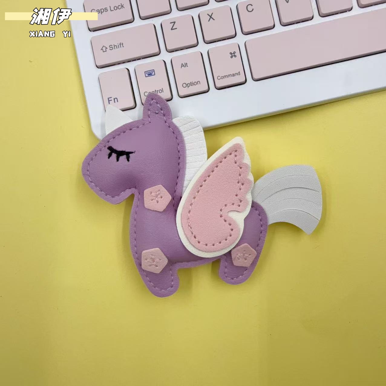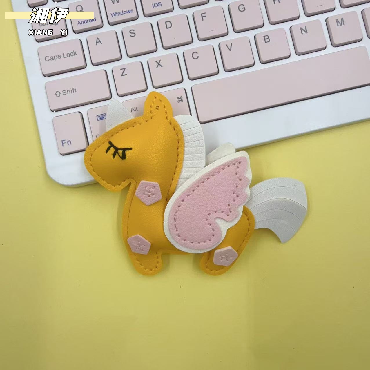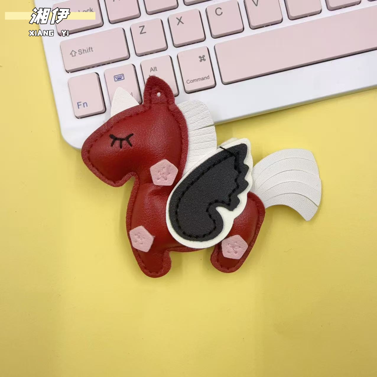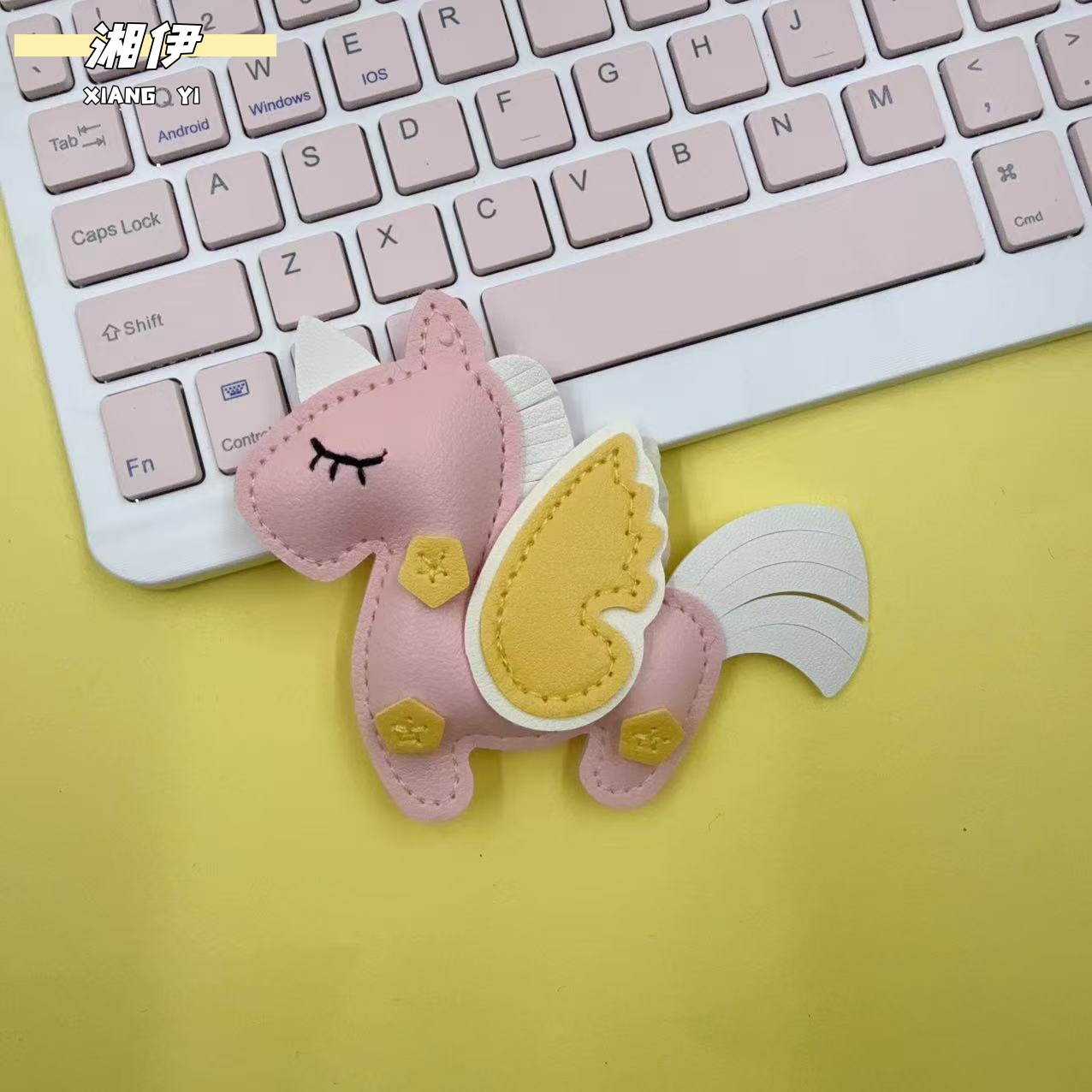 跨境重工卡通彩虹小飞马钥匙扣挂件手工缝制双面皮革小飞马