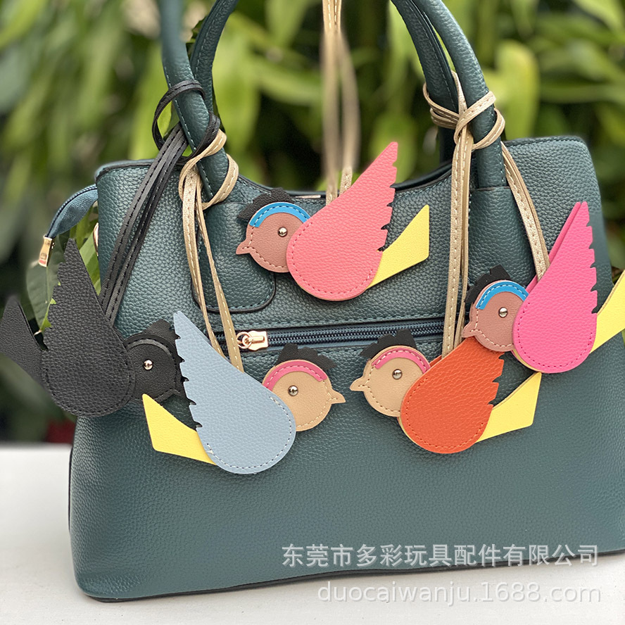 新款h家小鸟包包挂件pu皮质飞鸟吊饰卡通动物挂饰小鸟皮革挂件