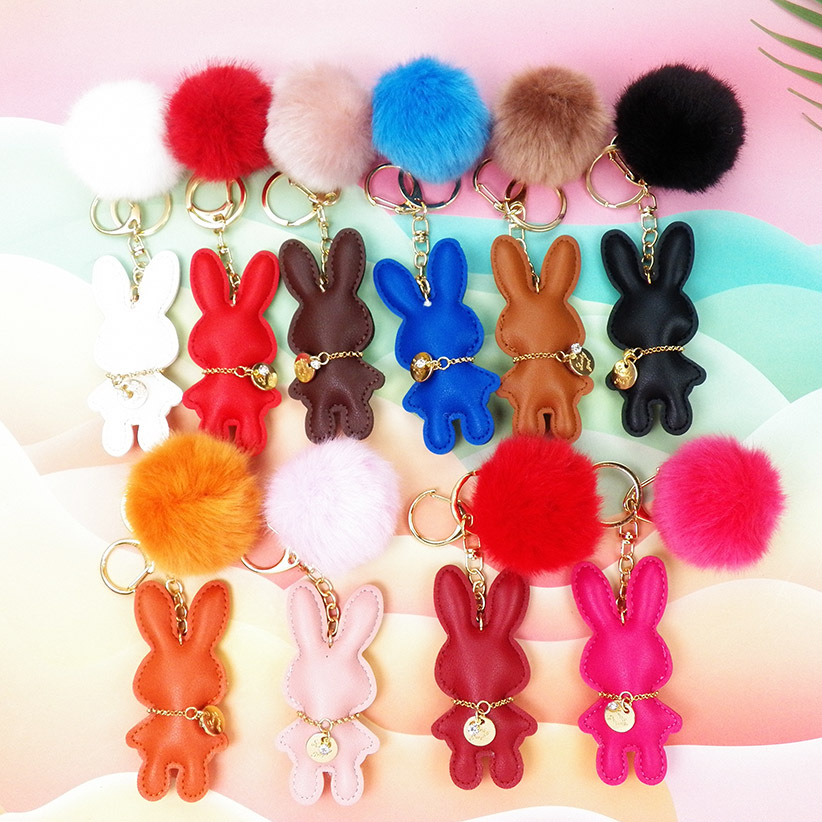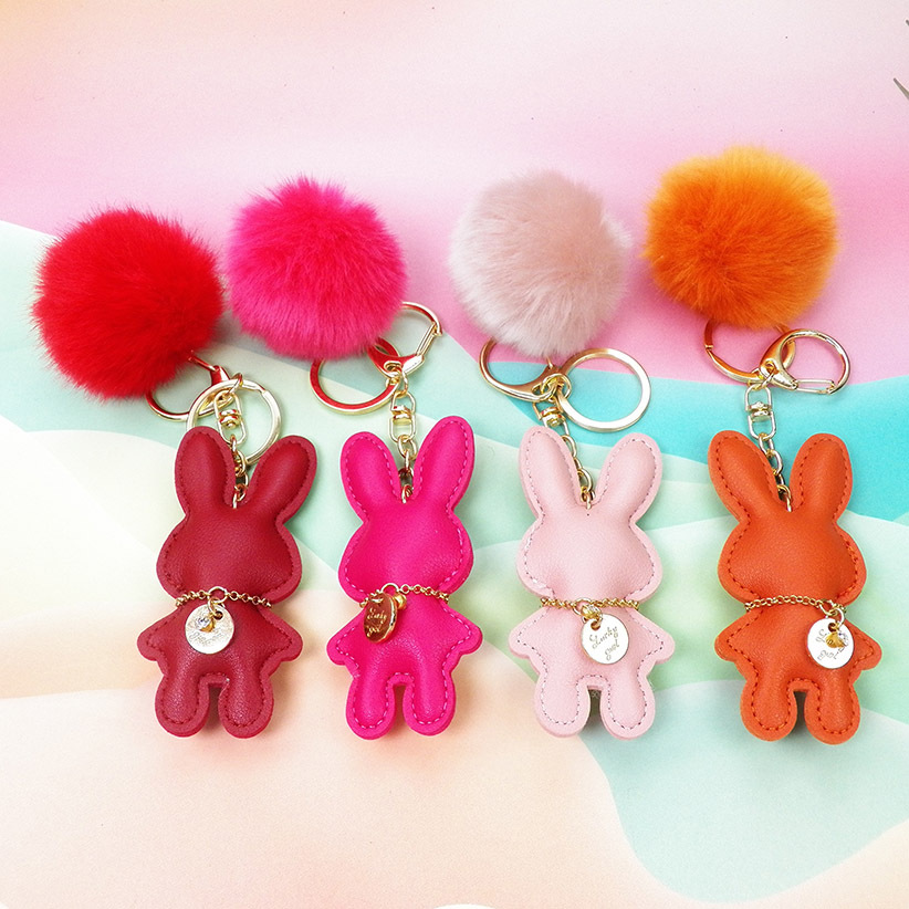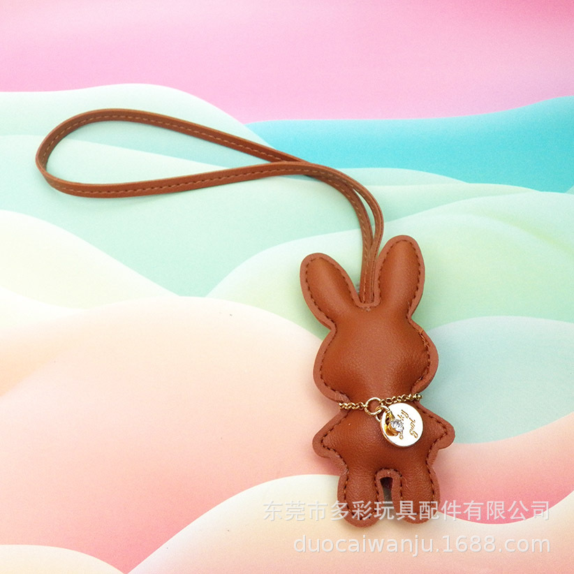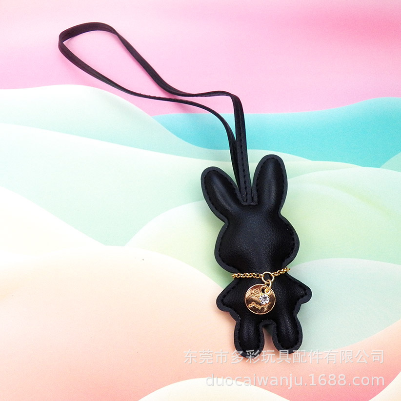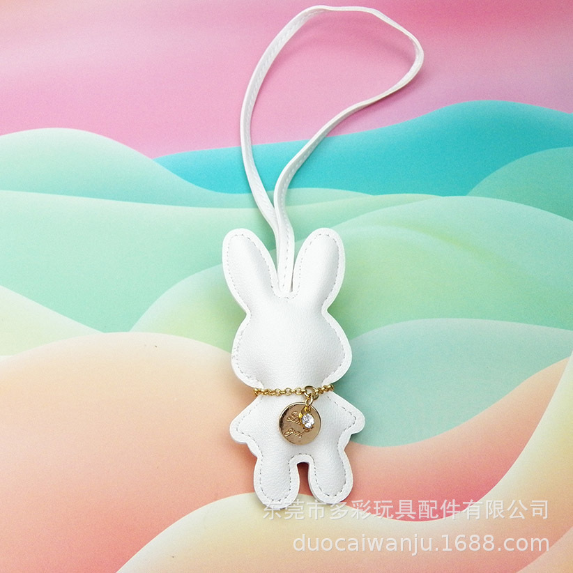 欧美兔子包包挂件pu皮质动物饰品可爱兔子箱包配饰小兔子皮革挂件