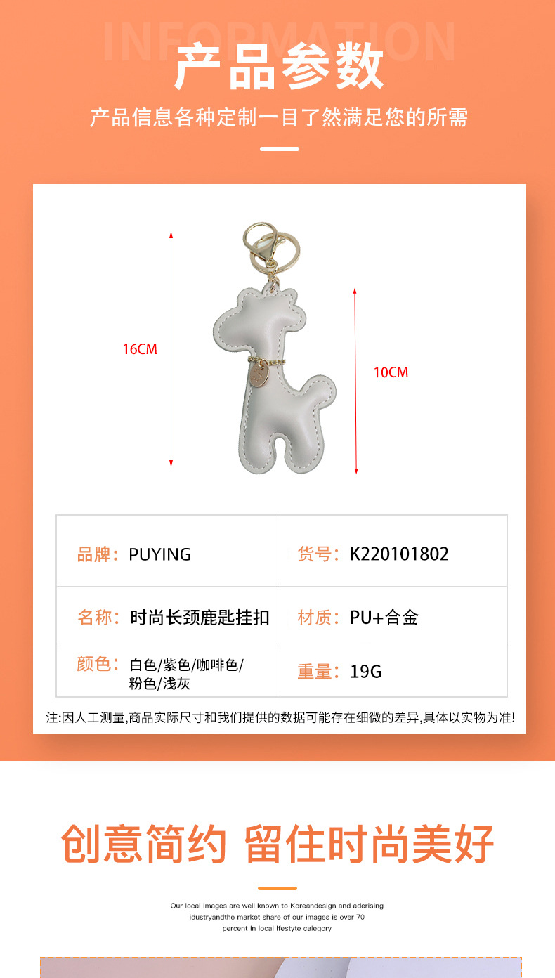 长颈鹿pu卡通钥匙扣时尚包包挂件情侣配饰汽车钥匙链批发ins风