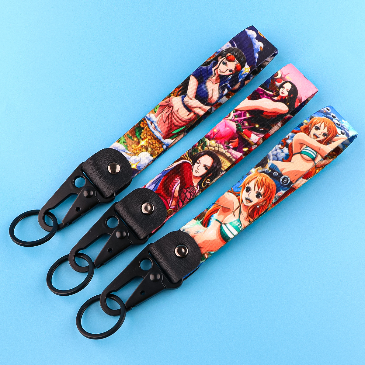 日本动漫海贼王鹰嘴钥匙扣路飞挂件汽车索隆钥匙扣绳皮革金属挂饰
