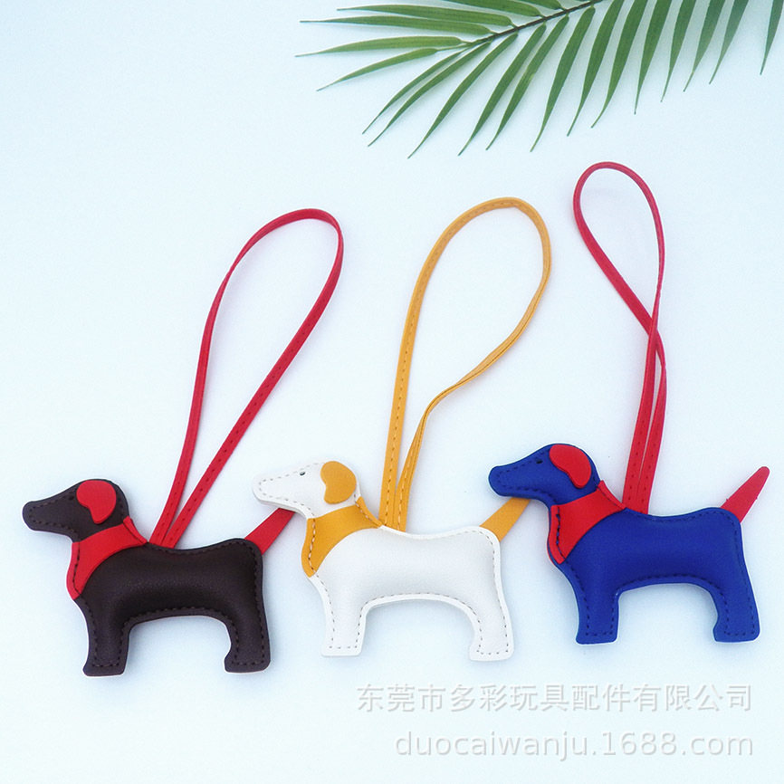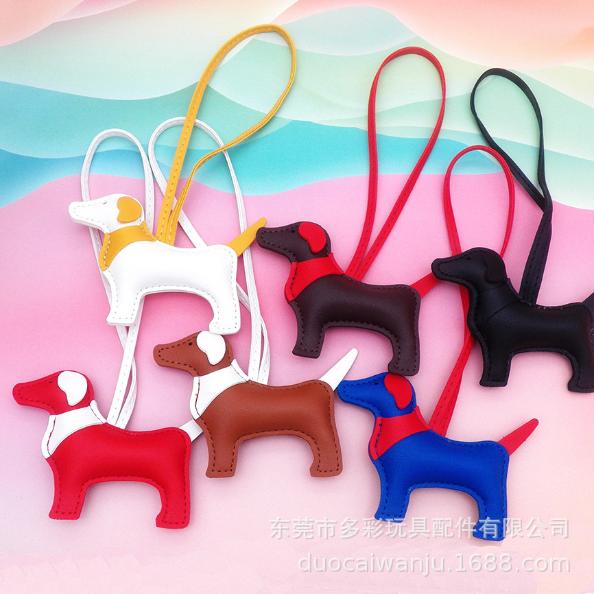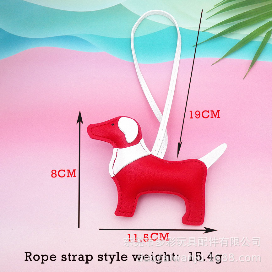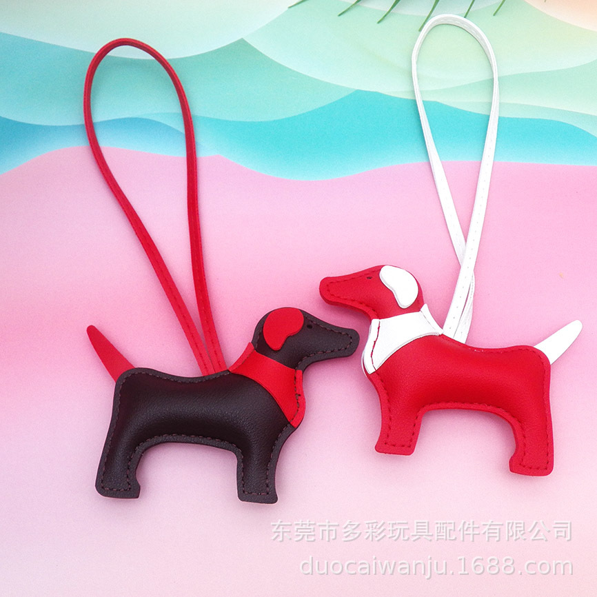 新款皮革miu系包挂小狗公仔包挂件卡通狗狗皮绳饰品小狗包包挂件