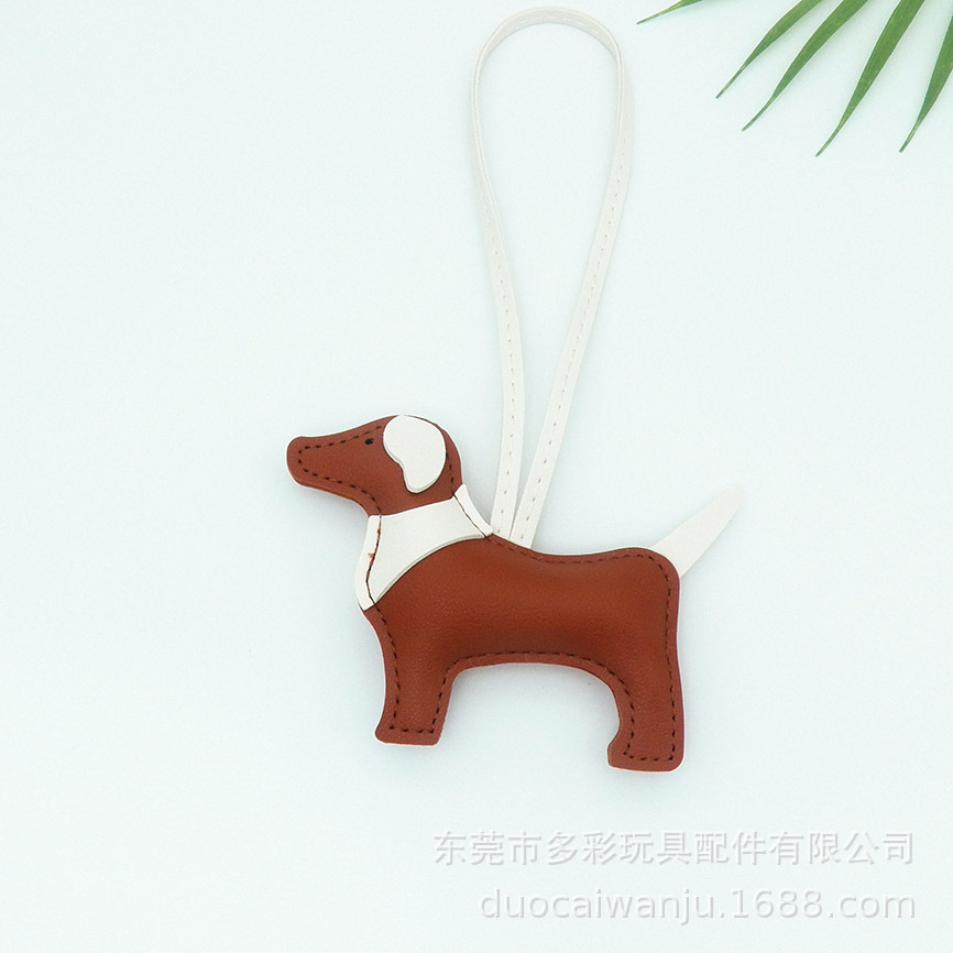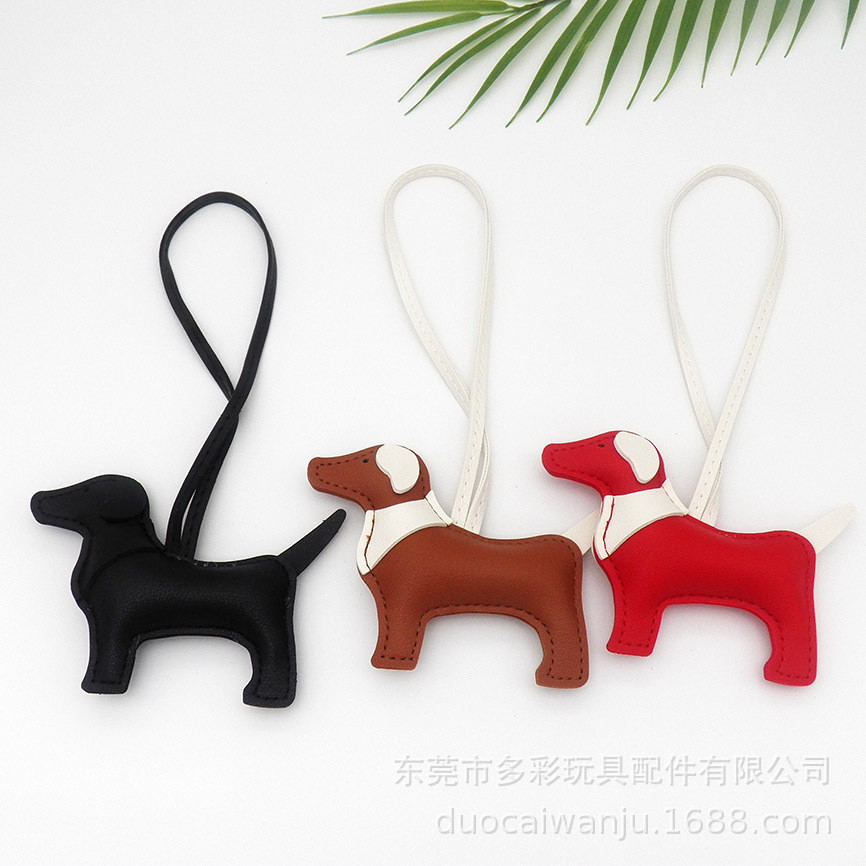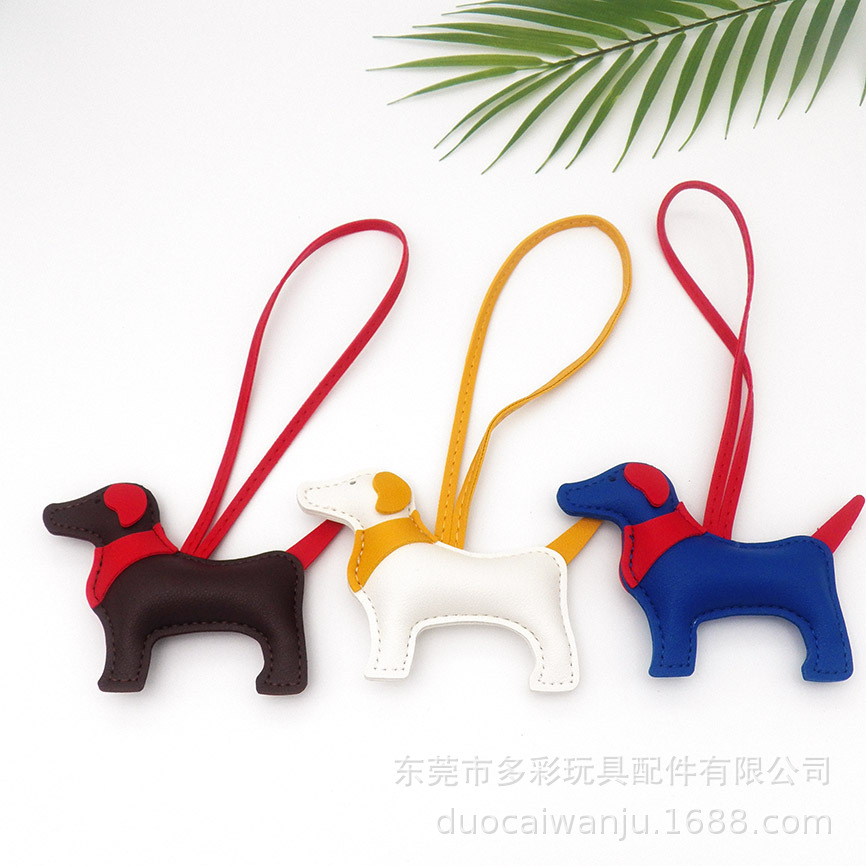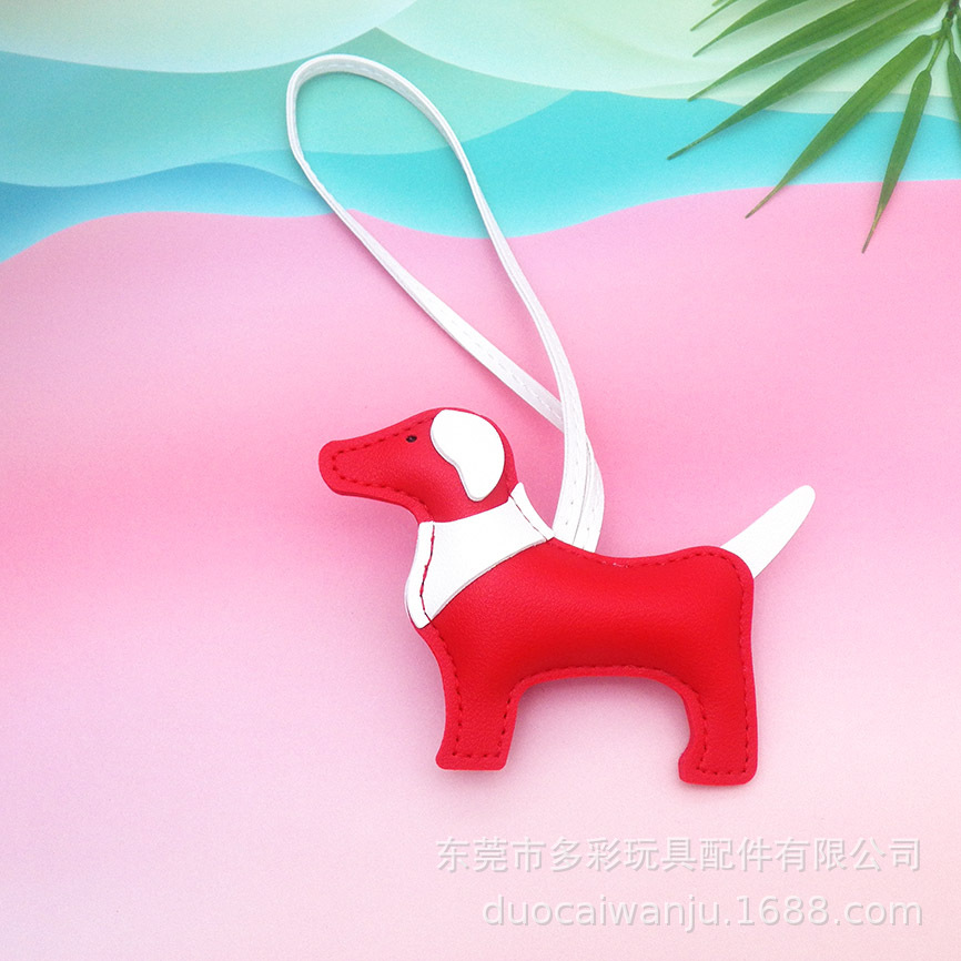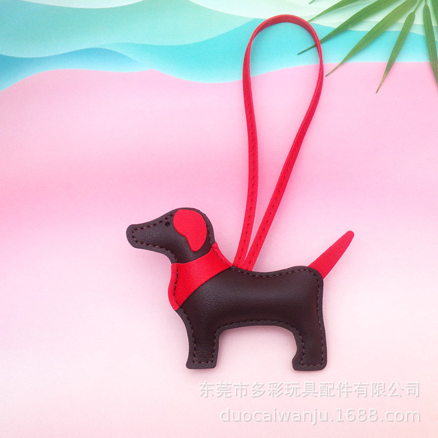 新款皮革miu系包挂小狗公仔包挂件卡通狗狗皮绳饰品小狗包包挂件