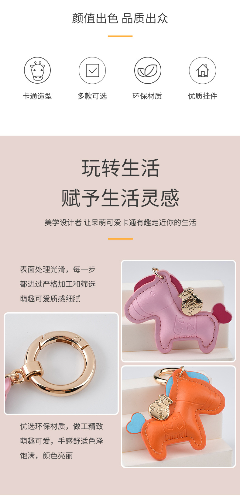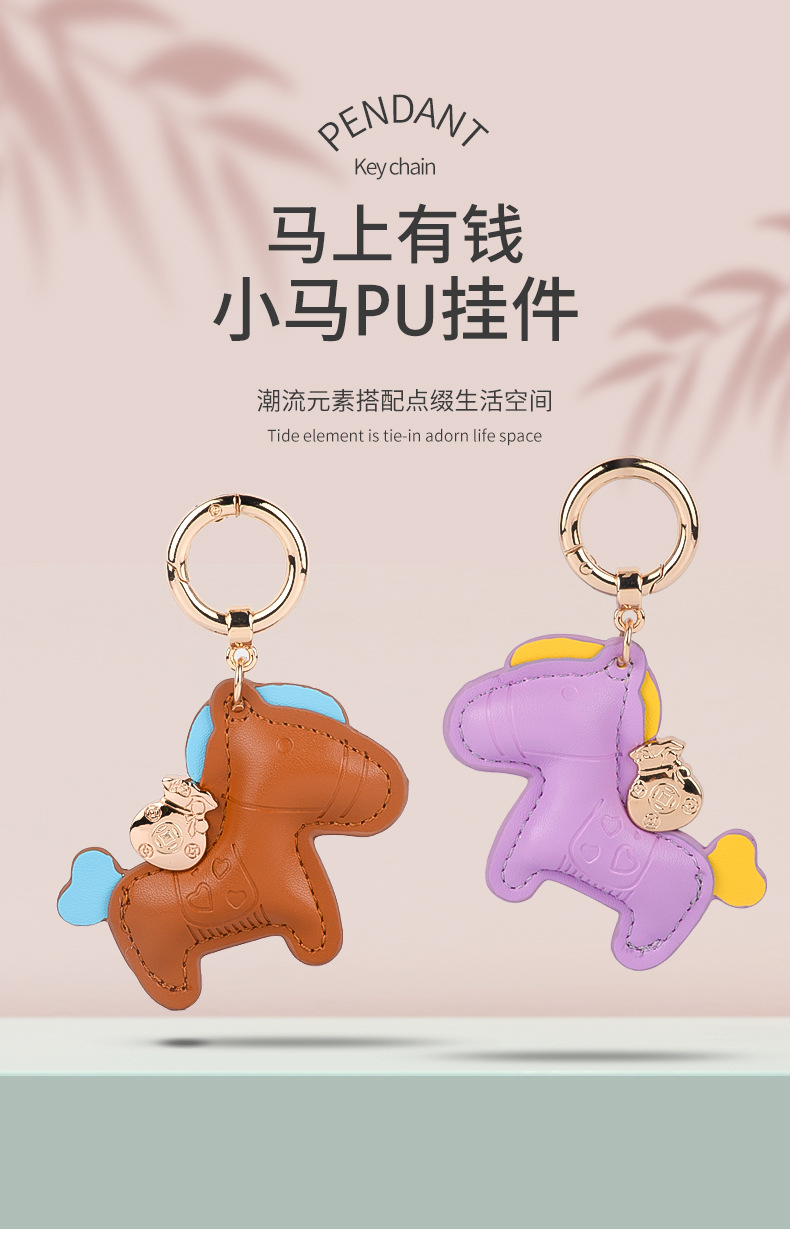 马上有钱可爱小马钥匙扣挂件情侣皮革卡通挂饰精致书包节日小礼品