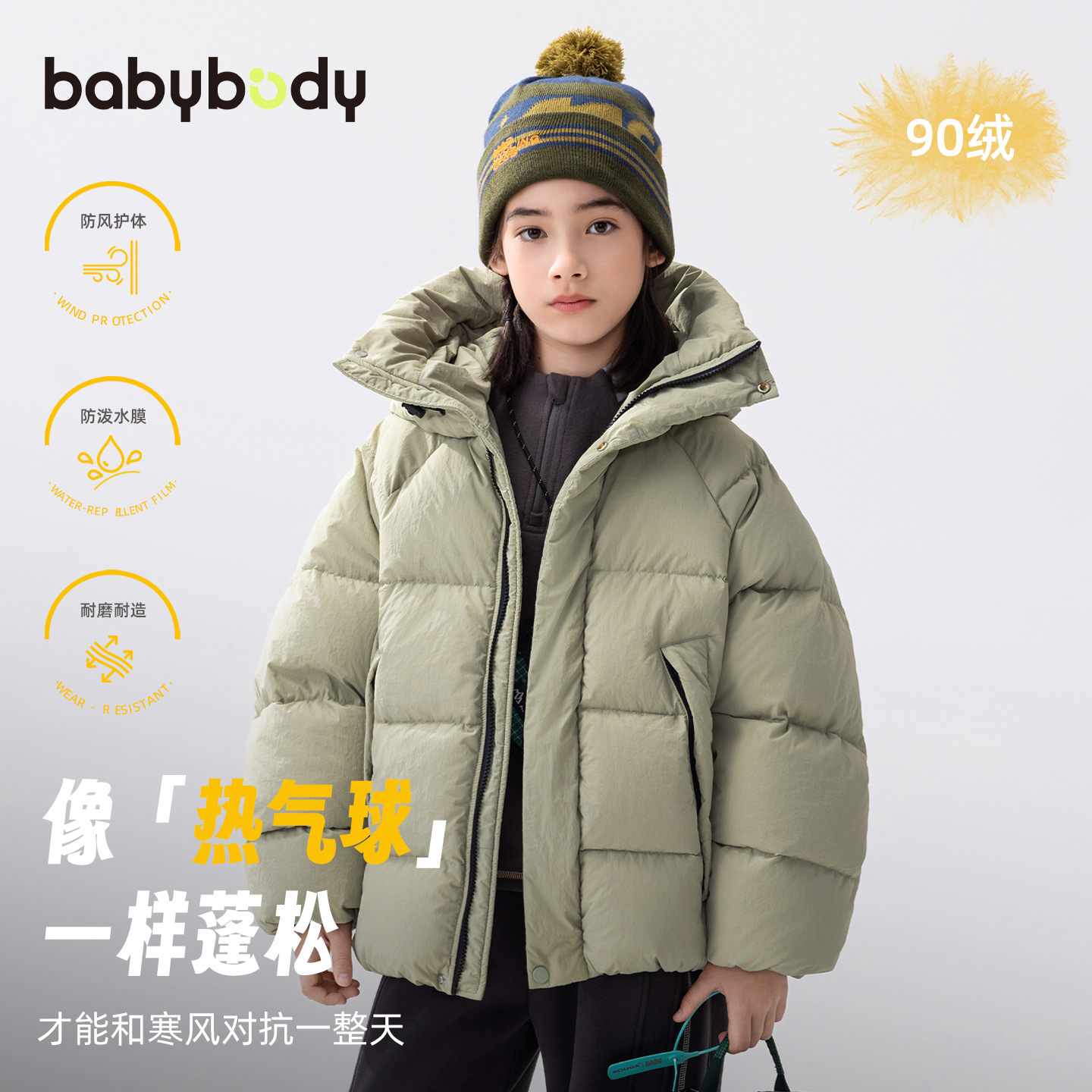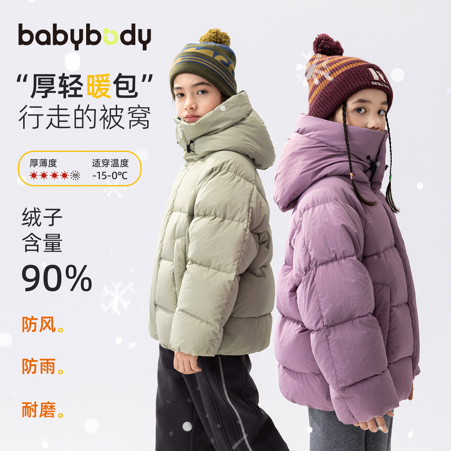 babybody童装儿童羽绒服2025冬季女童外套90白鸭绒女大童加厚衣服