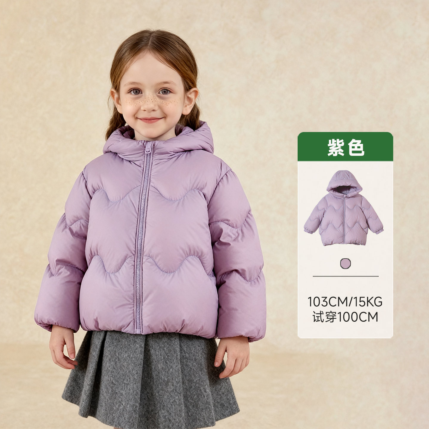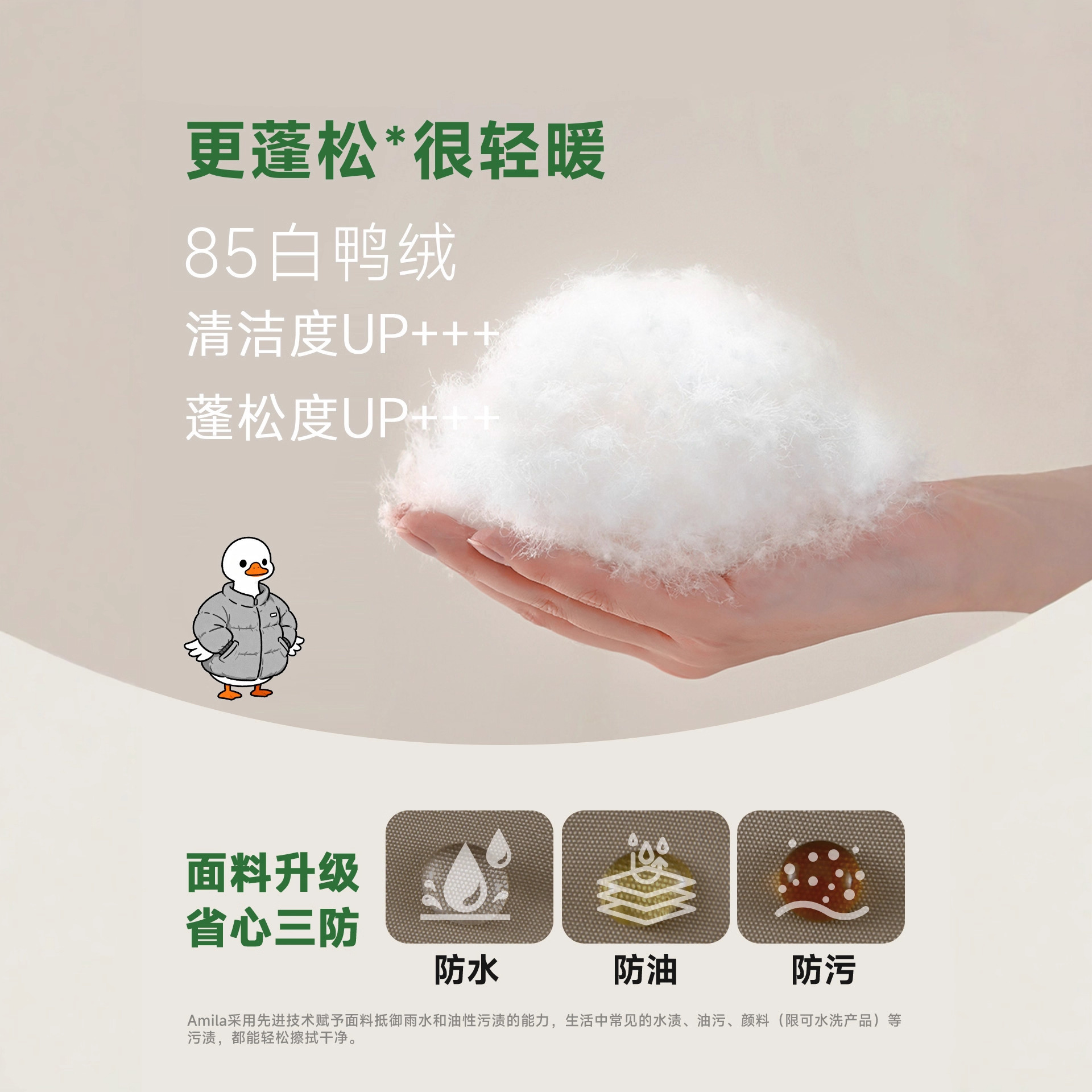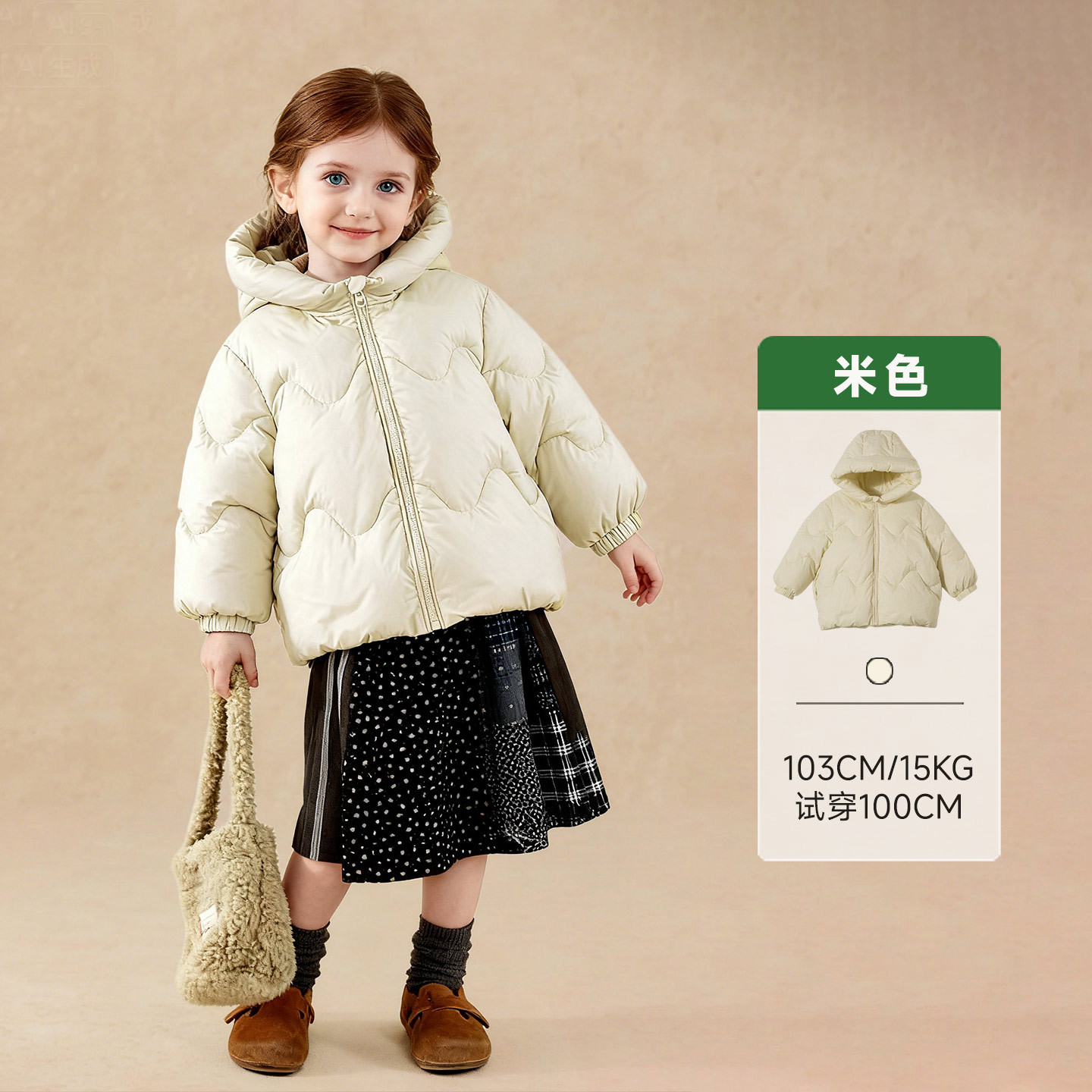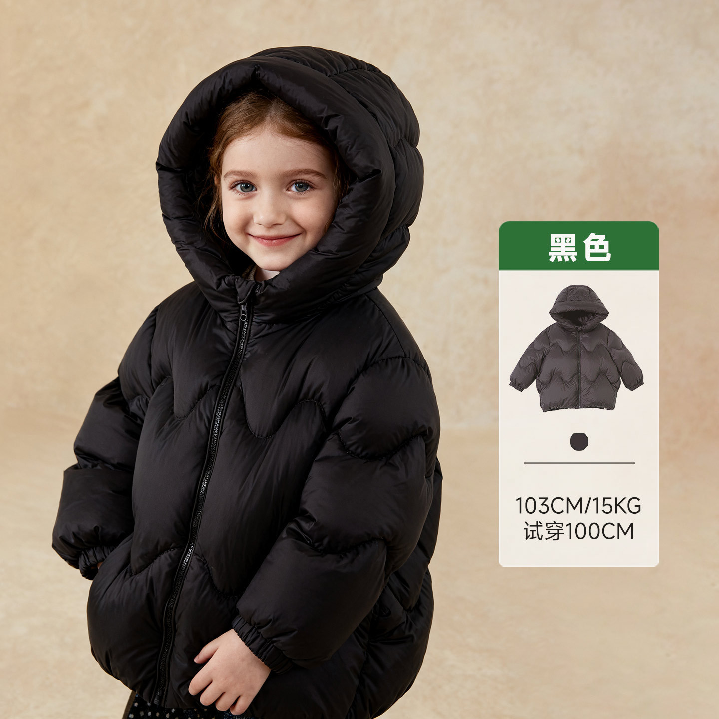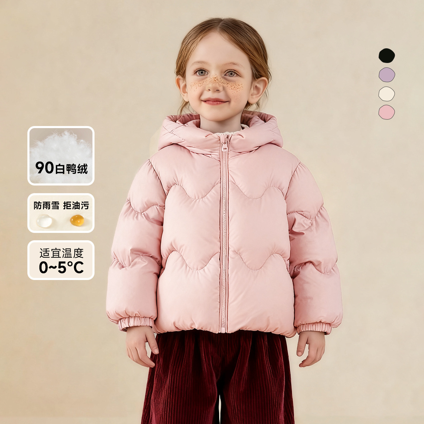 【三防高充白鸭绒】阿米拉童装2025年冬季新款儿童净色连帽羽绒服