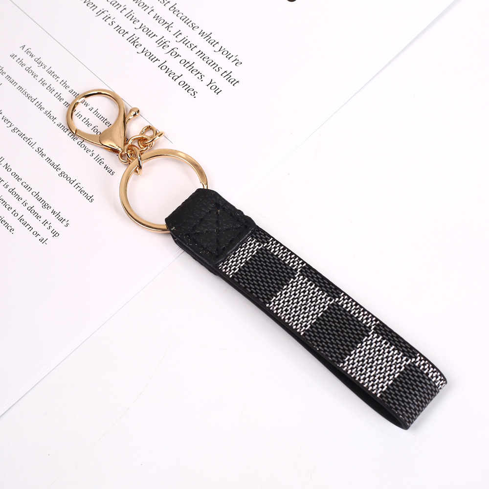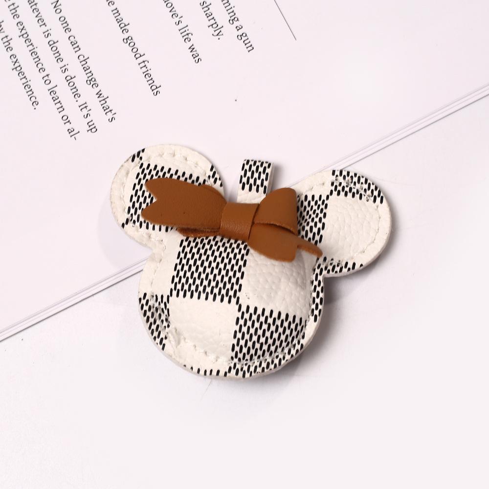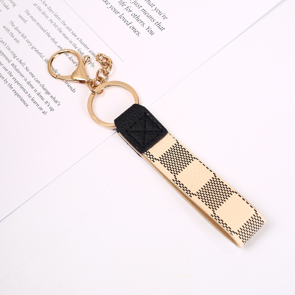 高档皮绳包包钥匙扣配件 复古皮绳格子pu皮革diy饰品配件卡通挂件