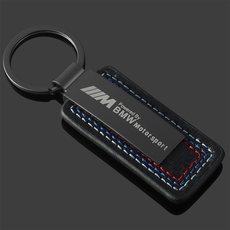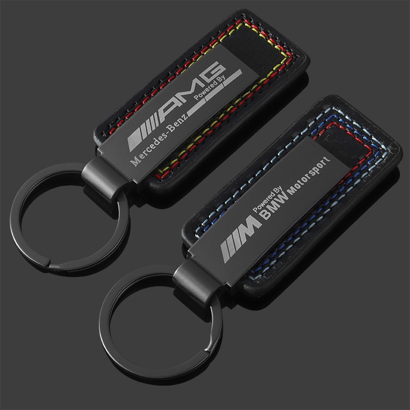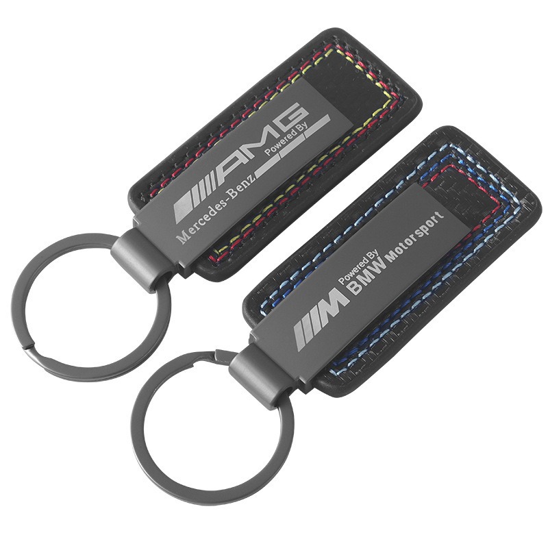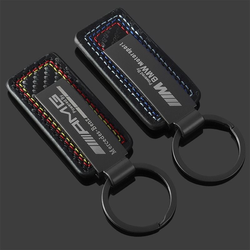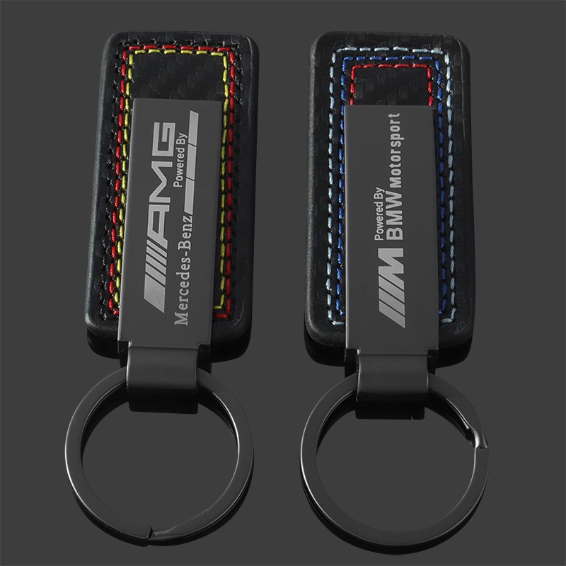 亚马逊真皮碳纤维纹车标钥匙扣创意奔驰汽车改装金属钥匙圈环挂件