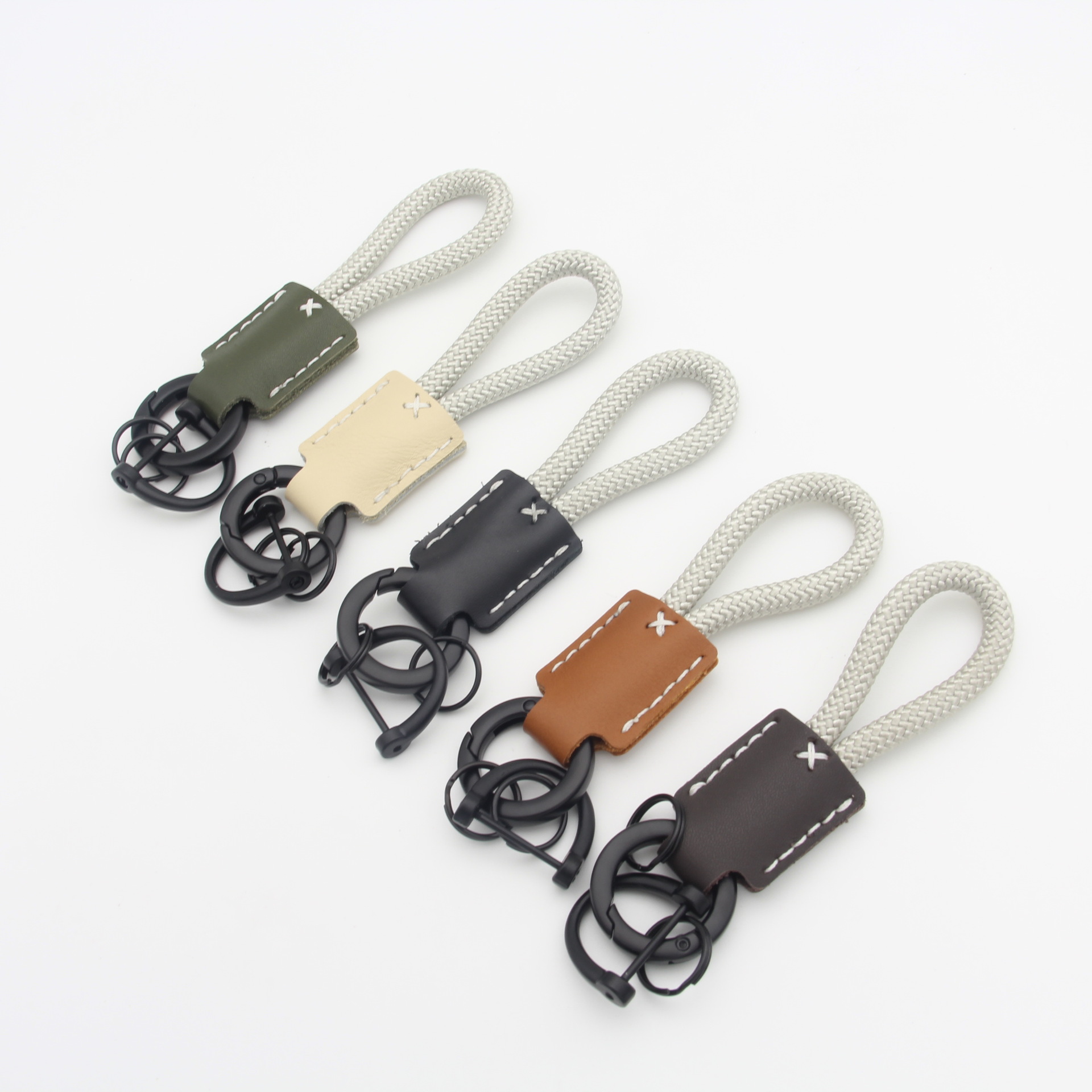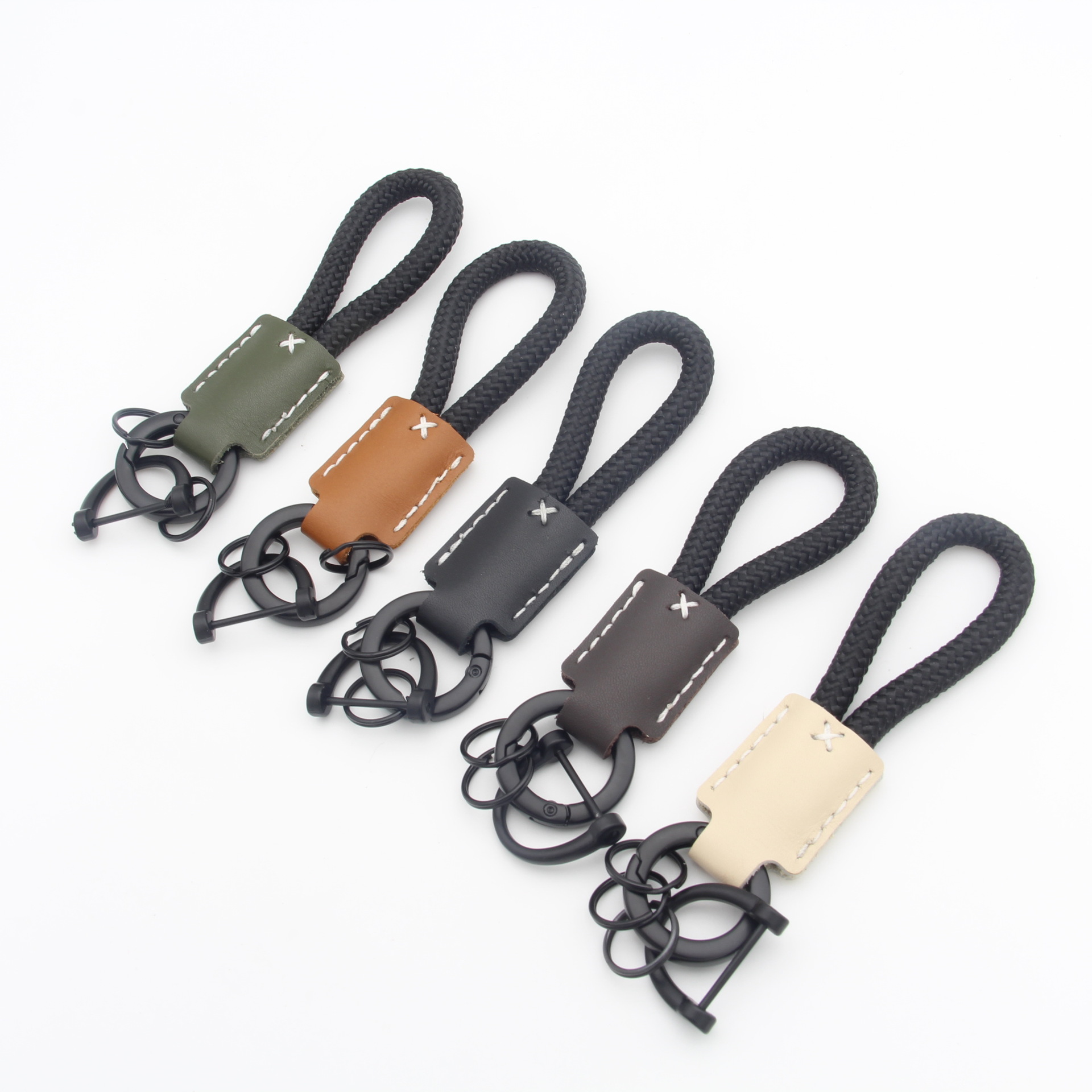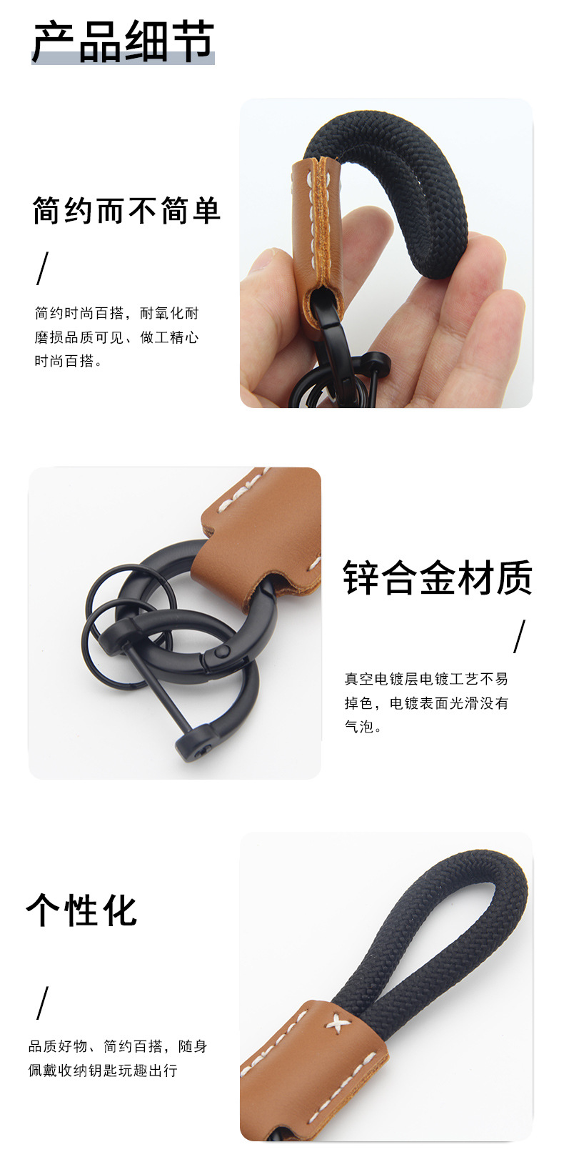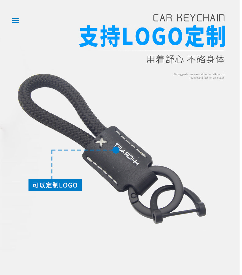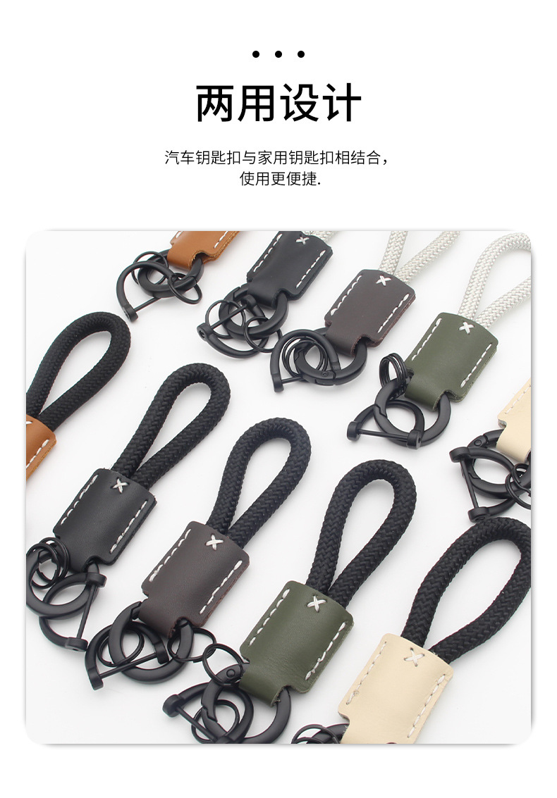 编织绳牛皮钥匙扣真皮可压印logo高品质挂绳防丢汽车钥匙扣挂件