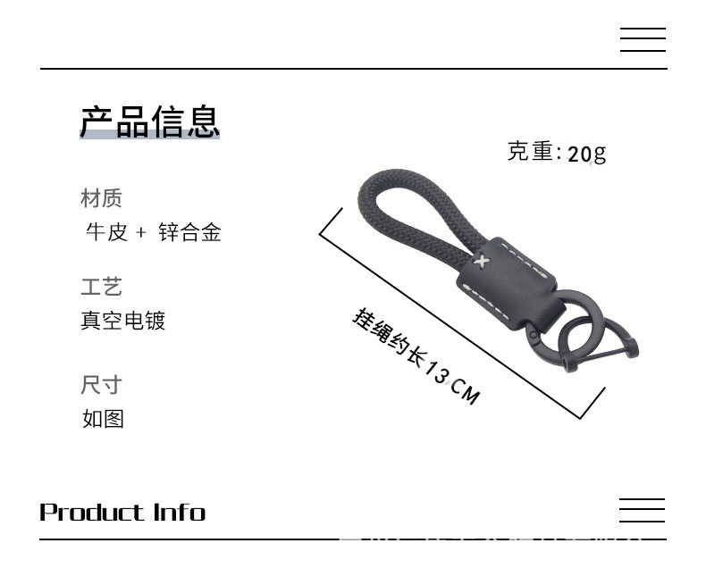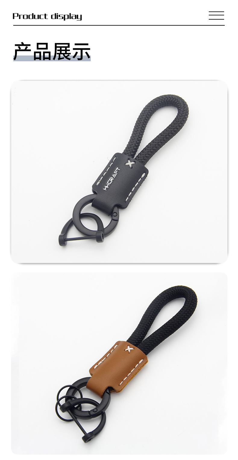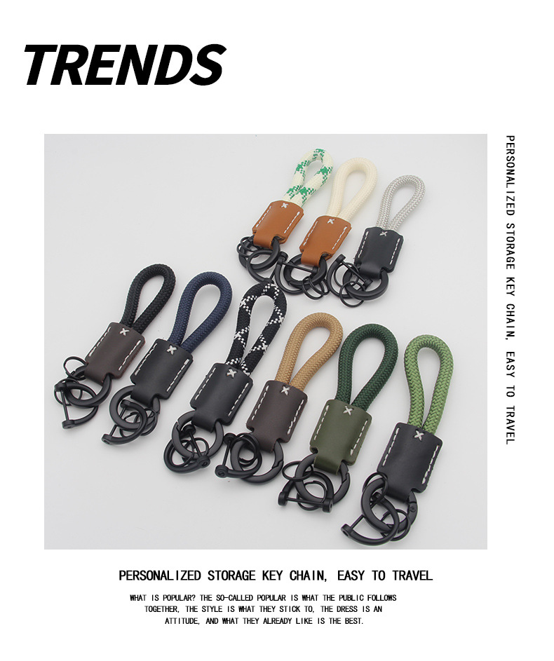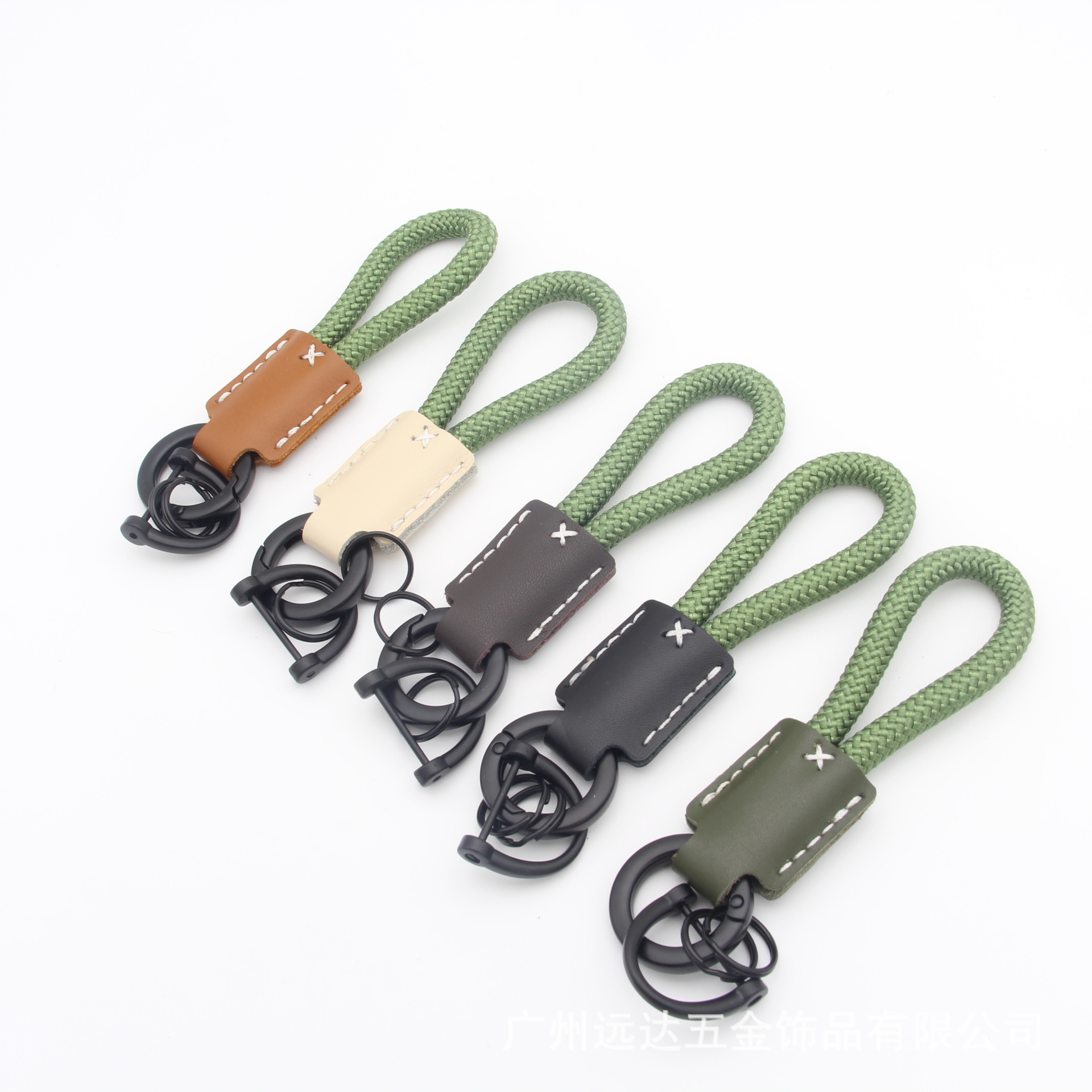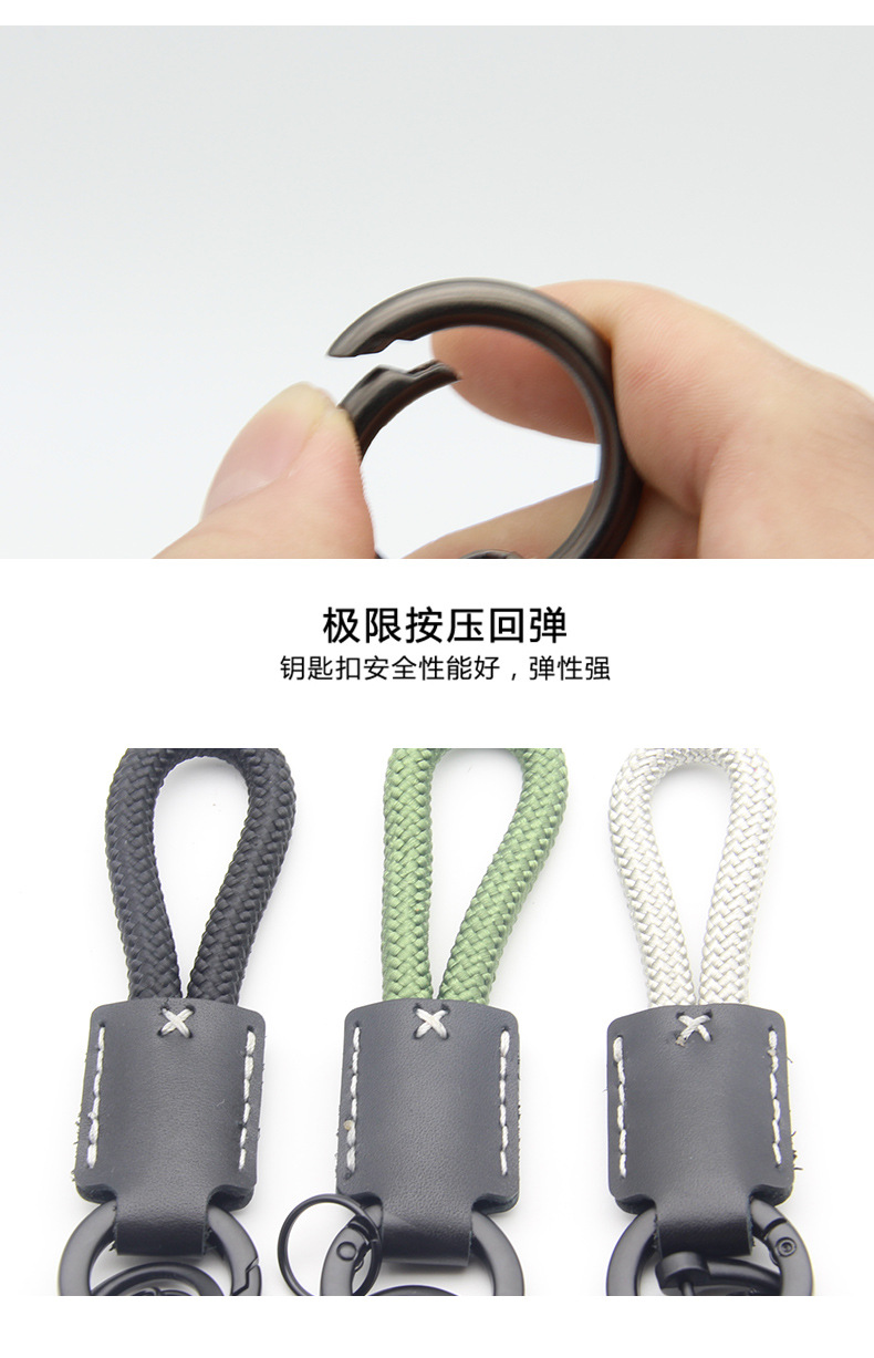 编织绳牛皮钥匙扣真皮可压印logo高品质挂绳防丢汽车钥匙扣挂件